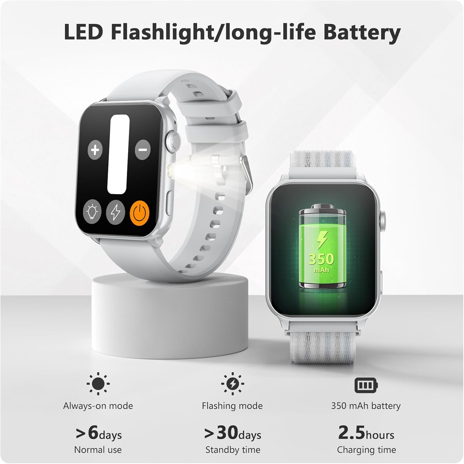 Blackview Smart Watch for Men Women,1.91" HD Touchscreen Fitness Watch with Flashlight, Bluetooth Notifications\/Make Calls, Heart Rate\/Sleep Monitor\/2 Straps, Fitness Watch for Android\/iPhone