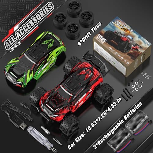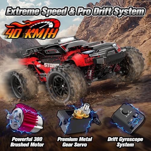 1:18 RC Cars, 2.4GHz 4WD High Speed 40 KM/H Remote Control car with Drift Wheel, All Terrain Off Road Monster Truck RC Drift Car with Gyro for Adults Boys 8-12