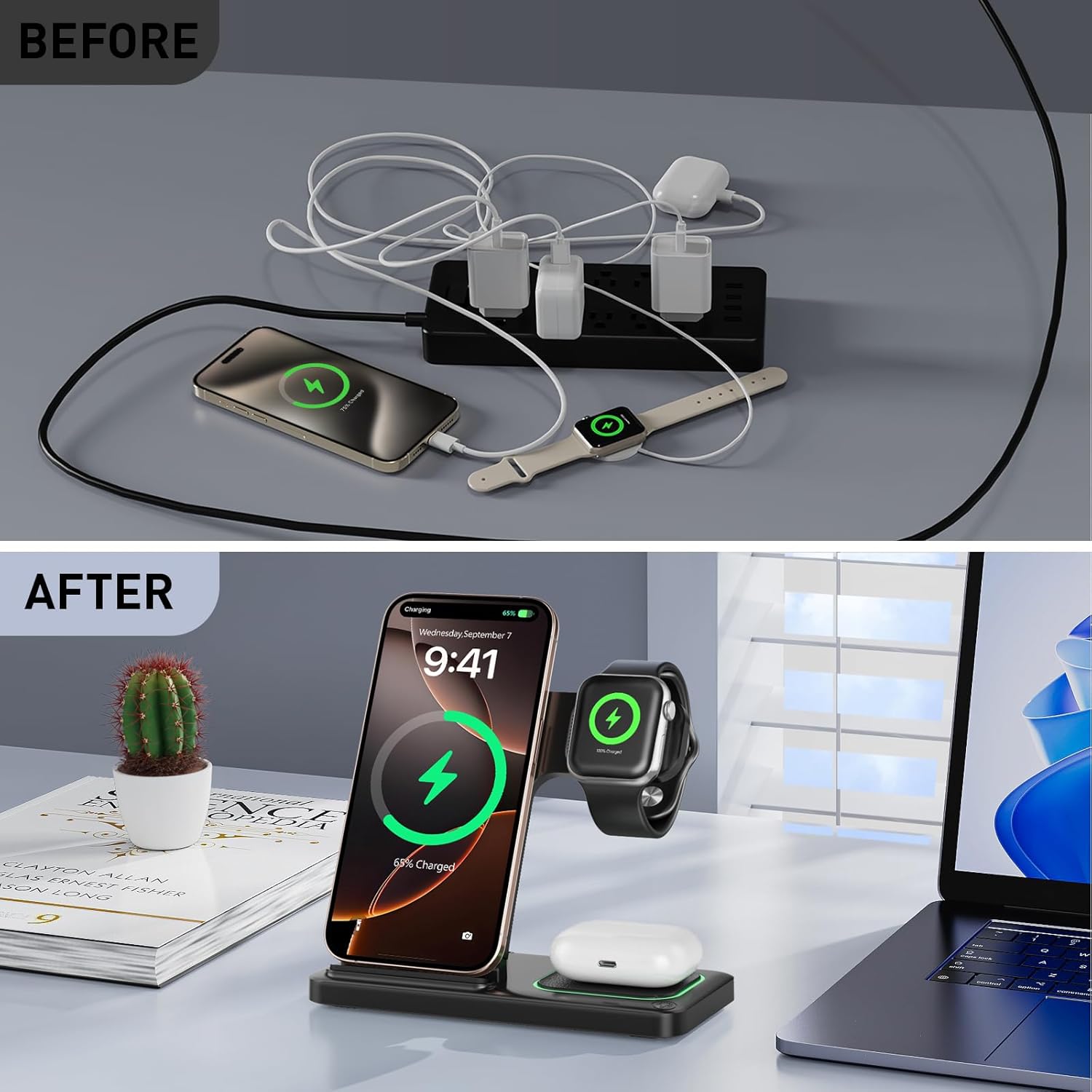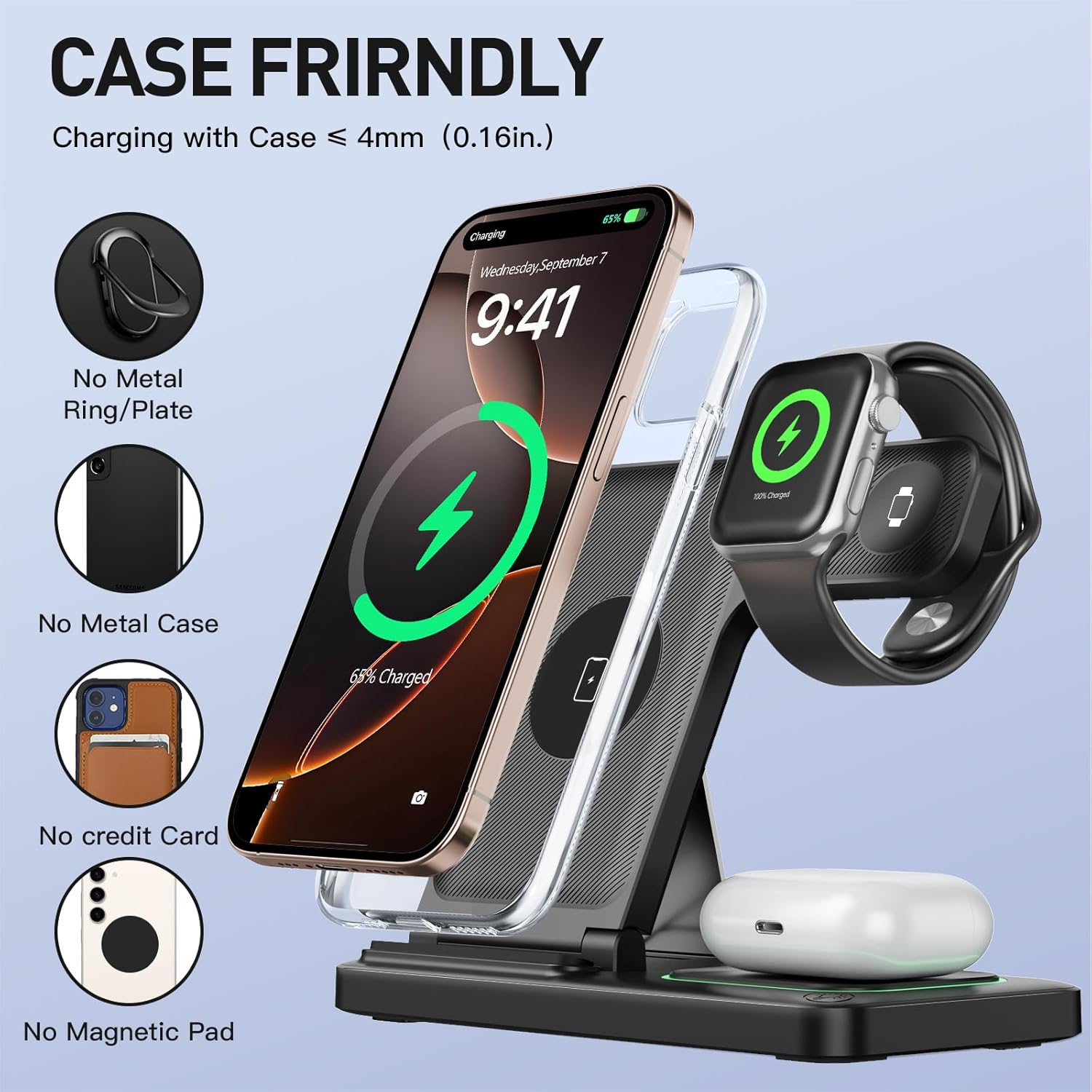 2026 Traveling Portable Wireless Fast Charger for Apple & Android Charging Station,3 in 1 Charging for iPhone 17 16 15 14 13 12 11,Apple Watch & Air pods 4 3 2 Pro,Samsung Galaxy-Gifts for Fam