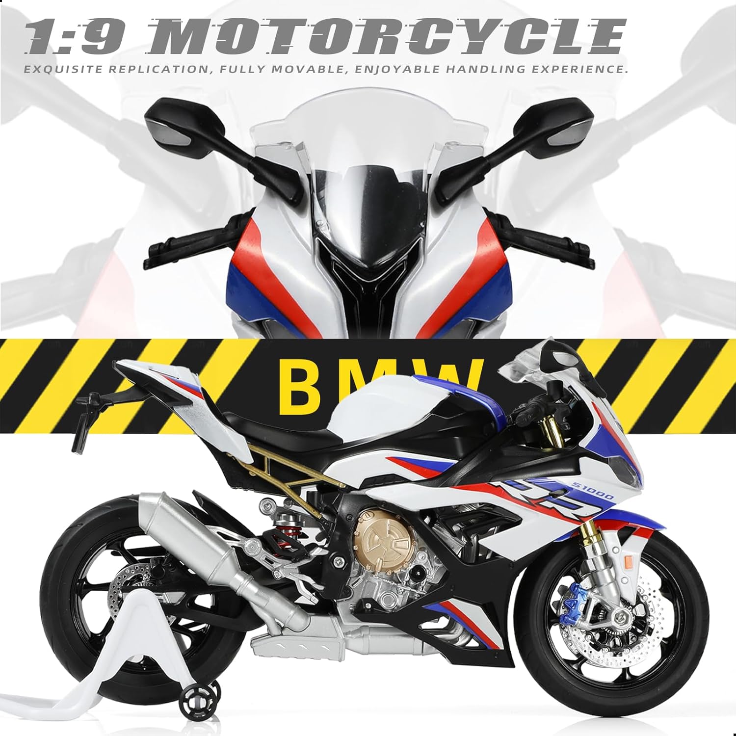 Risopen 1:9 Motorcycle Model for BMW S1000RR Metal Die-cast Motorcycle Model No Assembly Required Mini Finished Moto Gift for Adult(White)