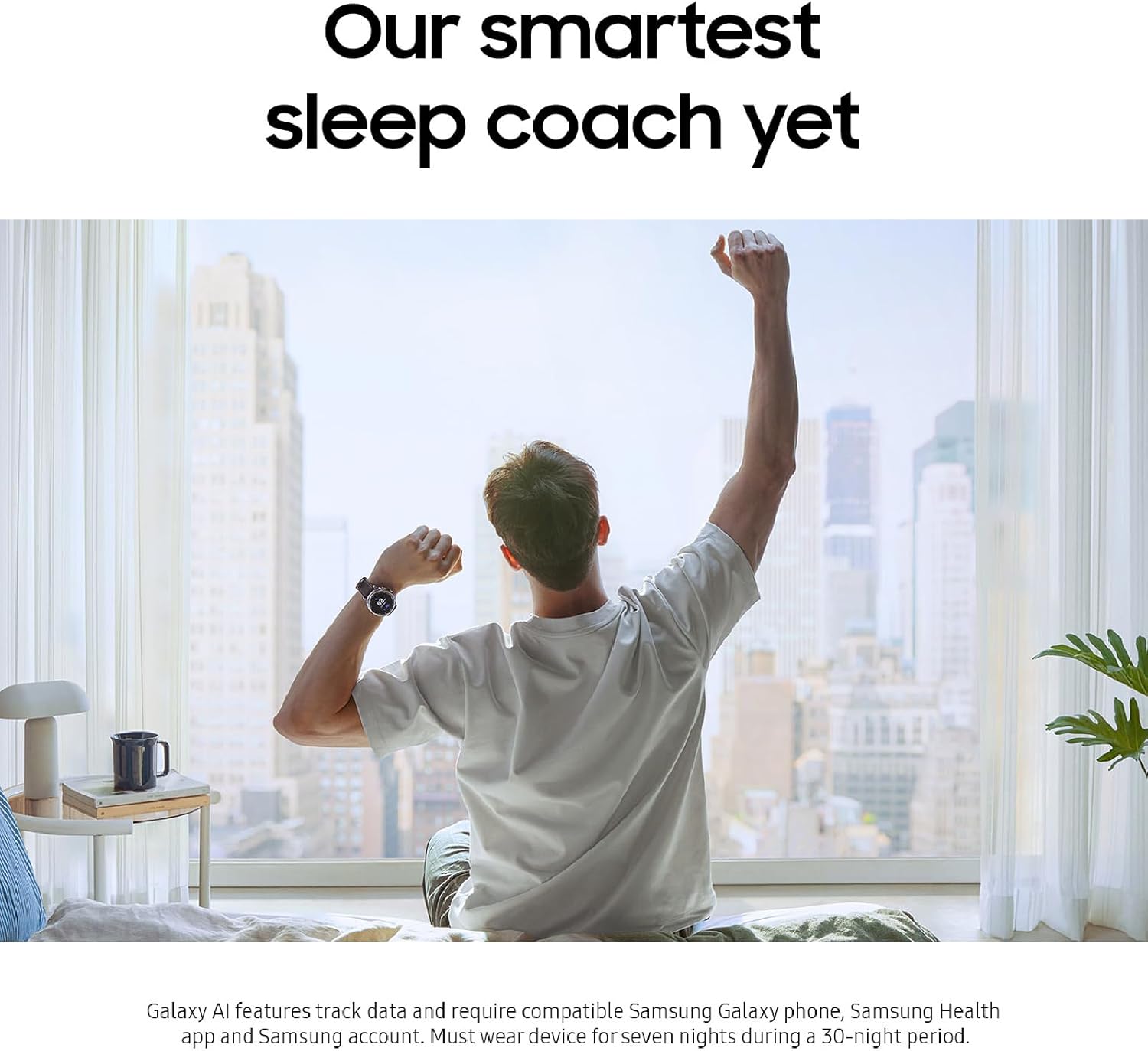 results may vary. ⁸The Vascular Load software function is not intended for use in the diagnosis of disease or other conditions, or in the cure, mitigation, treatment or prevention of disease. Requires establishing your initial base line by wearing watch while sleeping for 3 nights (within a 2 week period). Not intended for medical use. ⁹Galaxy AI features track data and require a compatible Galaxy wearable device (sold separately), Samsung Health app and Samsung account. ¹⁰The heart rate software functions are not intended for use in the diagnosis of disease or other conditions, or in the cure, mitigation, treatment or prevention of disease.