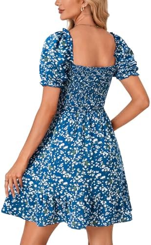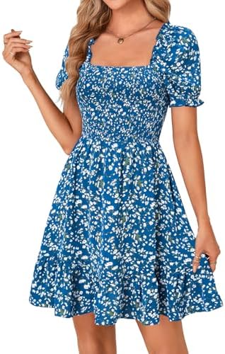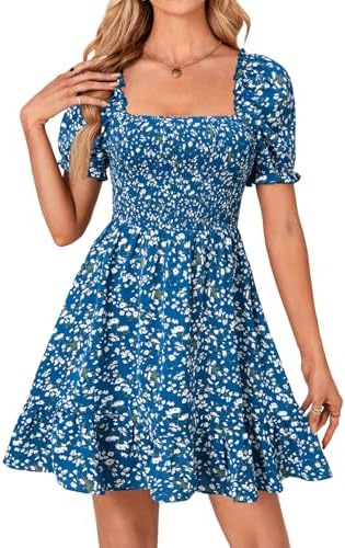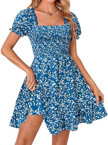 Fabric: Women's Ruffle Short Dress is made of soft and Lightweight Material, and this Casual Dress fit for most figures and hug your body thanks to its great elastic fabric. Features: The flowy mini dress adopts floral print, unique and fashionable. The length above the knee and high waist design of this dress visually elongates your legs, showing your tall figure and long legs. Very suitable for the Hot summer! This is a must-have dress in the wardrobe. Match: The ruffle dress has Big Stretchy and Fits for any Cup Size. Perfect for Pairing with Your Fave Boots for an Extra Cute Fit. You can Also Pair it with High Heels and Summery Sandals. Occasions: You will catch everyone's attention in every occasions with this short sleeve smocked dress. You can create a fresh look with sandals, high heels, a bag and stylish accessories for party, cocktail, beach, wedding, homecoming, vacation, holiday. Please check the Rooscier's size chart carefully before placing purchase and hope you can order the perfect size for yourself.