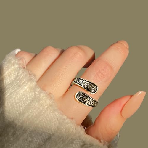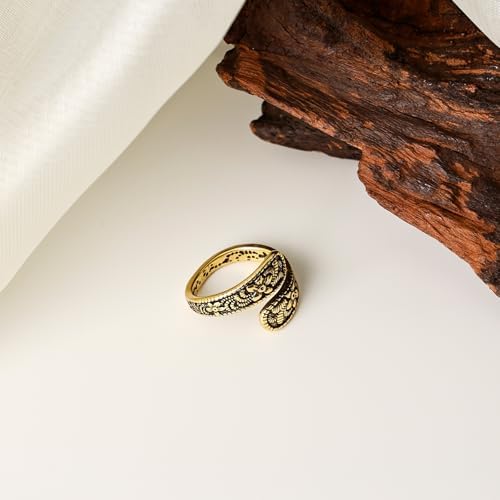 [Vintage Design] This spoon ring showcases a wrap-around design with detailed craved. The vintage ring features an open-ended silhouette, the overall design style combines retro and artistic elements [Material] Crafted from high-quality alloy with a gold plating, this 14k gold plated ring maintains its luster with proper care. The adjustable ring design ensures a comfortable fit while preserving the intricate detailing [Size & Fit] This open ring fits most finger sizes. The flexible design allows for easy resizing while maintaining the ring's structural integrity [As a Gift] Give a fashionable and unique 14k gold plated thumb ring to the person you love to express your most sincere feelings. These boho jewelry are perfect as gifts for birthdays, Christmas, Valentine's Day, Mother's Day, and anniversaries [Service] If you have any questions about our boho ring, please do not hesitate to contact us. We guarantee a prompt reply and will provide a satisfactory solution for you. Thank you for choosing our product