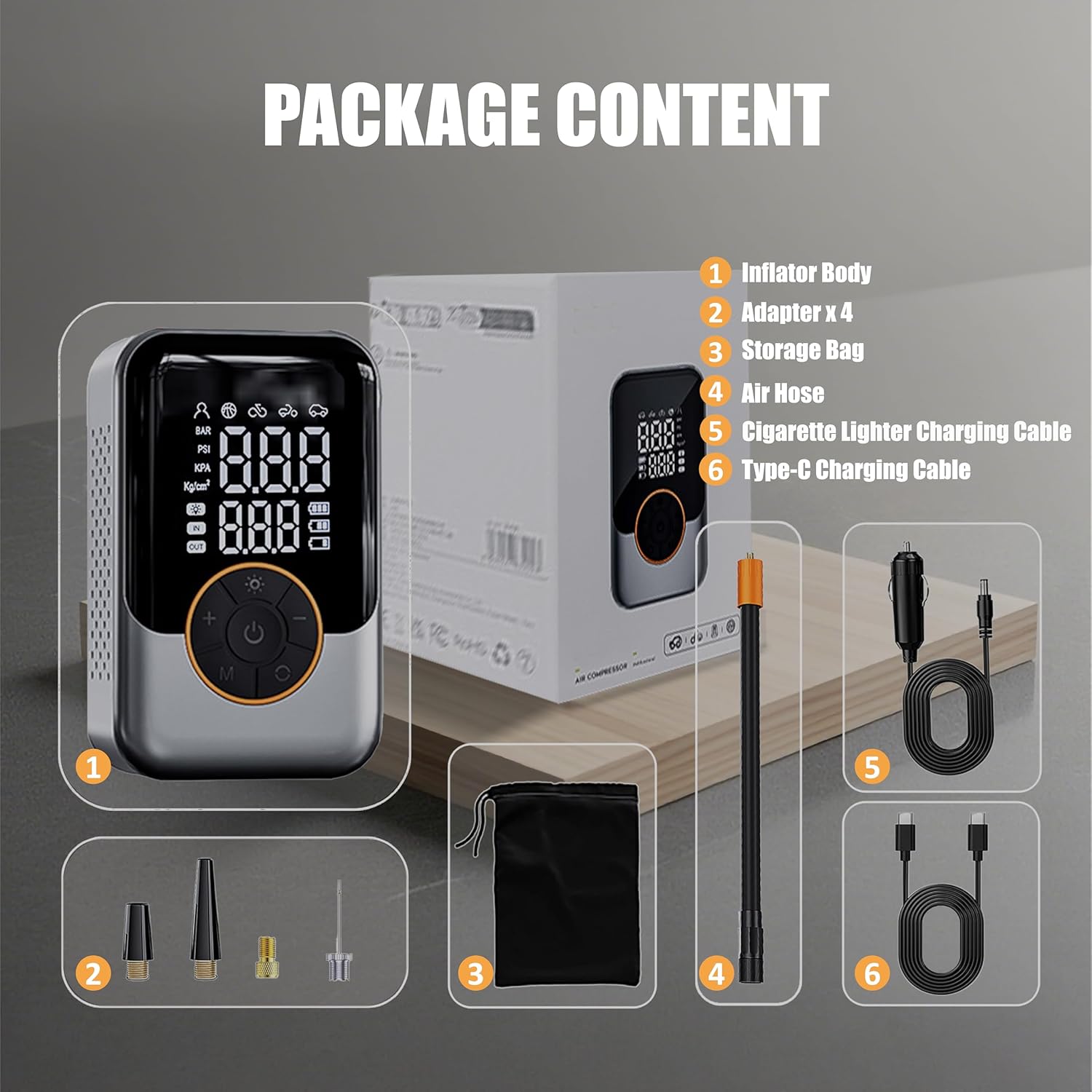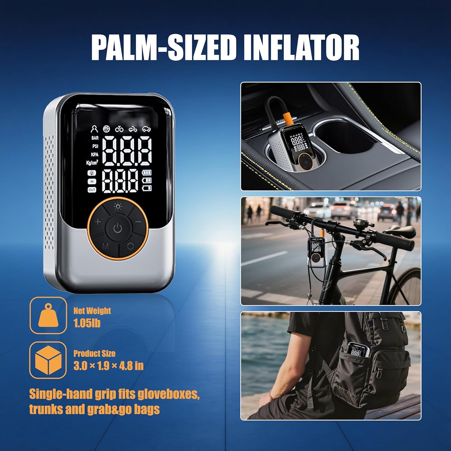ReboostFast Cordless Portable Tire Inflator, Fast with Digital Pressure Gauge, Emergency LED Light for Car\/Motorcycle\/Bike\/Inflatables, 150PSI Rechargeable & 12V DC Dual Mode (C-Dark Grey)