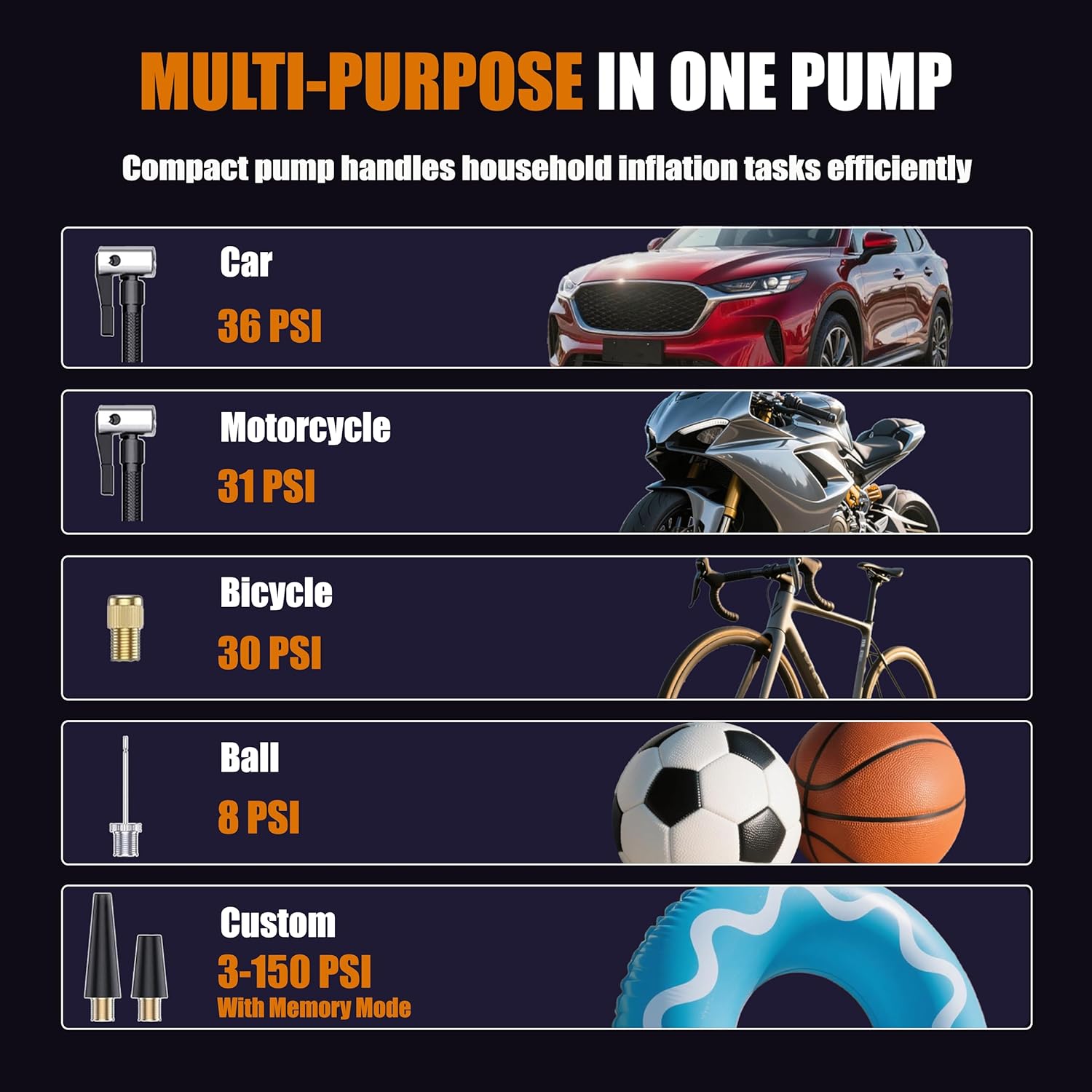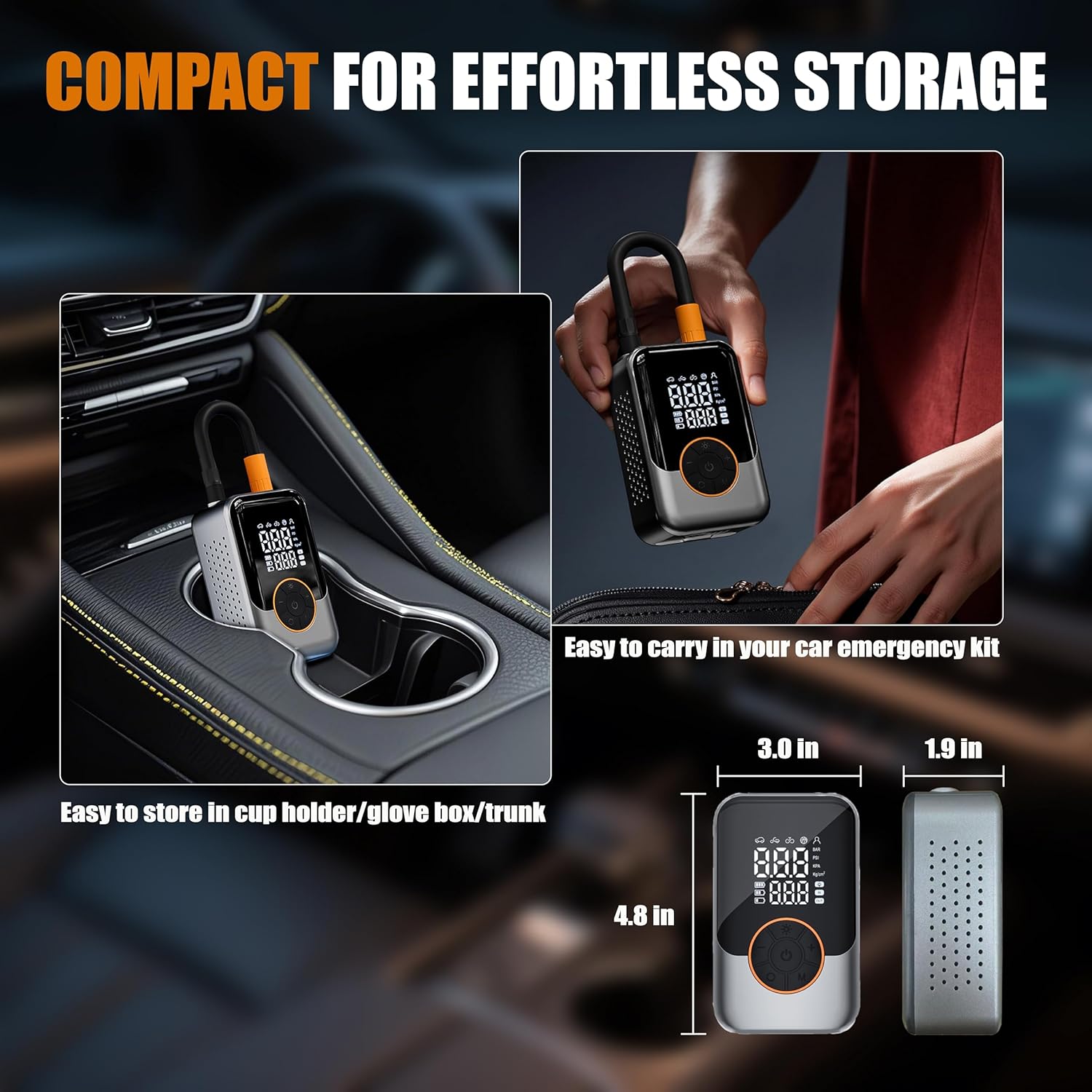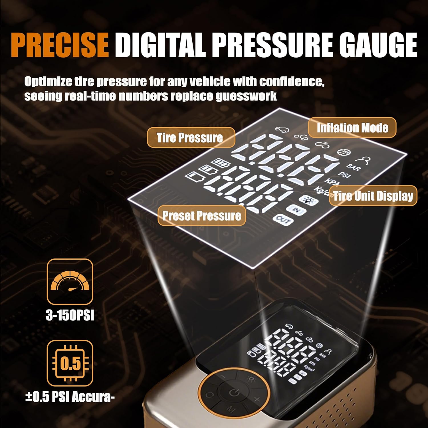 ReboostFast Cordless Tire Inflator, Portable with \u200Bdigital pressure gauge\u200B, \u200B150PSI, \u200BAuto shut-off\u200B & LED light\u200B, 12V DC\/Rechargeable dual mode\u200B, for \u200BCar