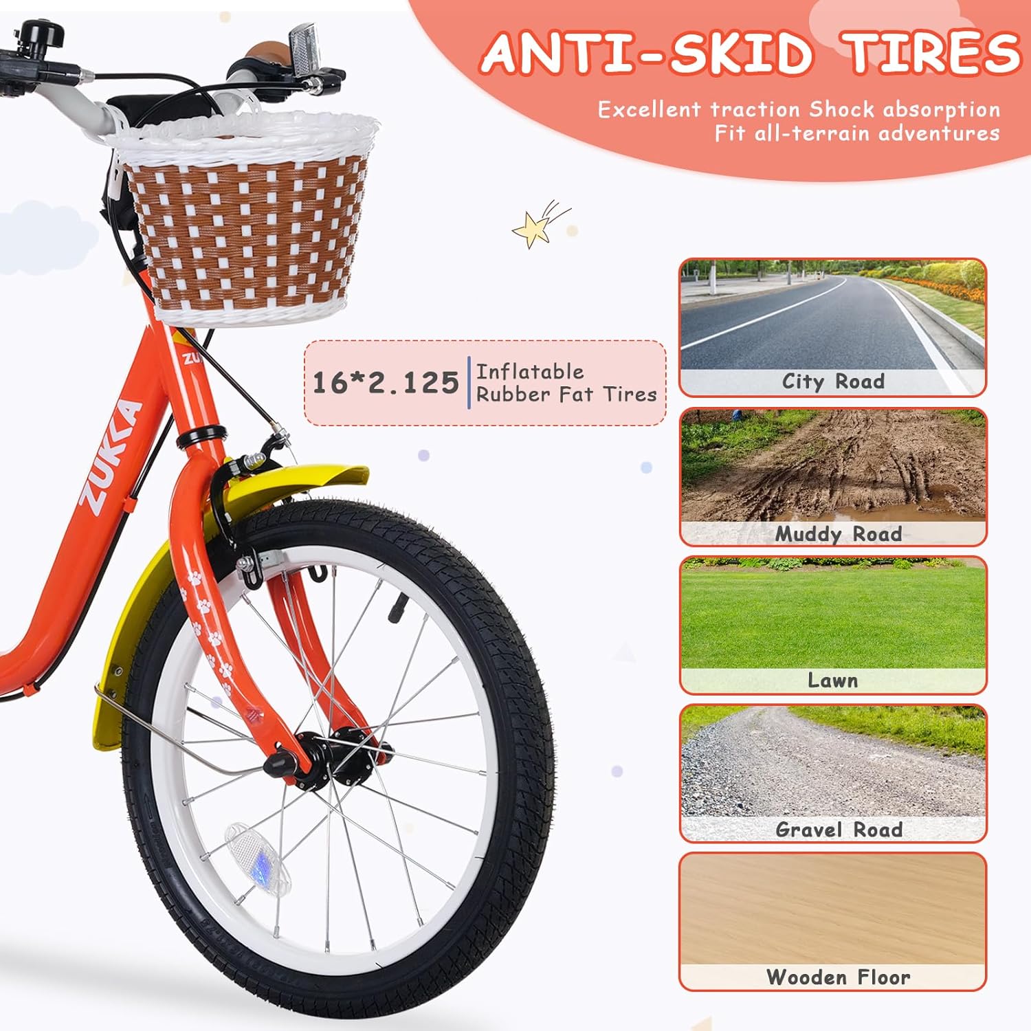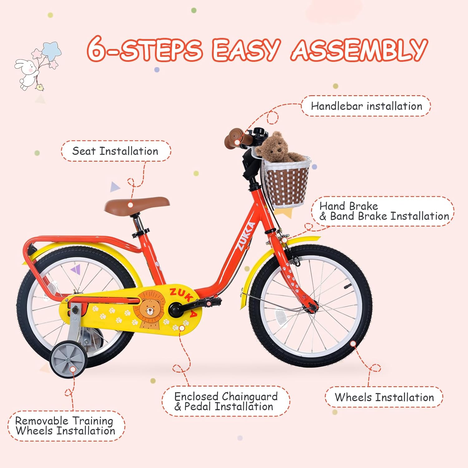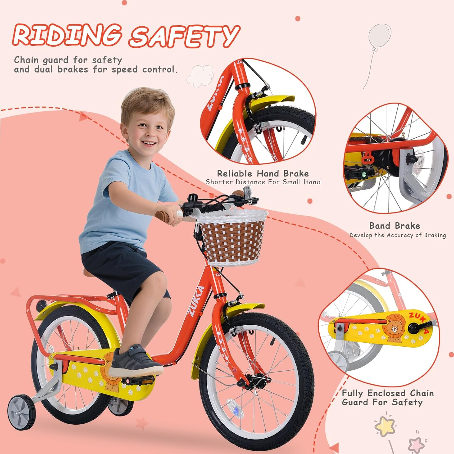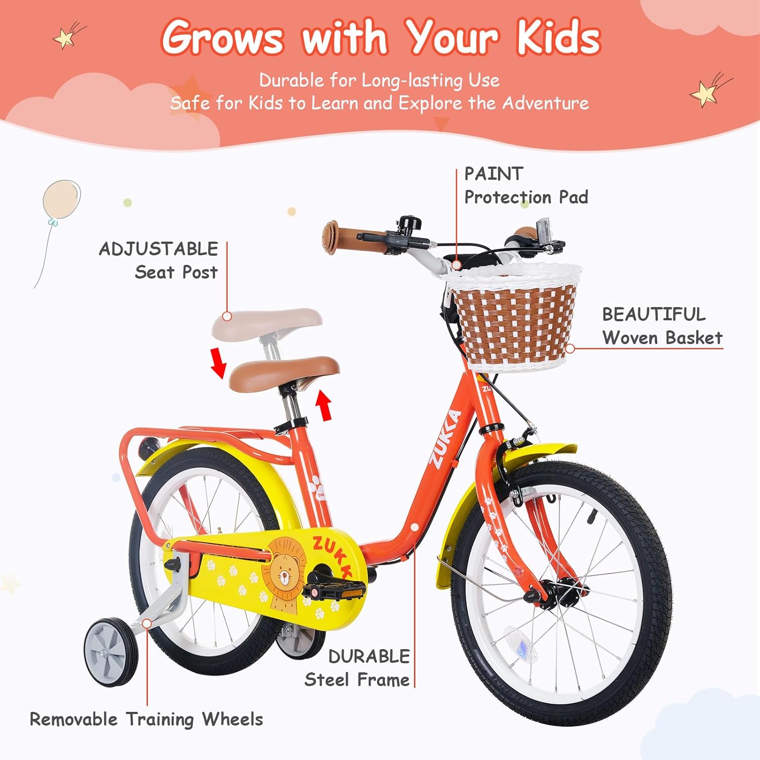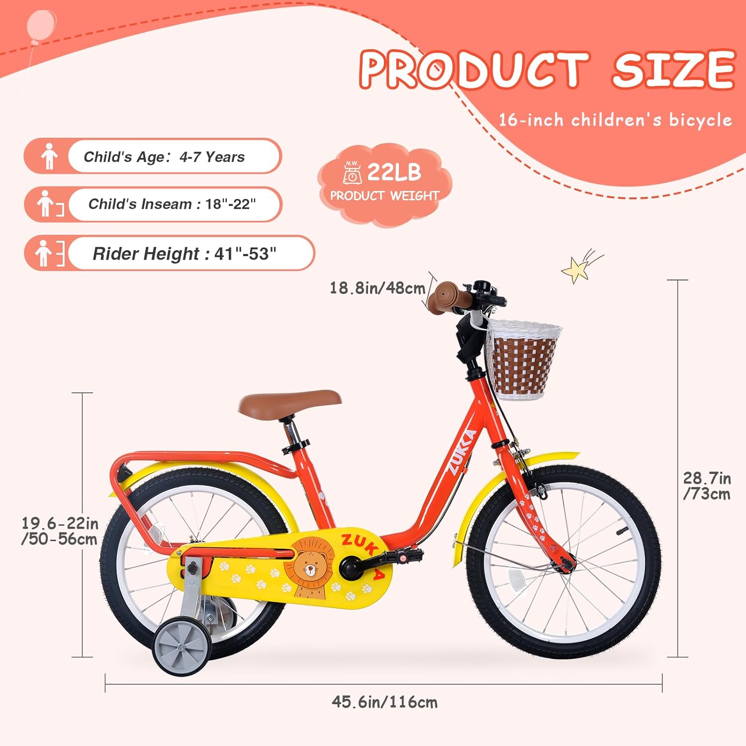 BALINGE 16 Inch Girls\/Boys Bike with Basket & Training Wheels, 4-7 Year Old Bike for Girls\/Boys, Toddler Girl\/Boy Bicycle with Dual Brakes & All-Terrain Tires, Adjustable Seat, Easy Assembl