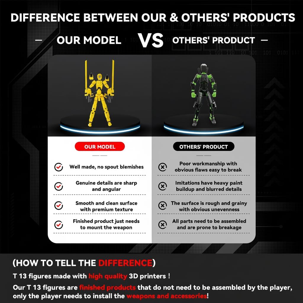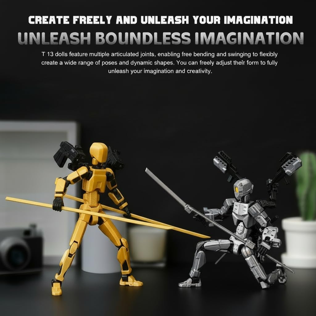 T13 Figure Set & Titan 13 Toys 4 Pack(3d Printed Action Figures Assembly Completed)(Multi-Jointed Movable)(Mecha Designs Includes Various Accessories)Dummy T 13 Figures Desk Decoration 5.5in