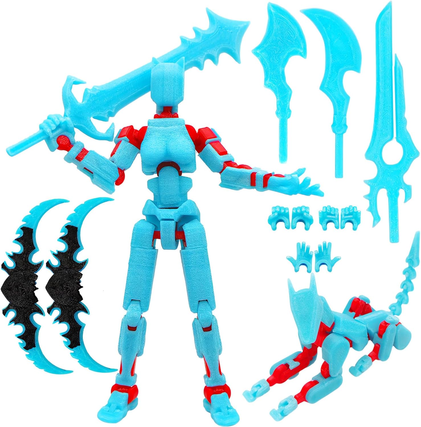 masijssa Titan 13 Action Figures (Grow in The Dark Blue) T13 3D Action Figure Set Already Assembled Dummy Robot Nova 13 Printed Multi-Jointed Movable Toy for Gift Collectors (Blue Black + Dog)