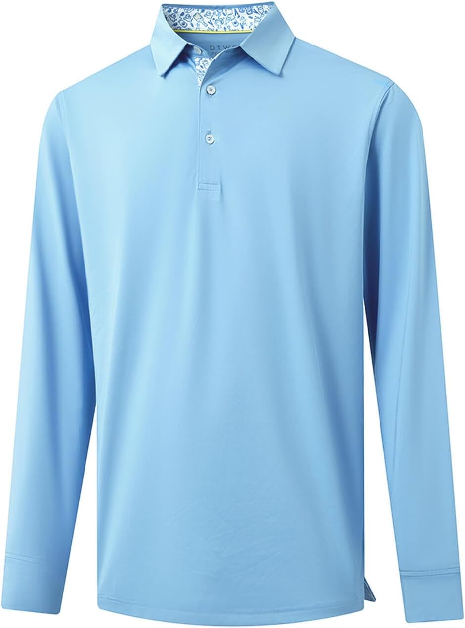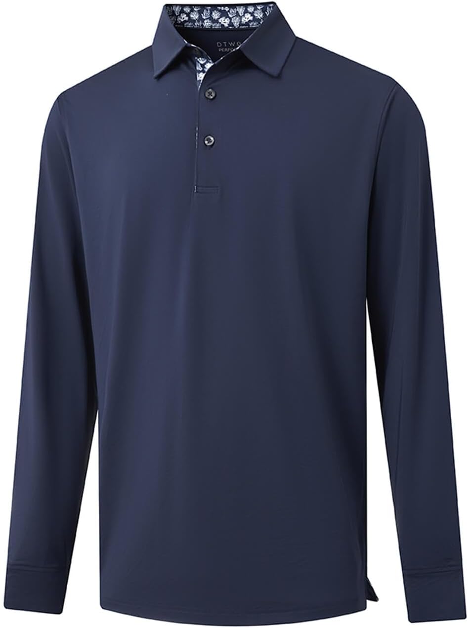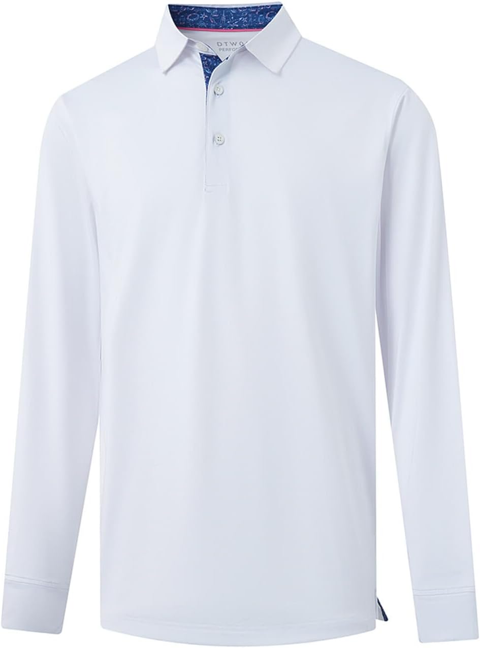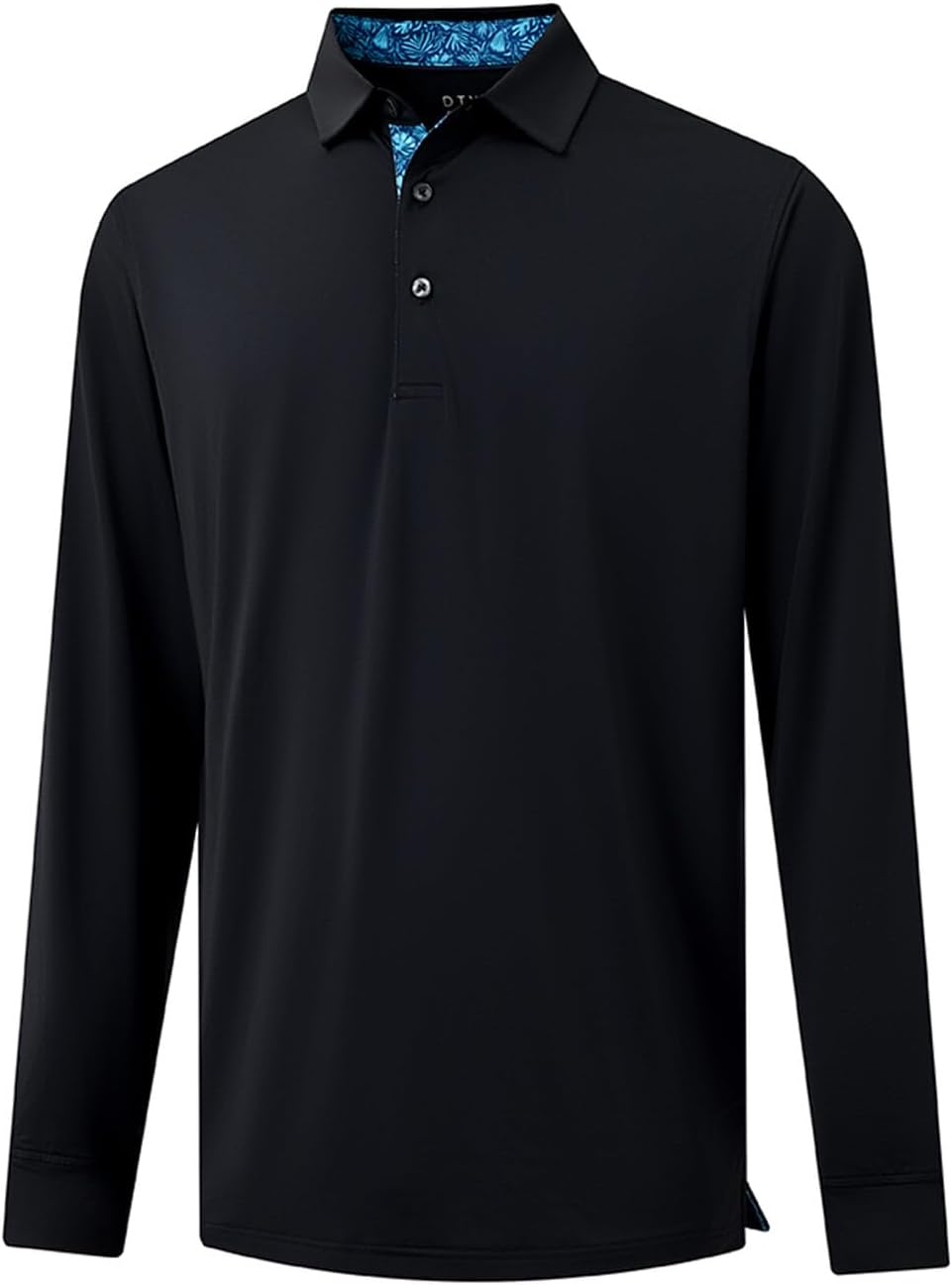 DTWOOO Men's Polo Shirt Long Sleeve Casual Solid Dry Fit High Performance Designed Collared Golf Men's Polo Shirt