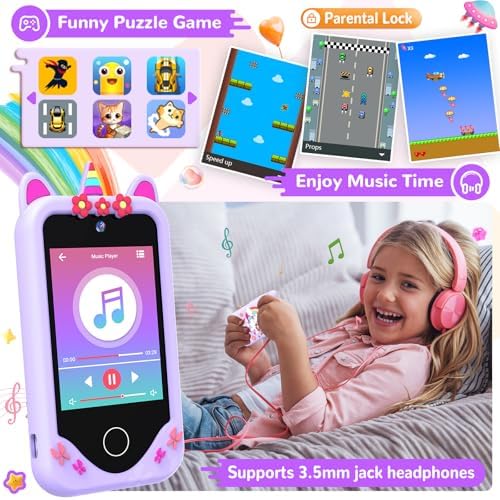 Kids Smart Phone for Girls Gifts - Toddler Birthday Gift for Age 3 4 5 6 Year Old, Kids Cell Phone Toy with 2.8” Touchscreen, Dual Cameras, Learning, Play Games, Video Player with 32 GB Card (Purple)