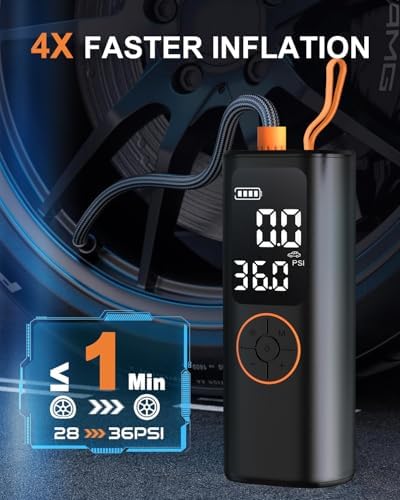 [More selection modes] - 4 preset modes of portable air compressor make it easier to inflate cars, motos, bikes and balls. And the 0-150PSI Custom mode meets more inflation needs. What's more, 4 pressure units can be switched at will, a digital pressure gauge allows real-time pressure and preset values to be clearly seen everywhere, and the auto-off function when the preset value is reached. Easier operation! [Safe & Portable] Its cordless design offers maximum portability, allowing you to use it anywhere without being tethered to a power source.Compact enough to store in your vehicle yet powerful enough to handle various inflation needs, this tire inflator combines convenience with functionality. Perfect for both emergency situations and regular maintenance, it's an essential tool for any vehicle owner.We no longer have to wait in line at a paid air pump several miles away. [Multipurpose Emergency tool] - This cordless tire inflator can be an multifunctional emergency tool. The multi-function LED light can help you solve vehicle failures, alert pedestrians or send distress signals. It is also an emergency power source for electronic devices. ToobTiill is ready for your road trips and emergencies anytime, anywhere. 【??????? ????????】Includes various accessories: tire inflator *1, connecting air hose *1, atmospheric nozzle *1, small-diameter mouthpiece *1, French adapter *1, ball pin *1, Type-C charging cable *1, user's manual *1. [Buy with confidence] - The car tire pump is a perfect gift for your loved ones. Enjoy a risk-free purchase with a 30-day free return or exchange policy. If you have any questions or concerns, please feel free to contact ToobTiill .