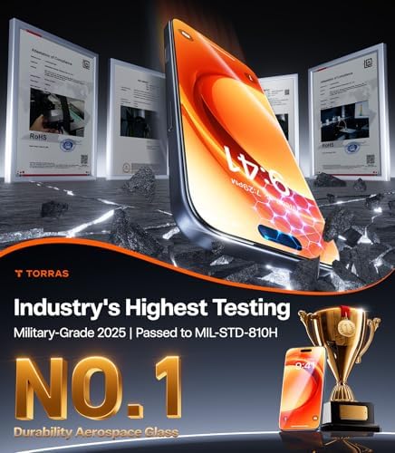 (No.1 Durability: Military-Grade 9H+ Aerospace Glass) Compatible with iPhone 17. It’s the world’s first screen protector made with Military-Grade 9H+ Aerospace Glass—the very same material used in spacecraft. Endorsed by Top Tech Creators. With over 138.86 million packs sold globally, there has not been a single reported case of screen breakage. (Unbreakable & Unscratchable) Crafted with 4-LAYER Dense Molecular Structure Aerospace Glass, this screen protector delivers military-grade protection you can rely on: it boasts 12Ft Military-Grade Shatterproof performance, 9H+ Scratch-Resistant Hardness, and an impressive 5 years of ultimate durability. So you can climb higher, ride faster, explore further: focus on fearless record-breaking, not worrying about broken screens. (Only Us - Our Own Lab, Defining New Standards) Meeting the industry's highest testing standards.Tested through 8000+ drop tests (0 cracks), 25000+ scratch tests (0 scratches), 325lb stress test (0 broken) and wear tests. Certified to meet MIL-STD-810H military standards (2025), you need not worry about any unexpected drops or impacts. (1:1 Invisible Full Coverage Protection) Featuring a 2.5D Edge-to-Edge Design and 6X Tempered Edge, this screen protector delivers gap-free, dust-free, and light leak-free defense—offering a seamless edge-to-edge fit so precise, you’ll forget it’s even there. It’s fully compatible with any case, while its curved edges ensure a smooth, finger-friendly touch experience that feels natural with every use. (One-Step Installation - Just One Pull) Its most advanced installation kit yet makes applying your iPhone 17 screen protector effortless: with just one pull, you get precise alignment, bubble-free results, and dust-free perfection—all backed by 20,000 installation tests with a 100% success rate. No more stress over misalignment, bubbles, or dust. For anyone who demands perfection, this is the ultimate solution. (12-Month Worry-Free Warranty Replacement) TORRAS offers round-the-clock customer support for this iPhone 17 screen protector, with over 2,000 professional customer service representatives offering 1 to 1 assistance. If you encounter any issues (installation problems/ cracks/ logistics issues/ incorrect size/ bubbles, or any other concerns) Please don’t worry! Contact us.