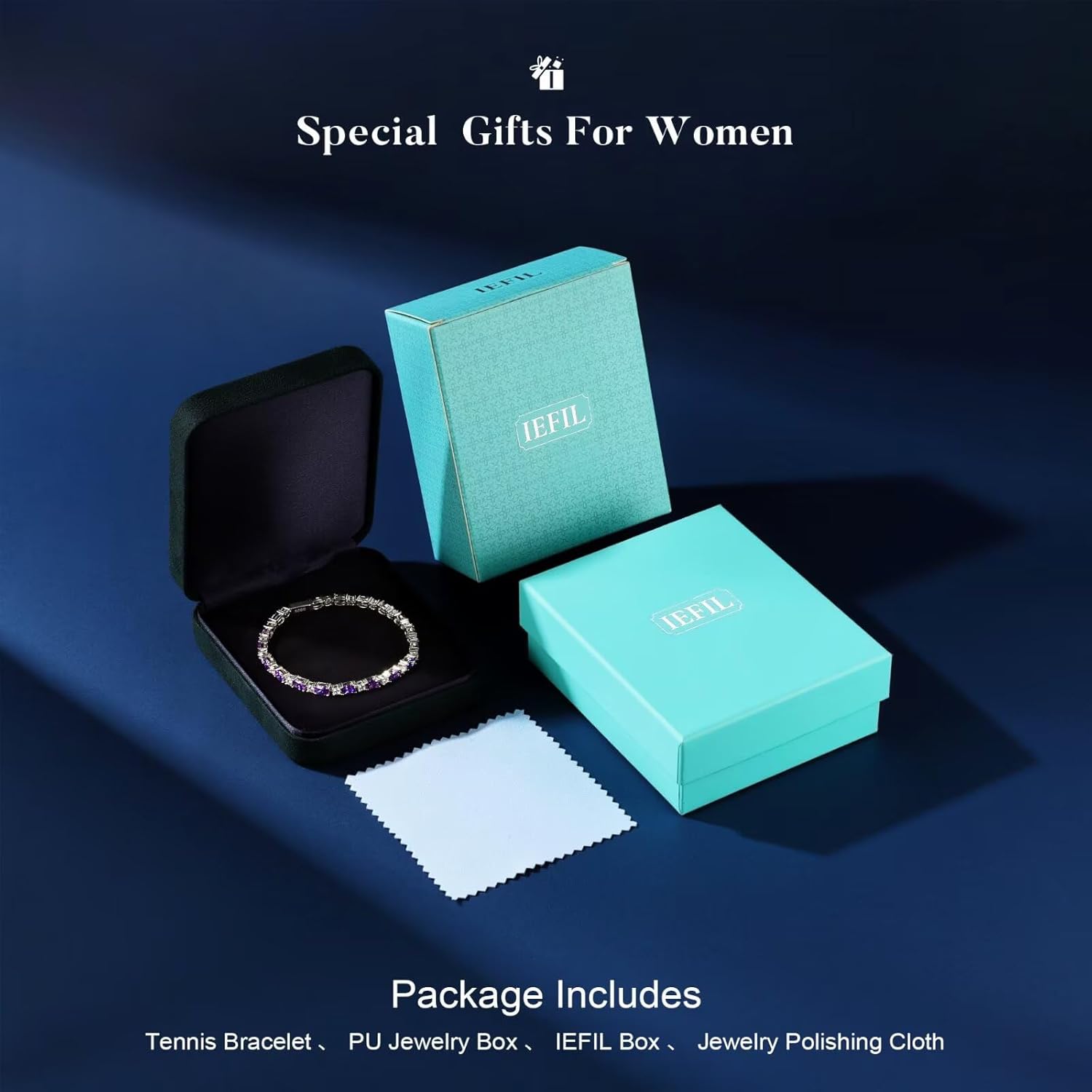 Iefil Tennis Bracelets for Women - 925 Sterling Silver Birthstone Bracelet, Anniversary Birthday Gifts for Women, Jewelry Gifts for Woman Her, 6.5"-7"