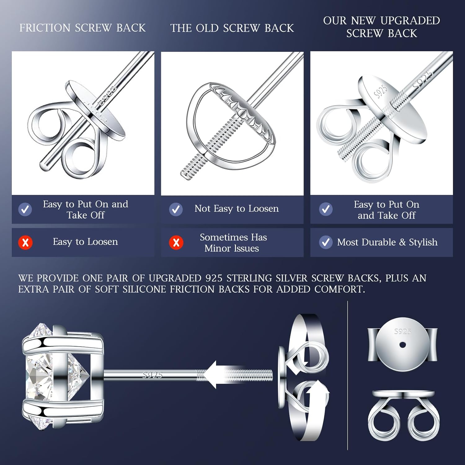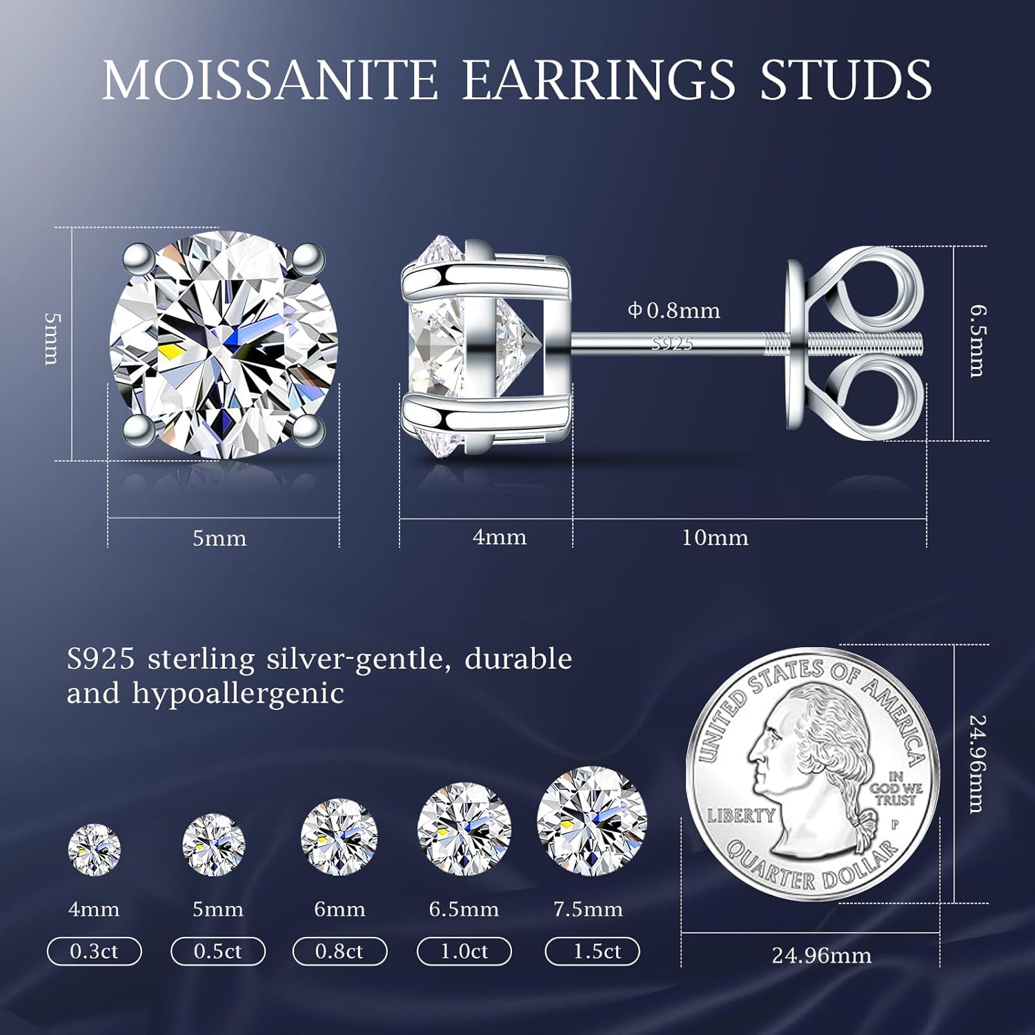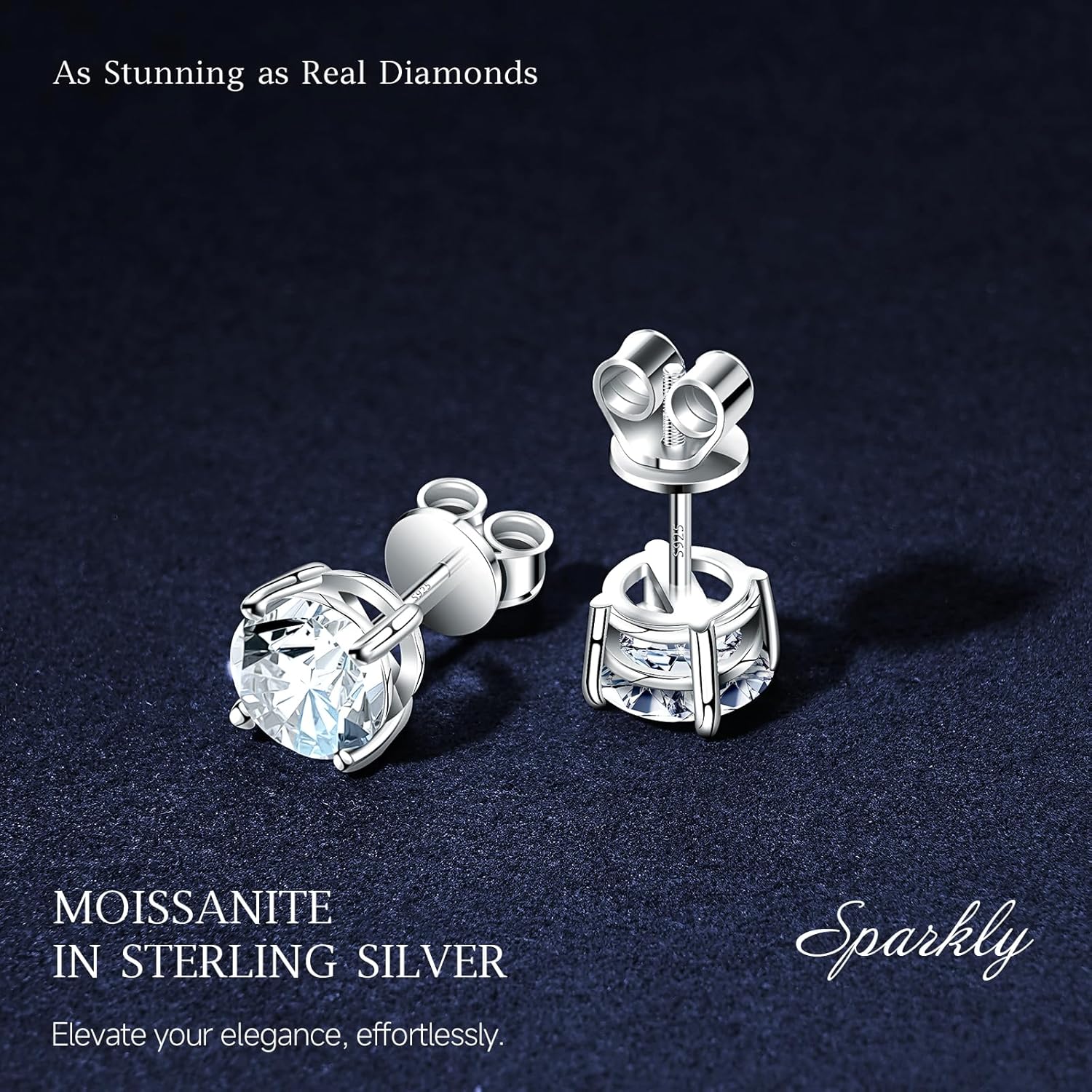 Velelia Moissanite Earrings for Men Women, 0.2ct-3.0ct Men 925 Sterling Silver Earrings, Round Cut Diamond Stud Earrings for Women