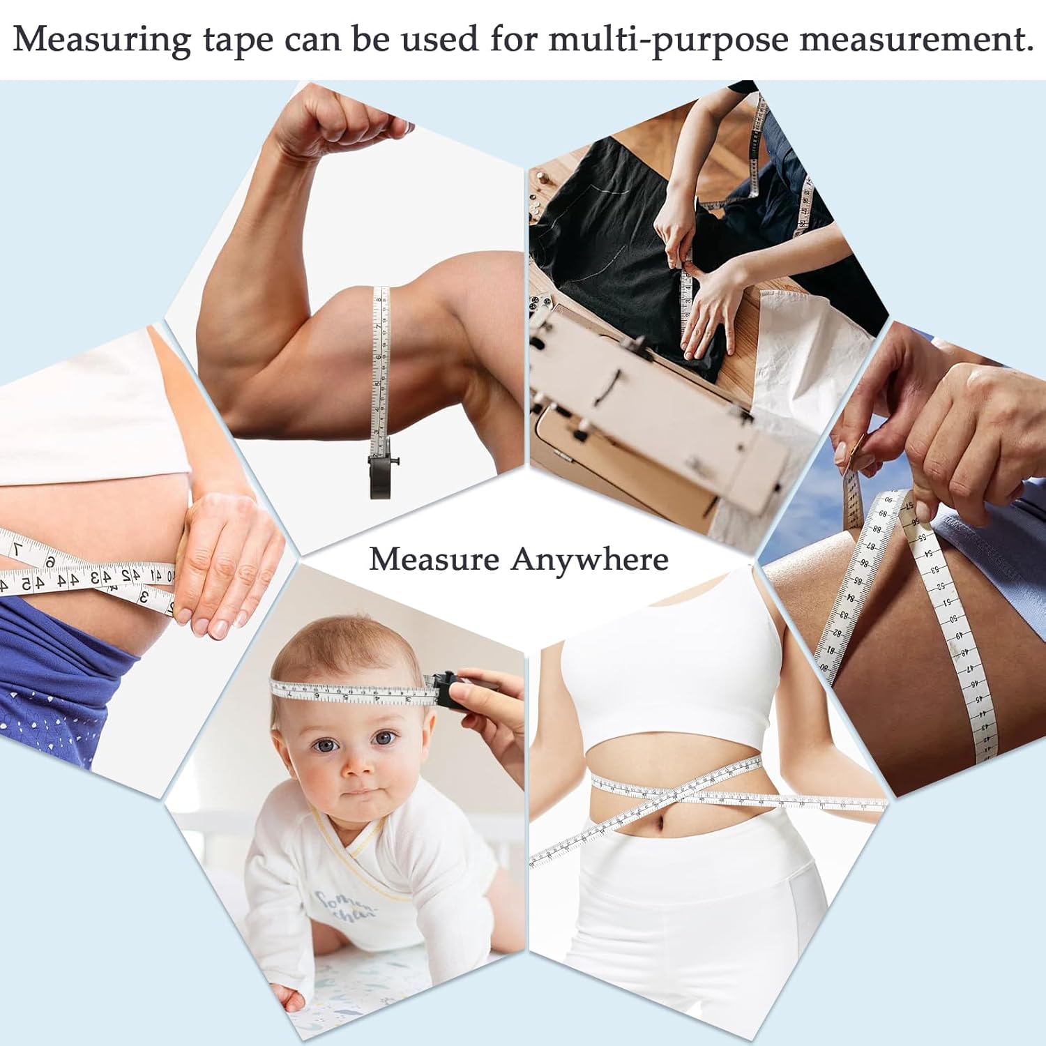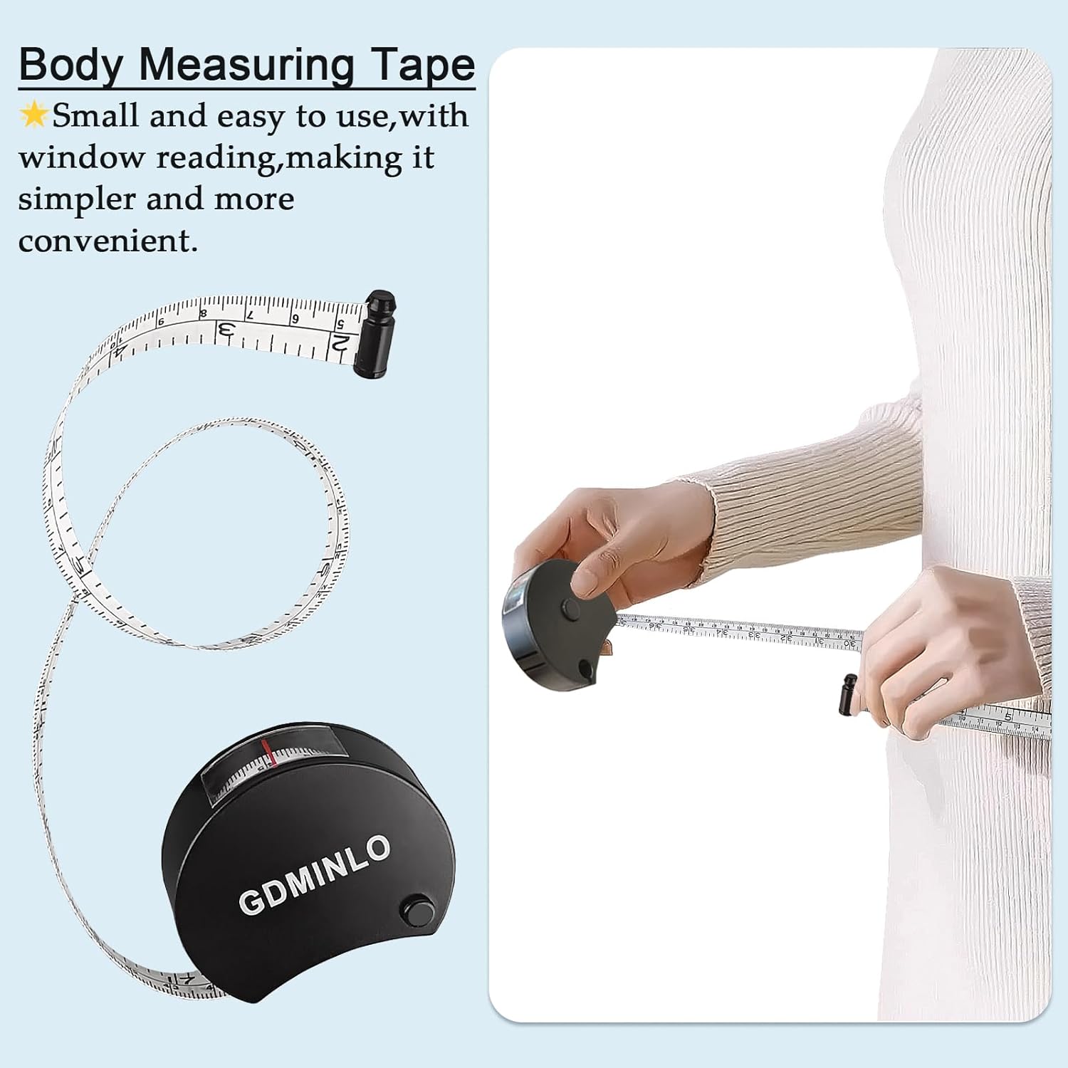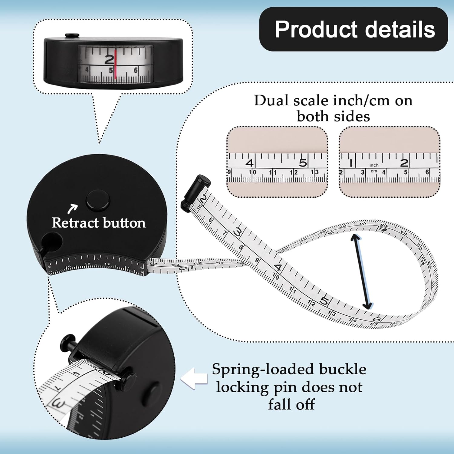 This versatile retractable measuring tape combines convenience with precision in your measuring needs. Featuring both imperial and metric scales up to 60 inches/150 cm, this black measuring tape offers accurate measurements for sewing, crafting, and body measurements. The soft, flexible design conforms easily to curves and contours while maintaining accuracy. Its retractable mechanism keeps the tape neat and compact when not in use, making it perfect for your sewing kit or craft supplies. The double-scale feature allows quick conversion between measurement systems, saving you time and calculations. The durable construction ensures consistent performance through repeated use, while the compact size makes it easily portable. Whether you're working on garment alterations, tracking fitness progress, or tackling DIY projects, this measuring tape delivers reliable measurements every time.