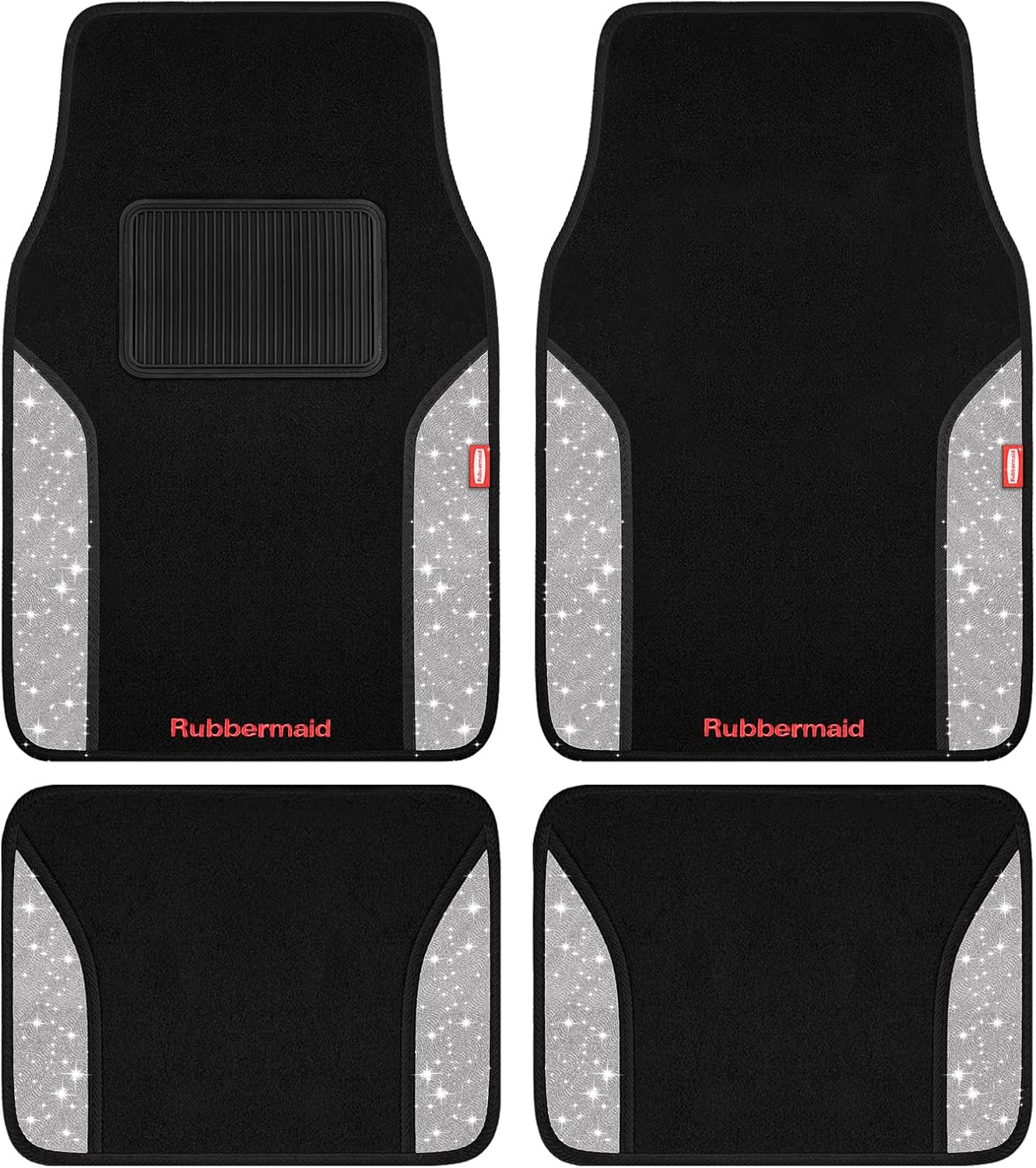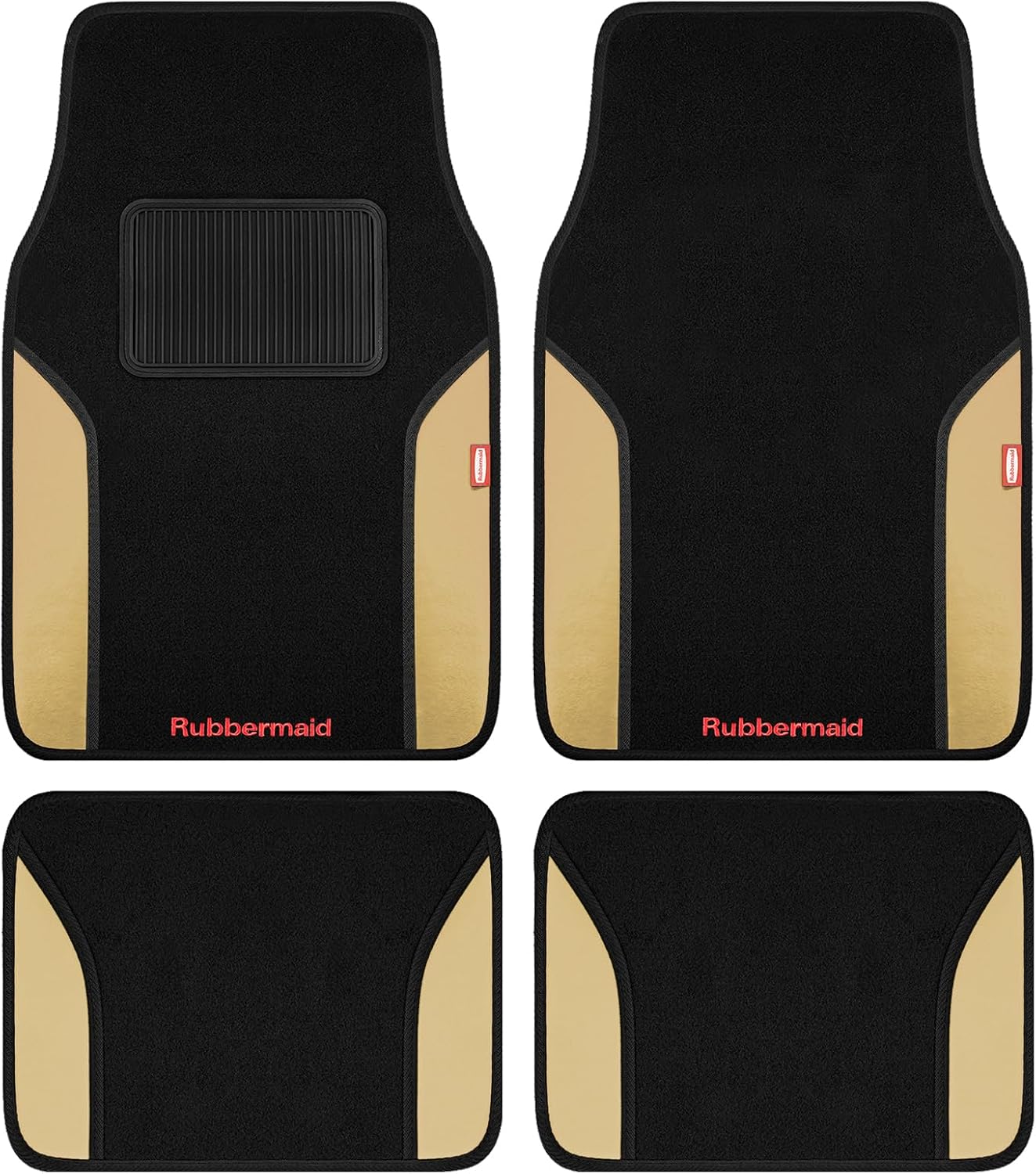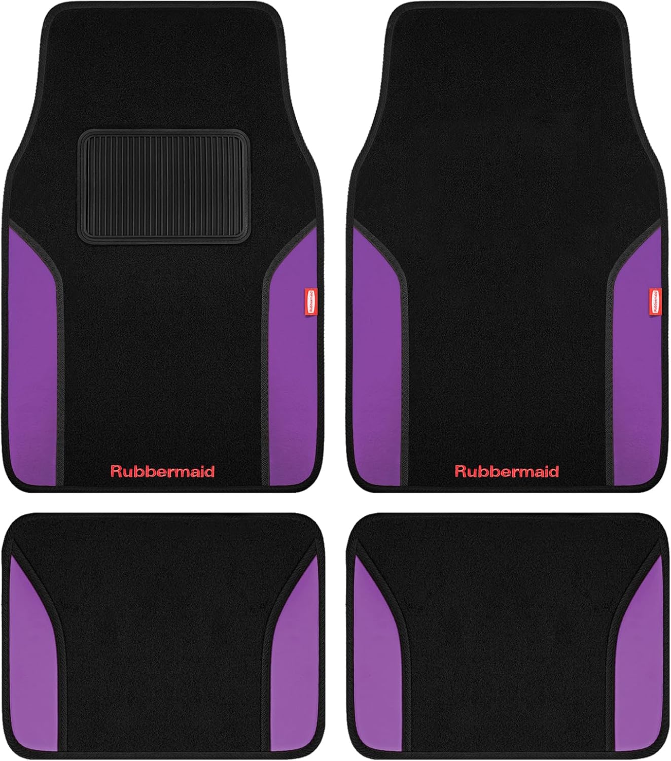 Rubbermaid Car Mats, Carpeted Floor Car Mat with Faux Leather & Built-in Heel Pad, Two-Tone Car Rug Floor Mats, Stylish Carpeted Floor Mats for Cars, Trucks & SUVs Black Color