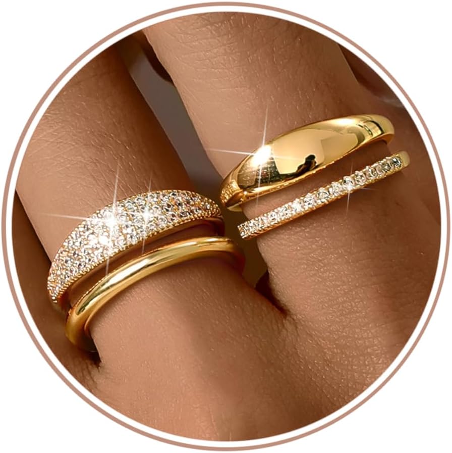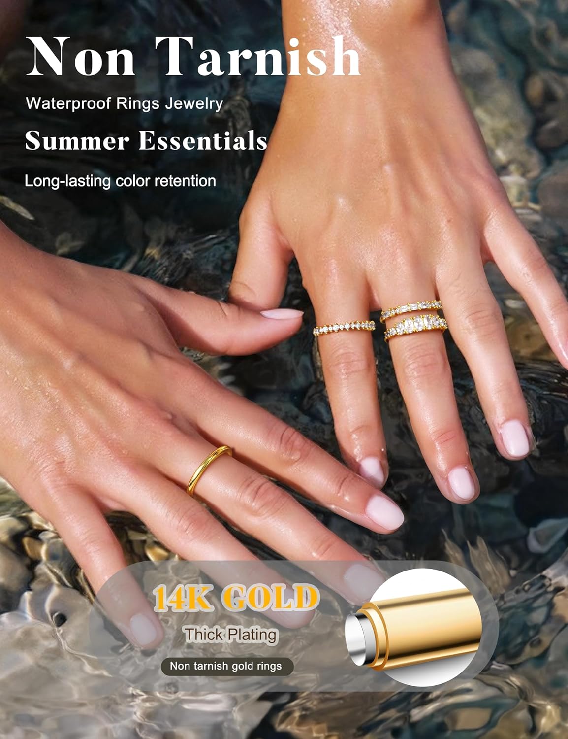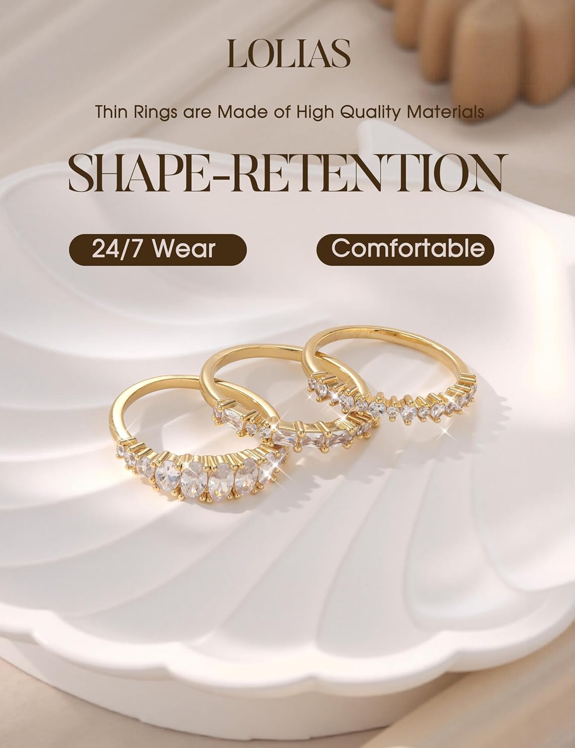 LOLIAS 14K Gold Plated Stackable Rings for Women Non Tarnish - Dainty Cubic Zirconia Wedding Bands Ring Set Minimalist Trendy Statement Engagement Promise Thumb Rings Stacking Size 5-10