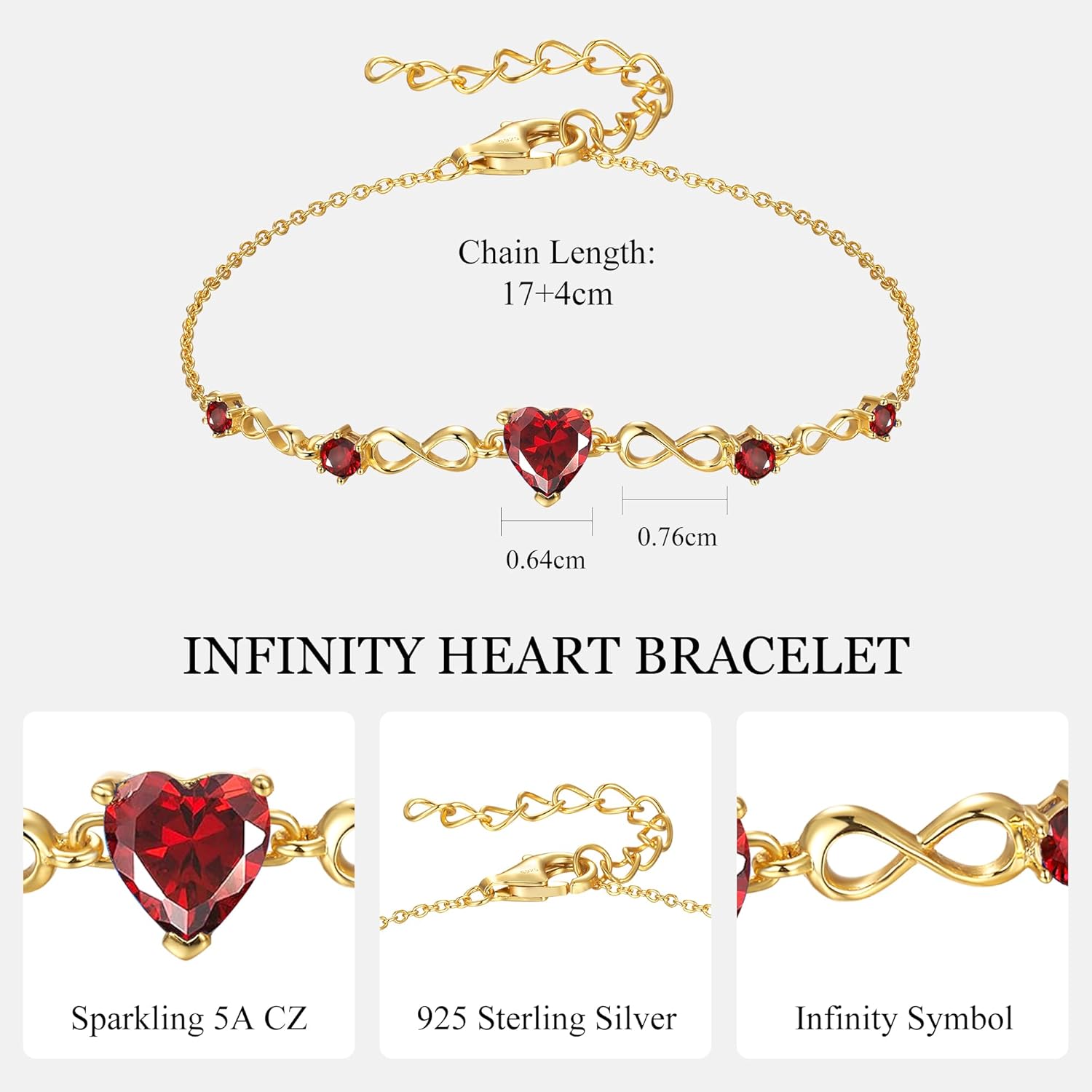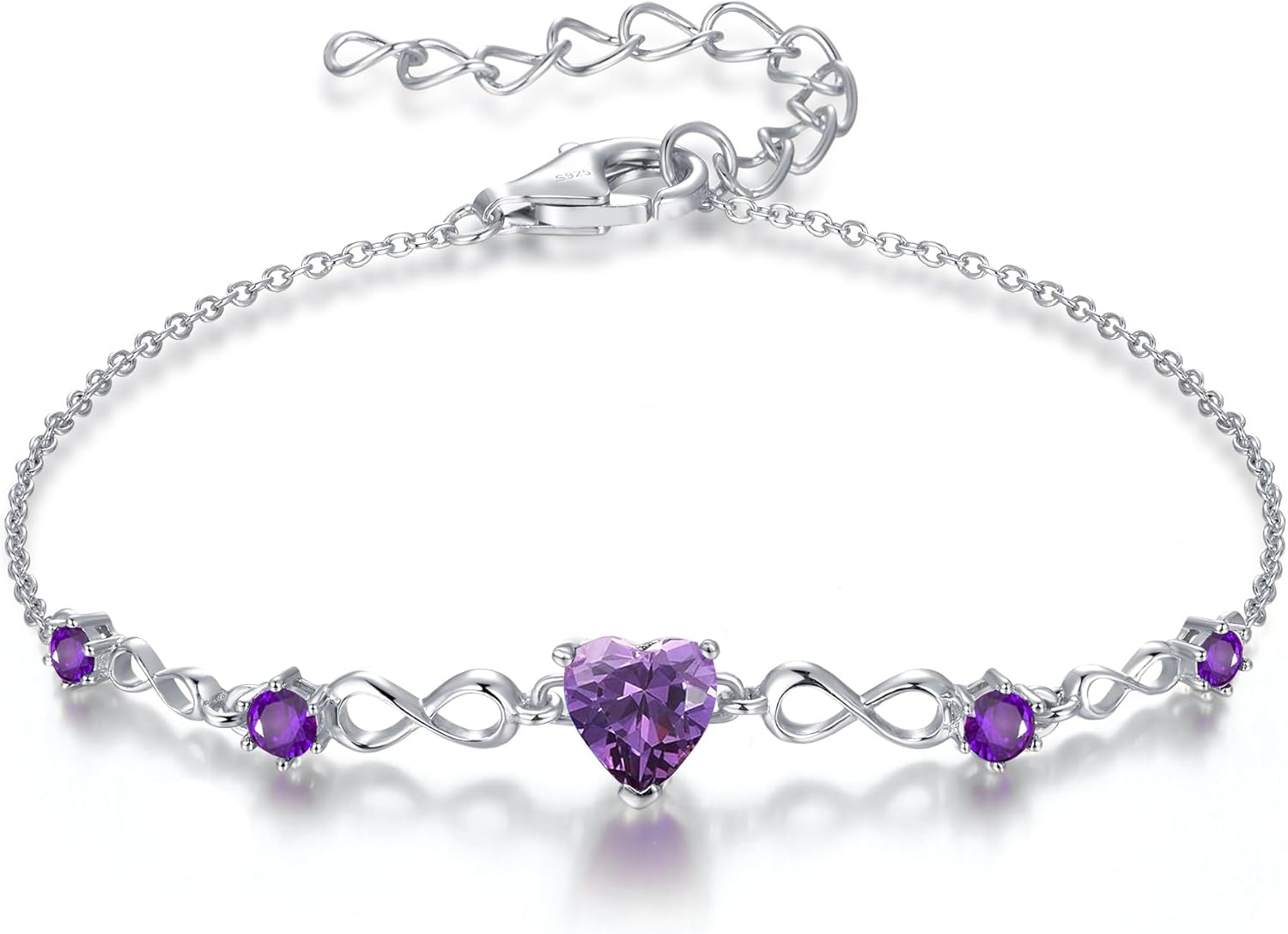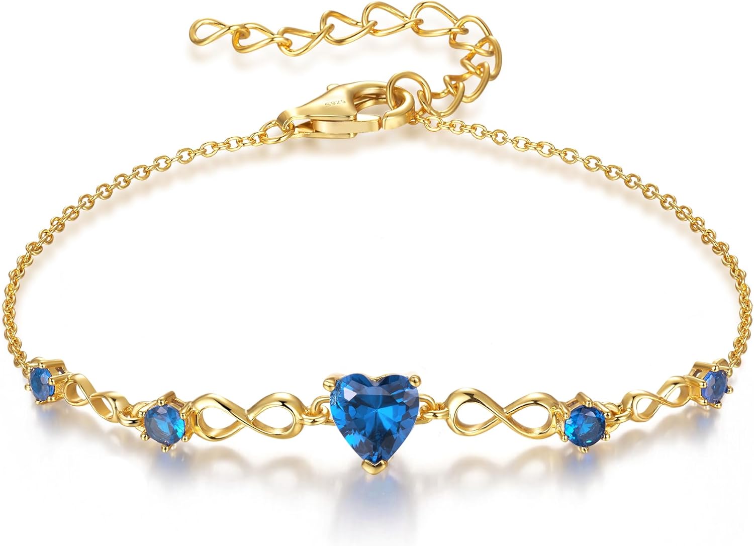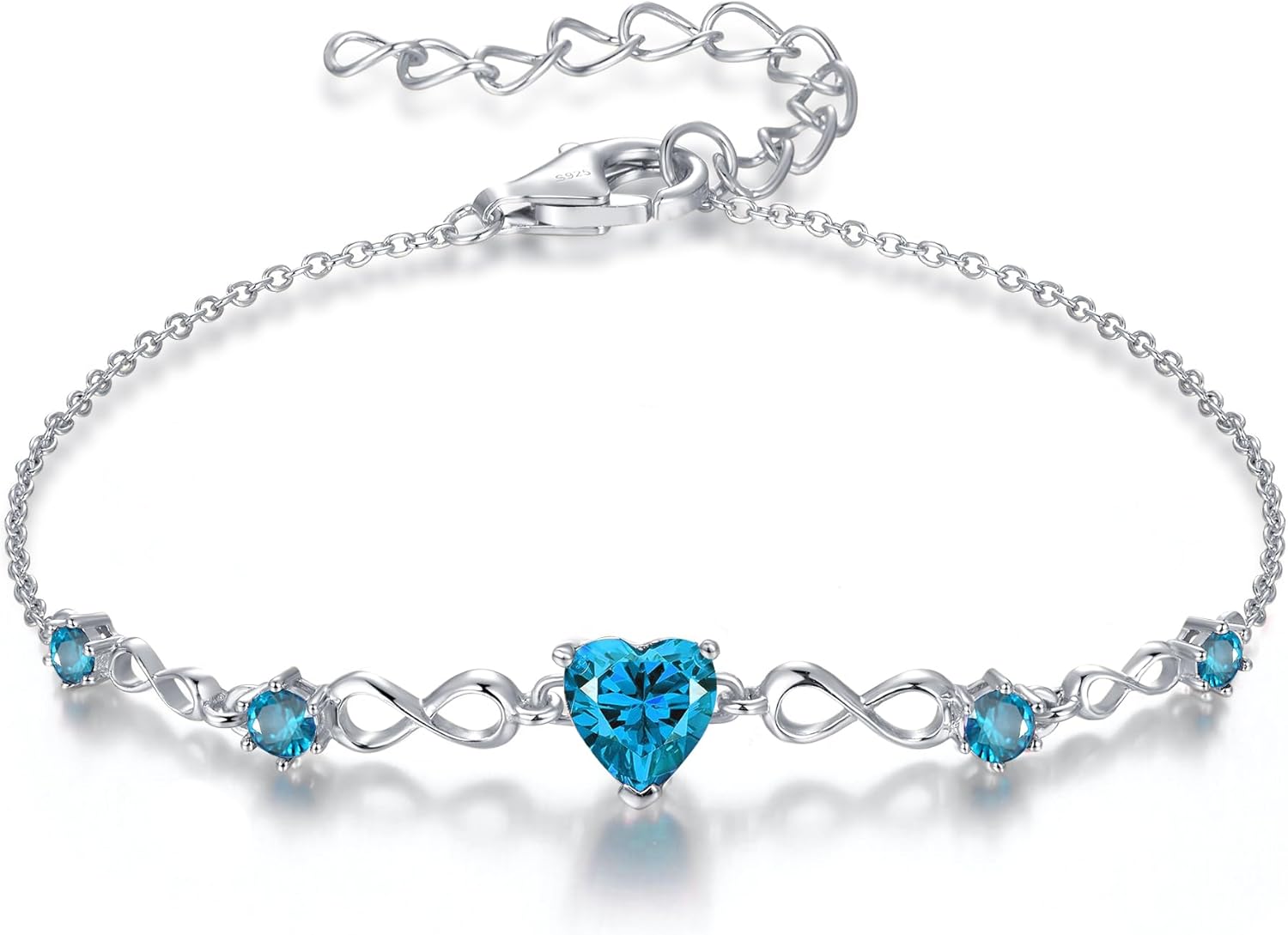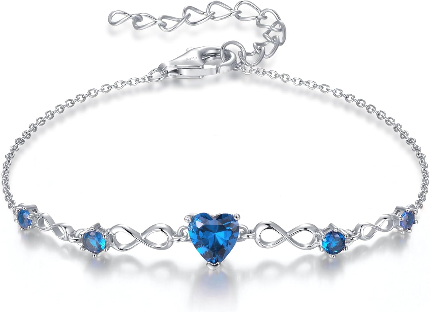 G&GEMSJEW Infinity Heart Birthstone Bracelets for Women, 925 Sterling Silver Women Charm Link Bracelet Adjustable, Birthday Anniversary Christmas Jewelry Gifts for Women Wife Mom Girlfriend Her