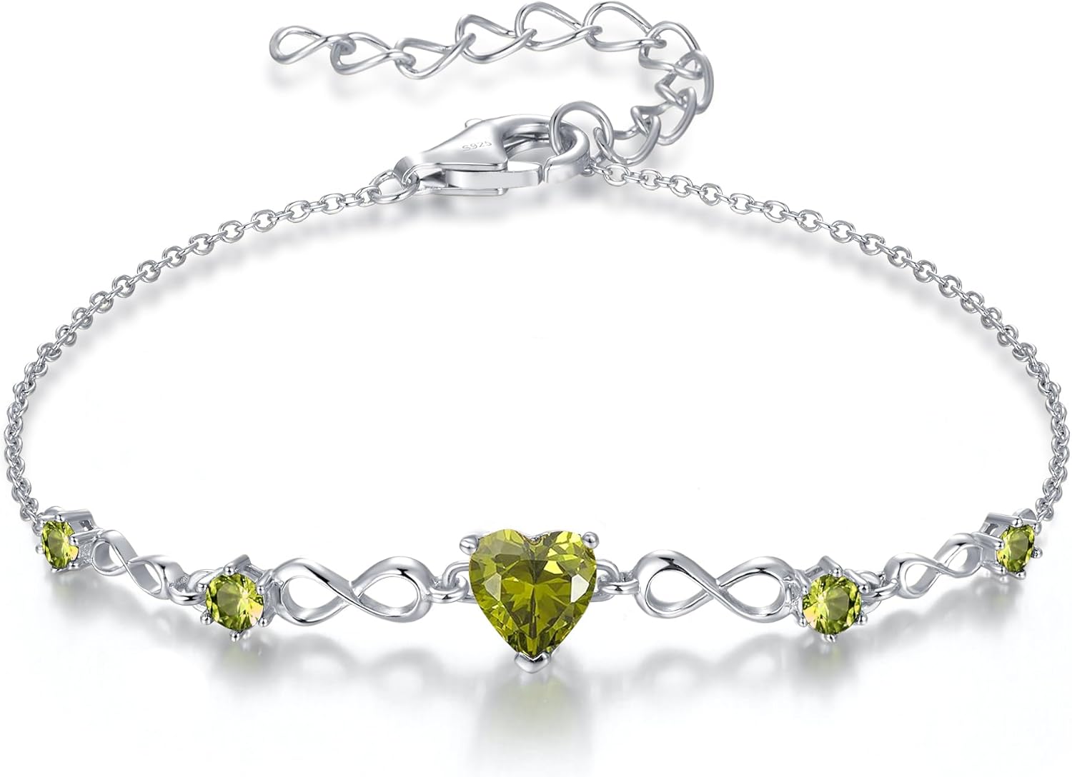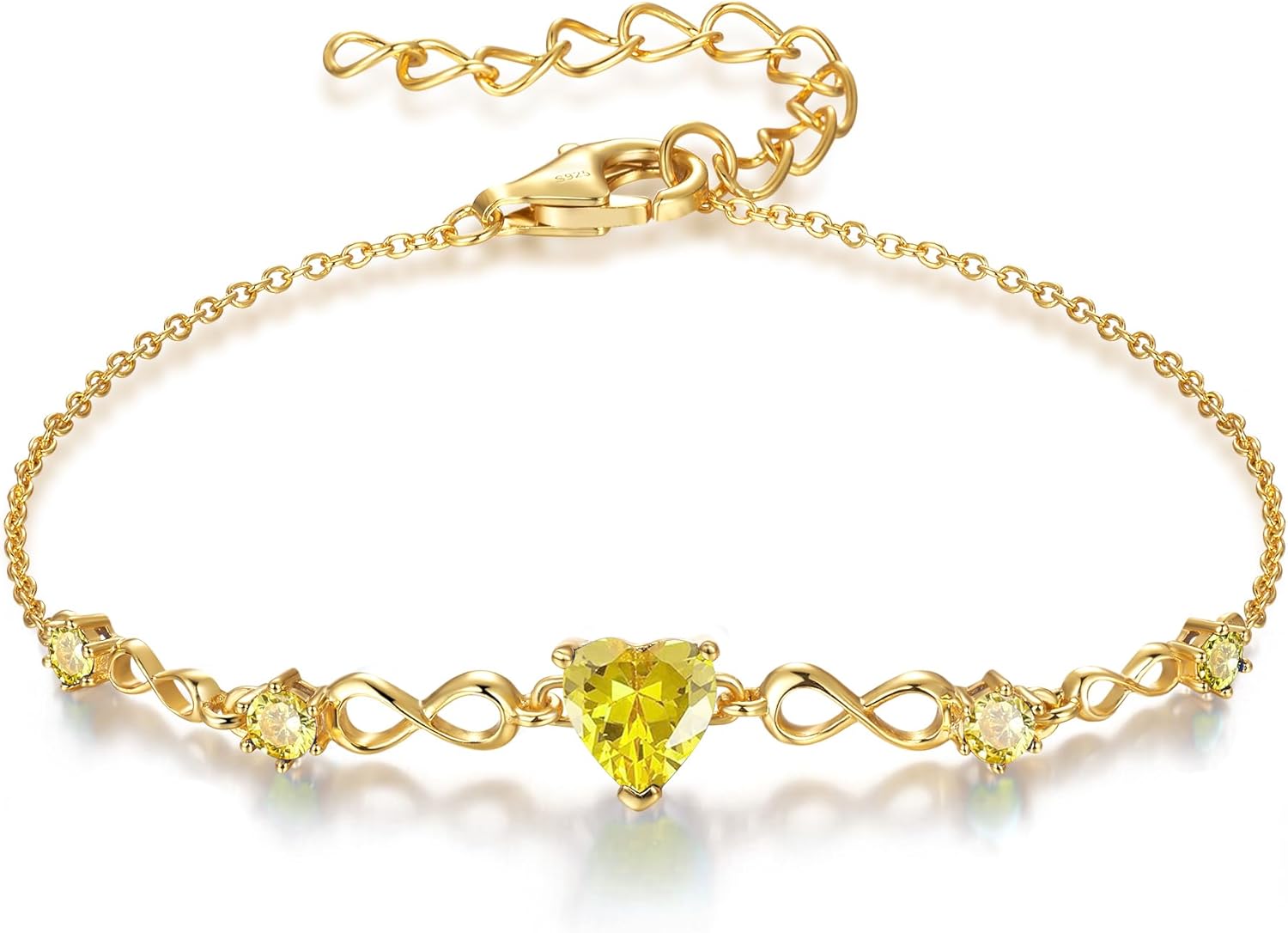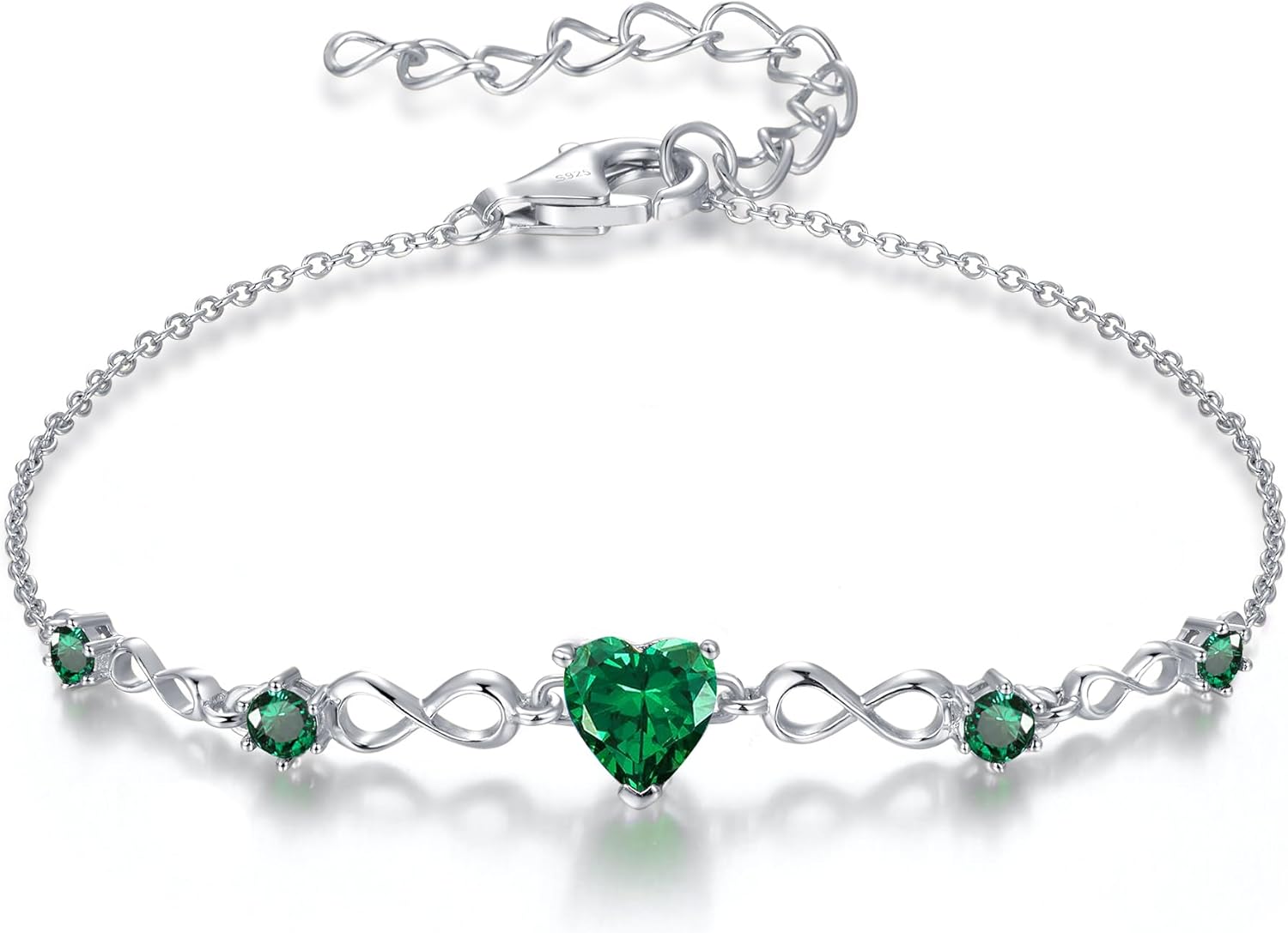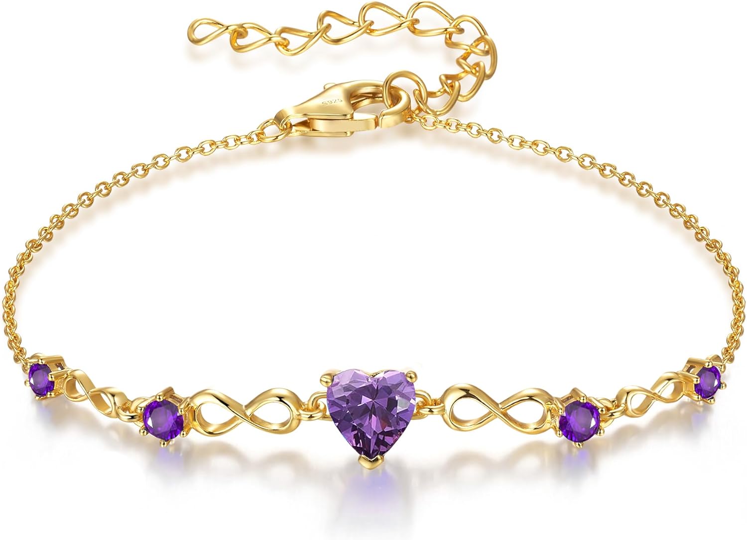 G&GEMSJEW Infinity Heart Birthstone Bracelets for Women, 925 Sterling Silver Women Charm Link Bracelet Adjustable, Birthday Anniversary Christmas Jewelry Gifts for Women Wife Mom Girlfriend Her
