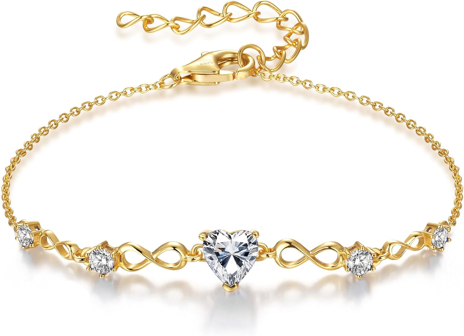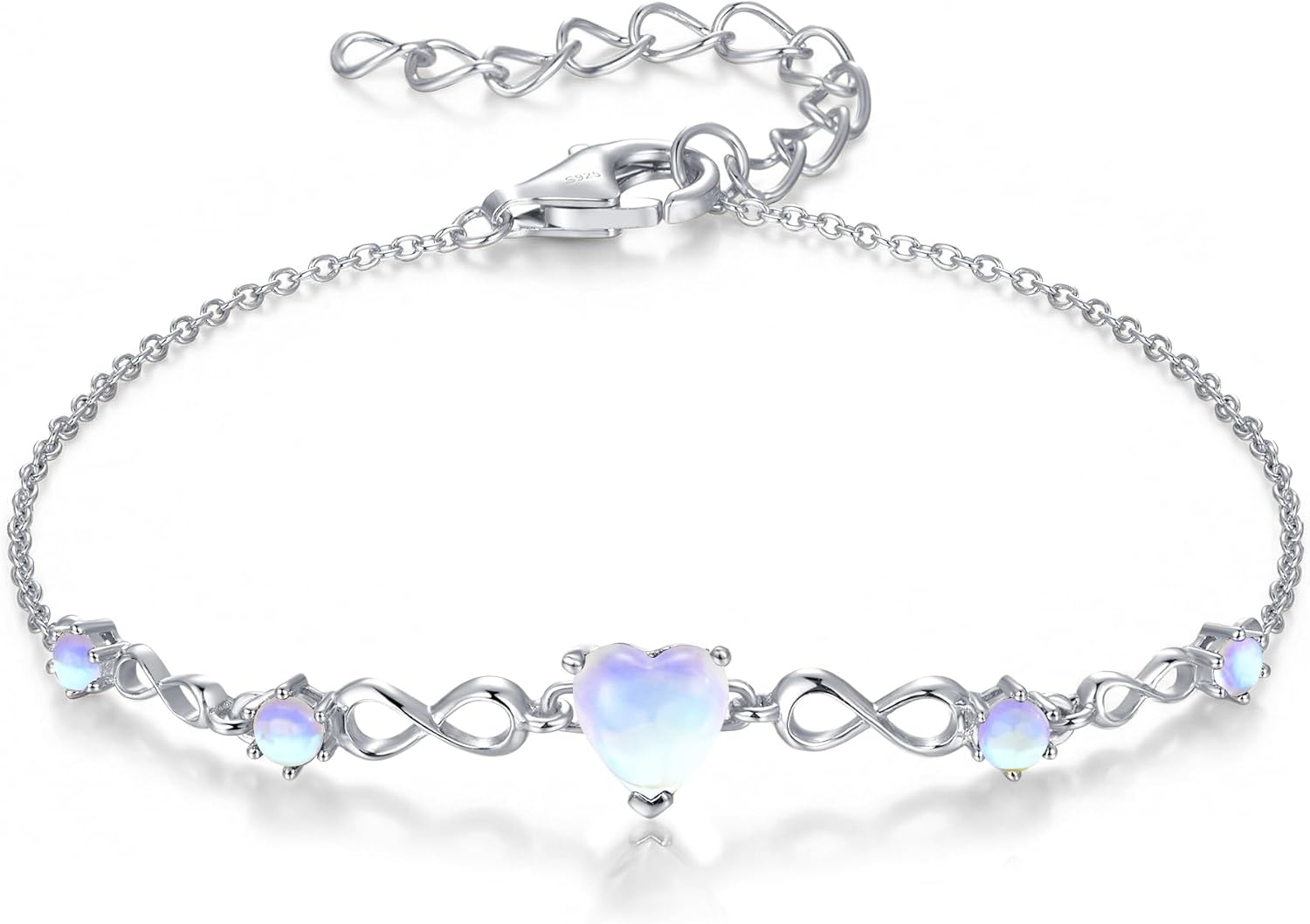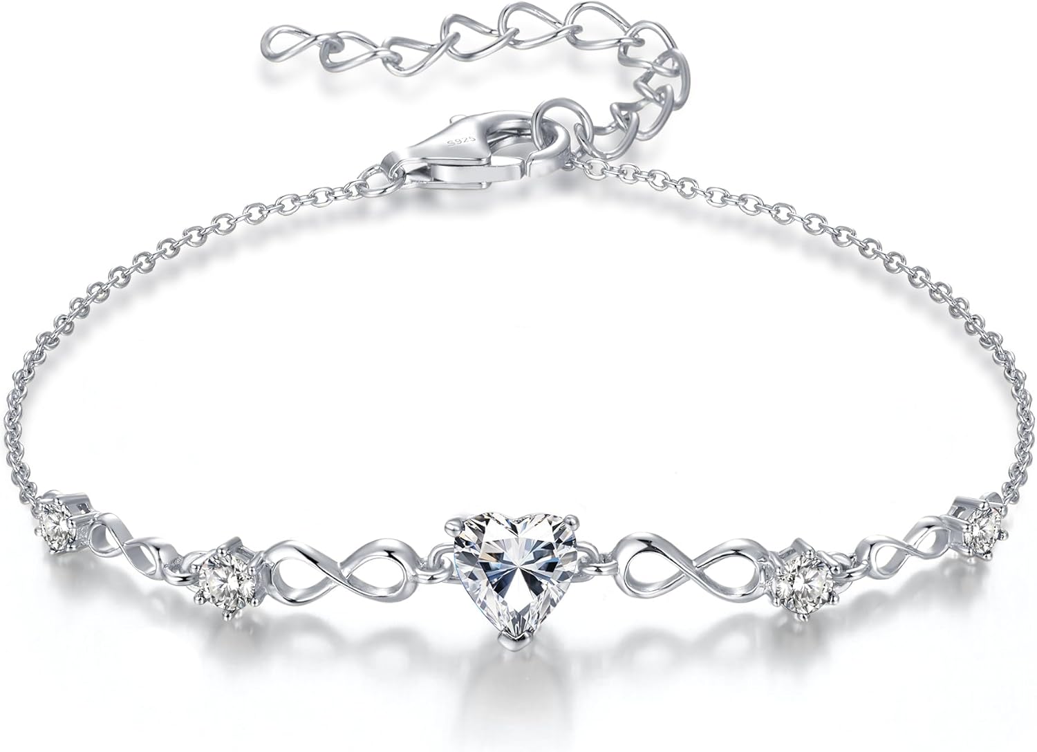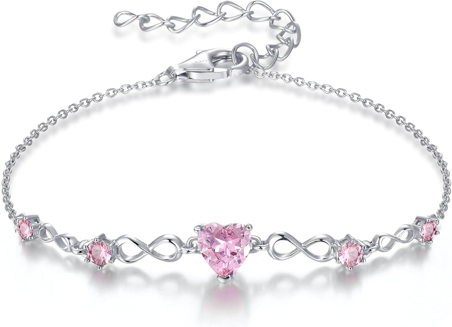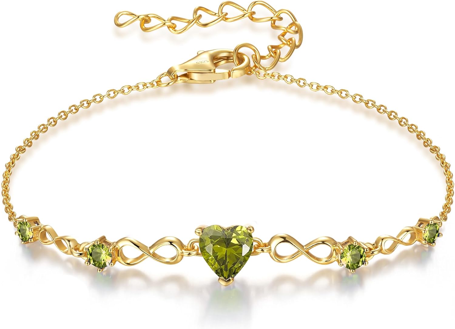 G&GEMSJEW Infinity Heart Birthstone Bracelets for Women, 925 Sterling Silver Women Charm Link Bracelet Adjustable, Birthday Anniversary Christmas Jewelry Gifts for Women Wife Mom Girlfriend Her
