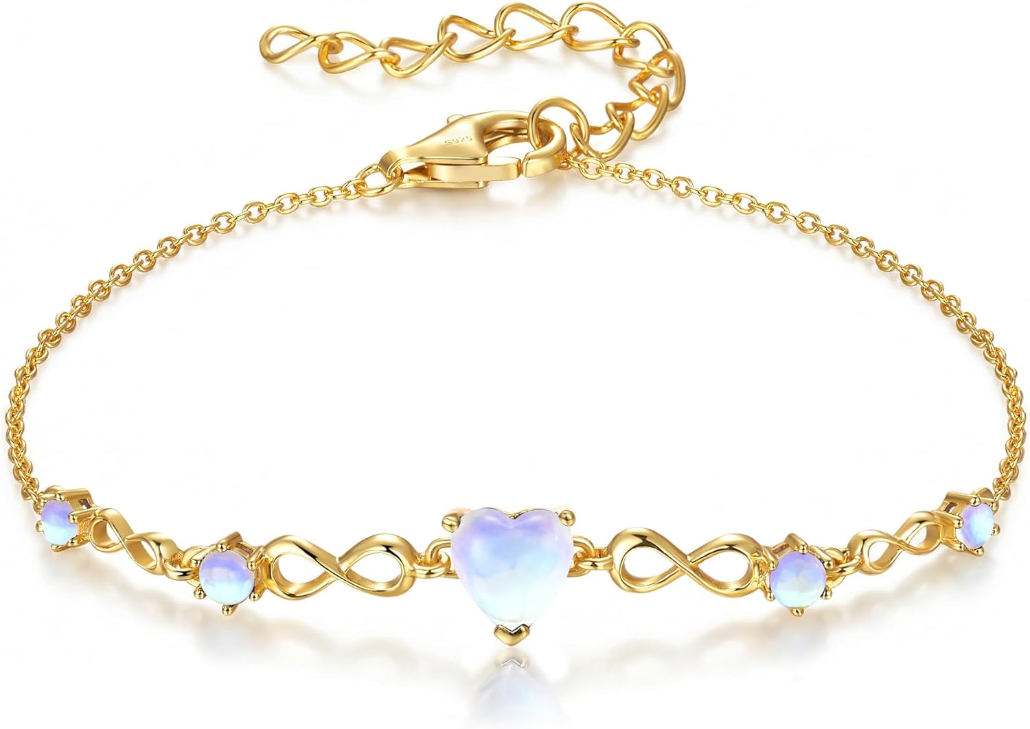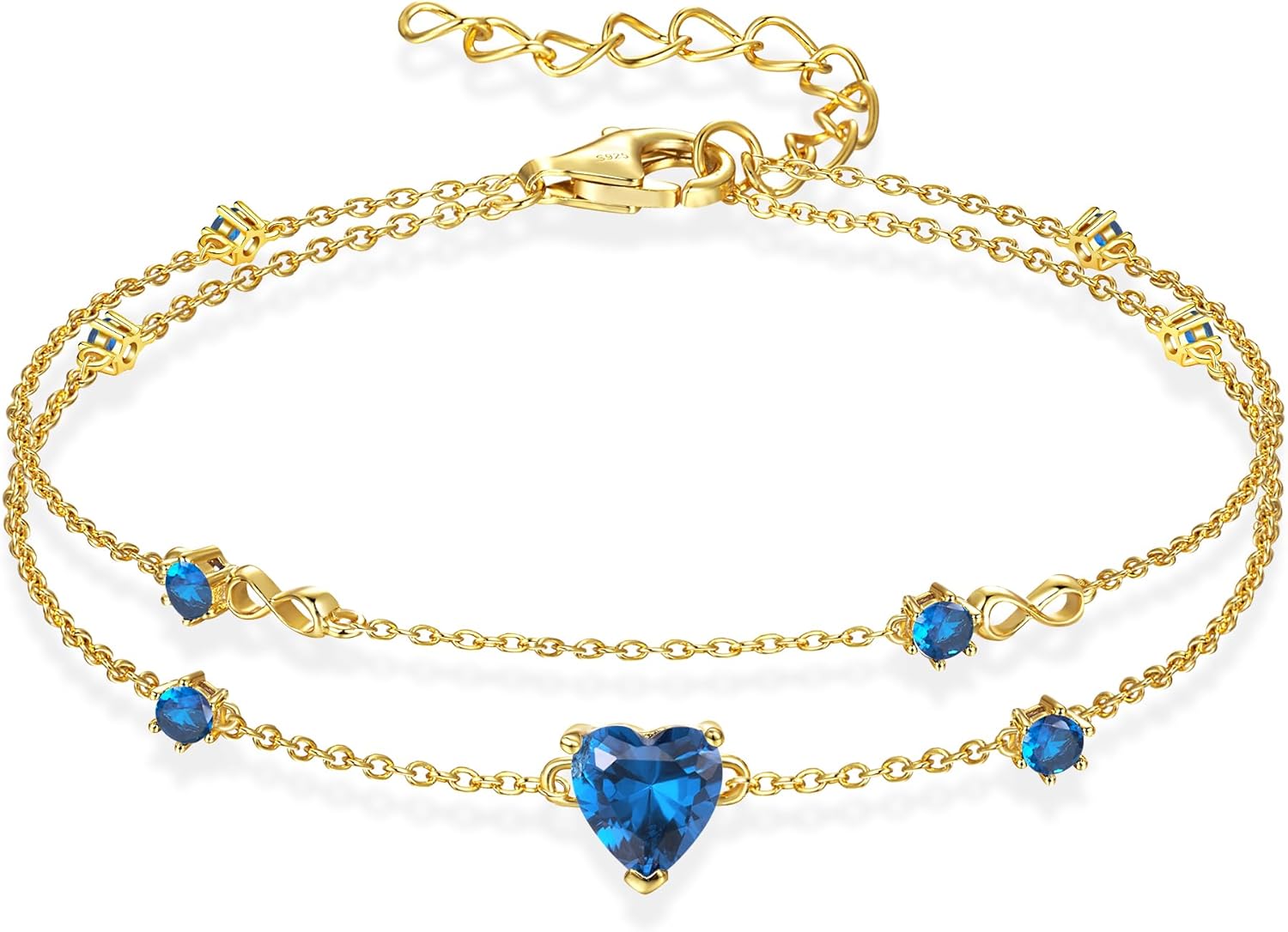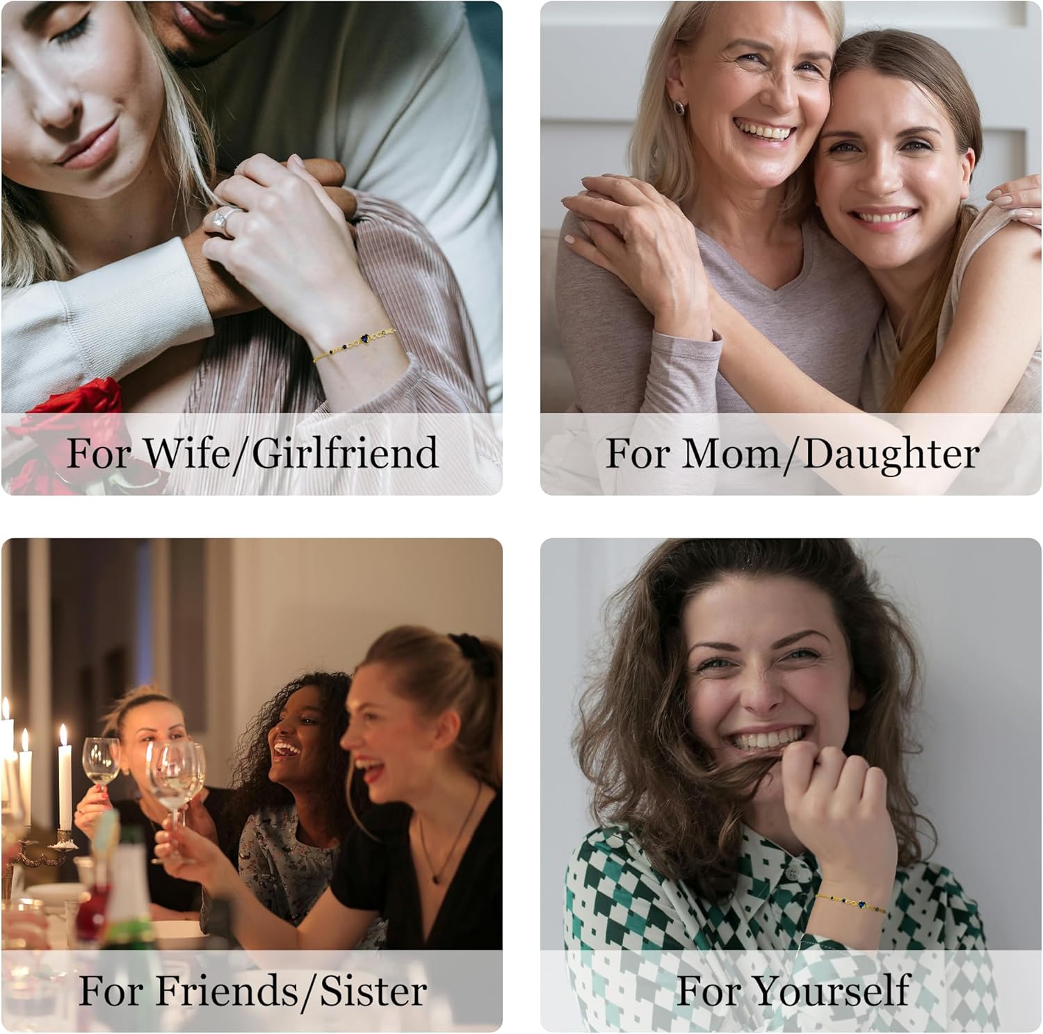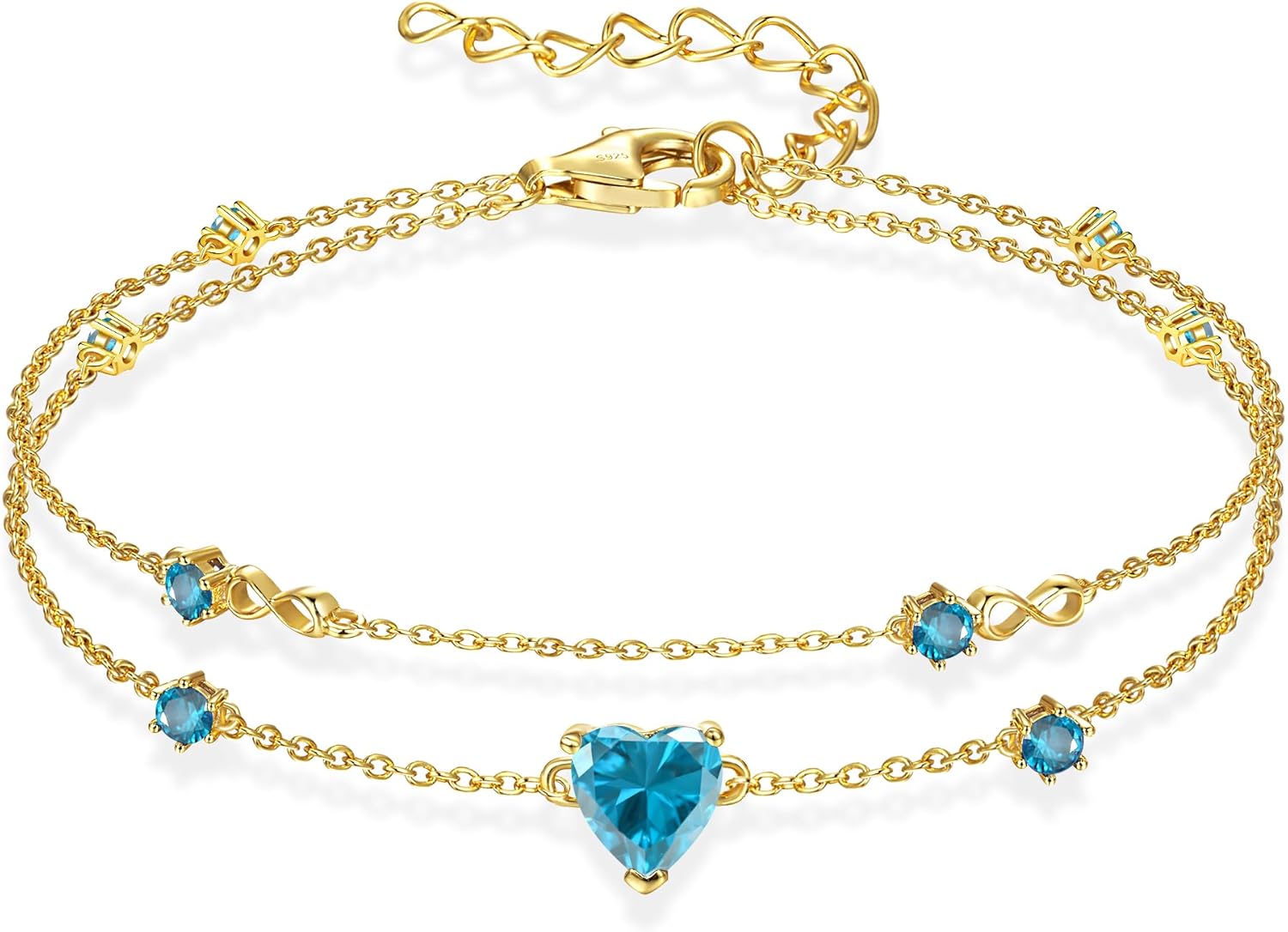 G&GEMSJEW Infinity Heart Birthstone Bracelets for Women, 925 Sterling Silver Women Charm Link Bracelet Adjustable, Birthday Anniversary Christmas Jewelry Gifts for Women Wife Mom Girlfriend Her