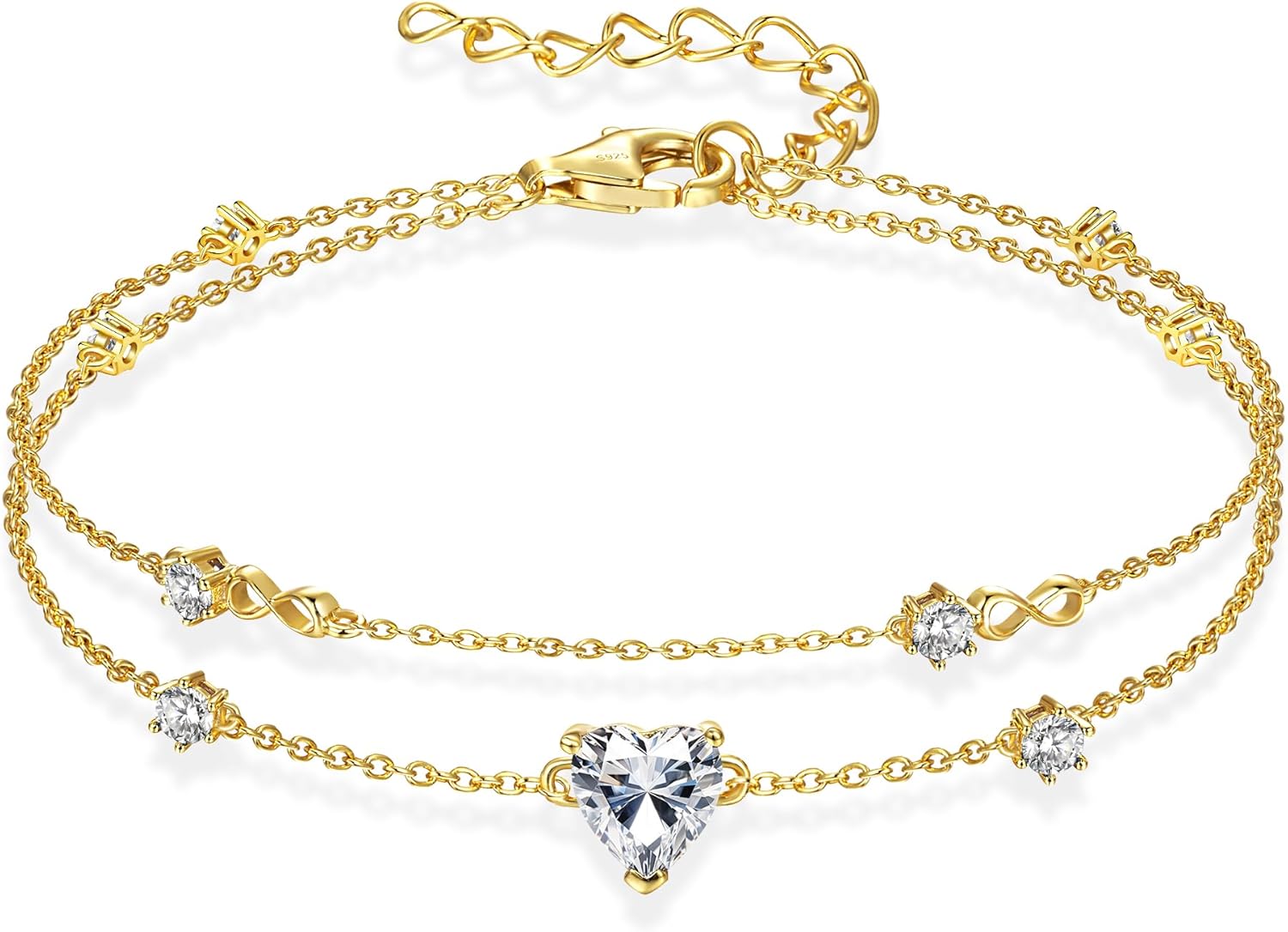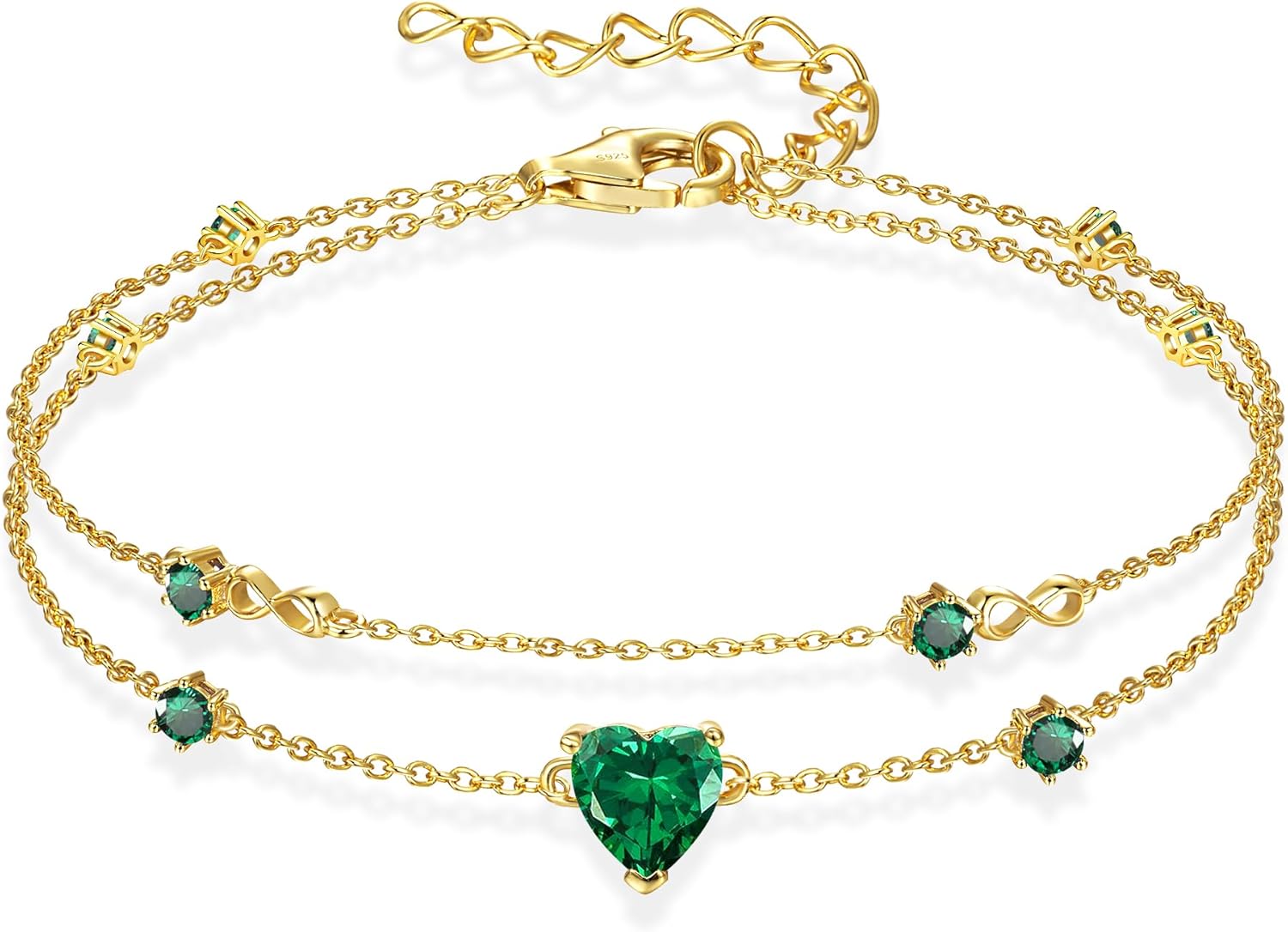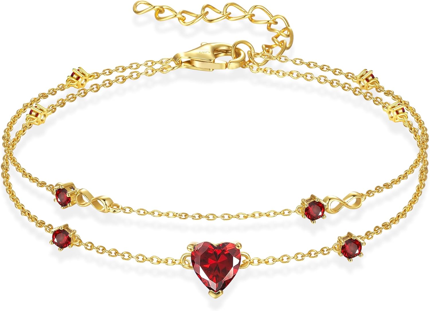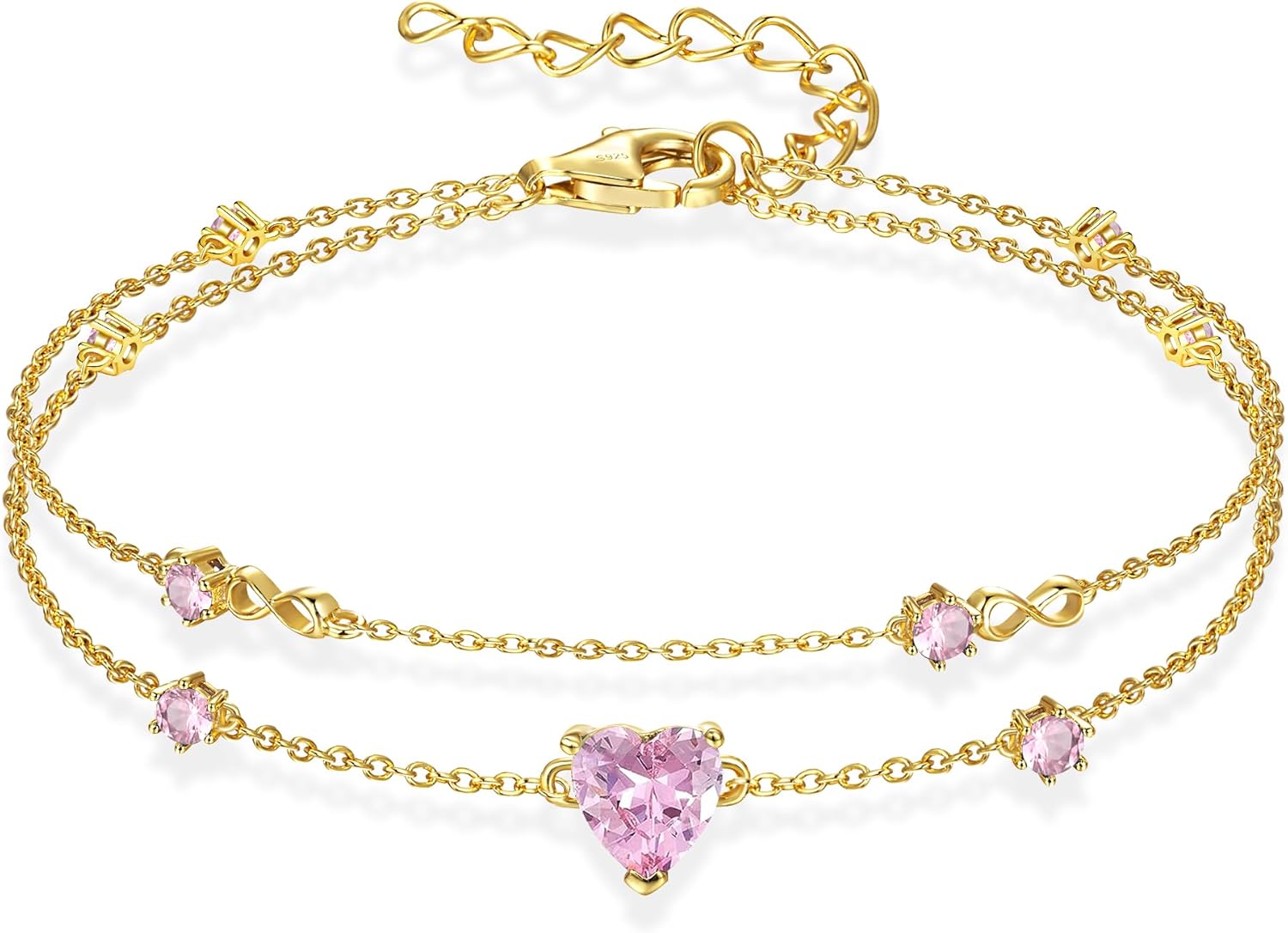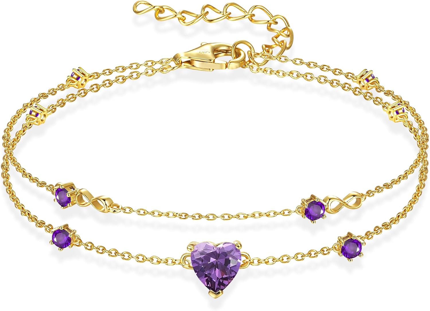 G&GEMSJEW Infinity Heart Birthstone Bracelets for Women, 925 Sterling Silver Women Charm Link Bracelet Adjustable, Birthday Anniversary Christmas Jewelry Gifts for Women Wife Mom Girlfriend Her