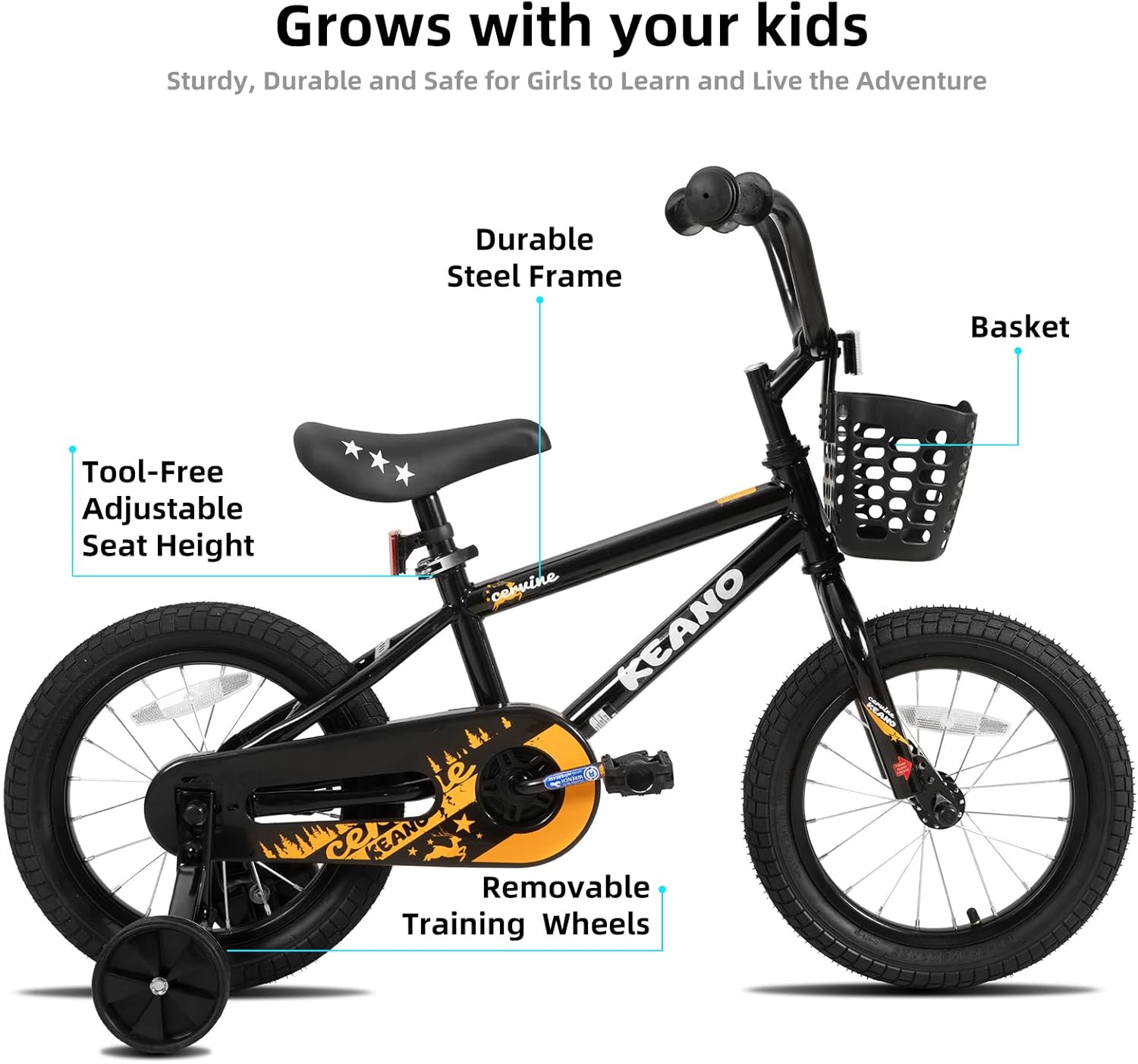 KEANO Cervine 14 16 20 Inch Kids Bike for Boys Girls Ages 3-10 Years, 14 16 Inch Toddler BMX Bikes with Training Wheels and Basket, 20 in Children Bicycles with Kickstand