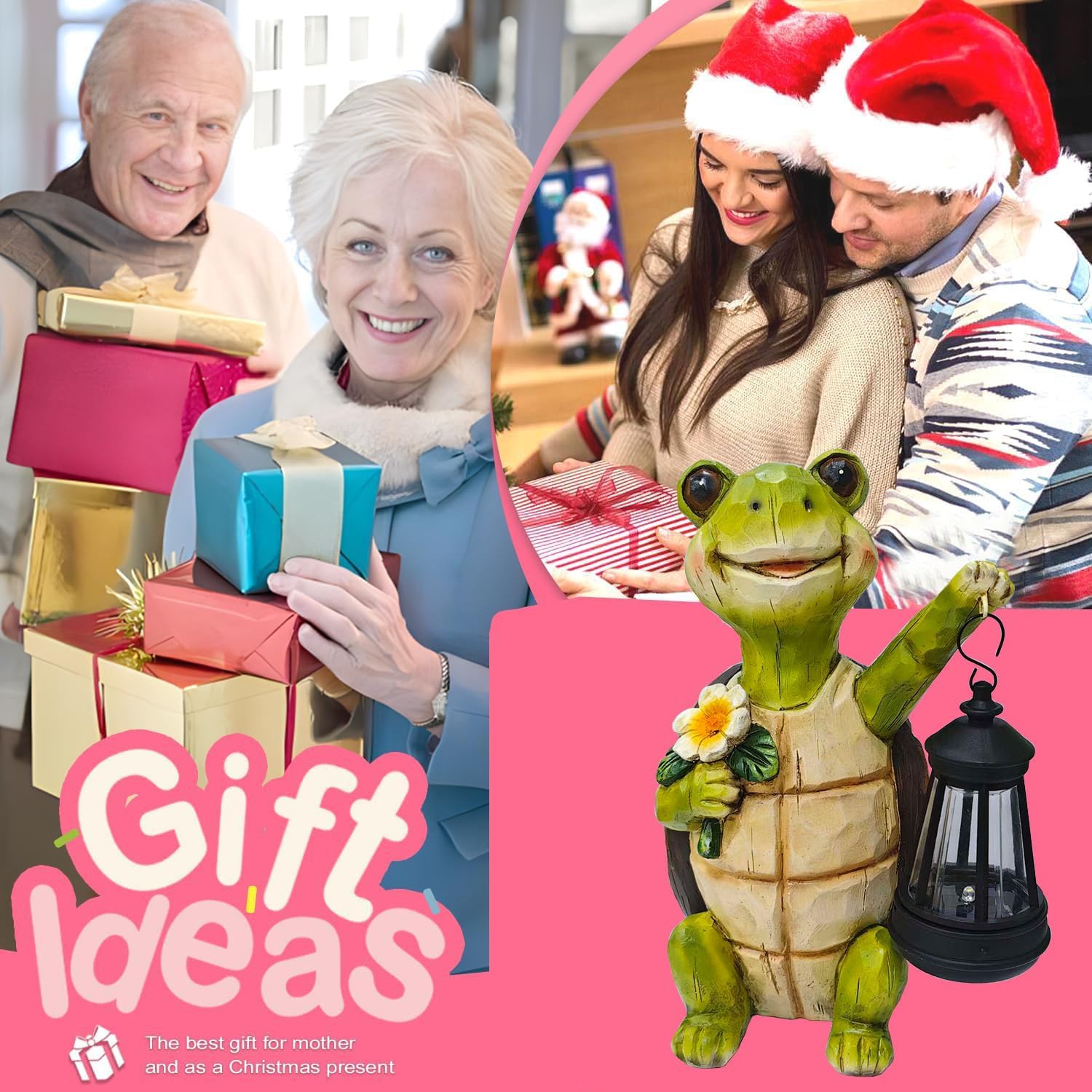 - [unique gift] This garden turtle solar statue is a good choice. It is practical and beautiful and can be used as a gift for birthdays, holidays, housewarming or any special occasion (grandpa, grandma, dad, mom). This one-of-a-kind outdoor decoration will amaze your family.