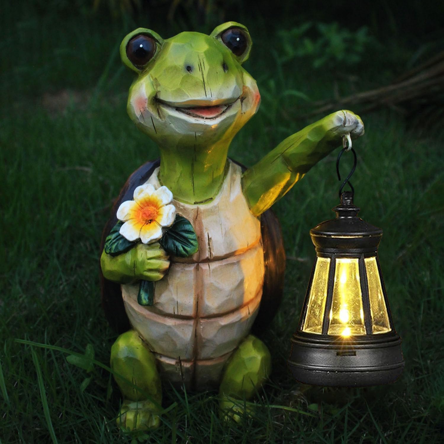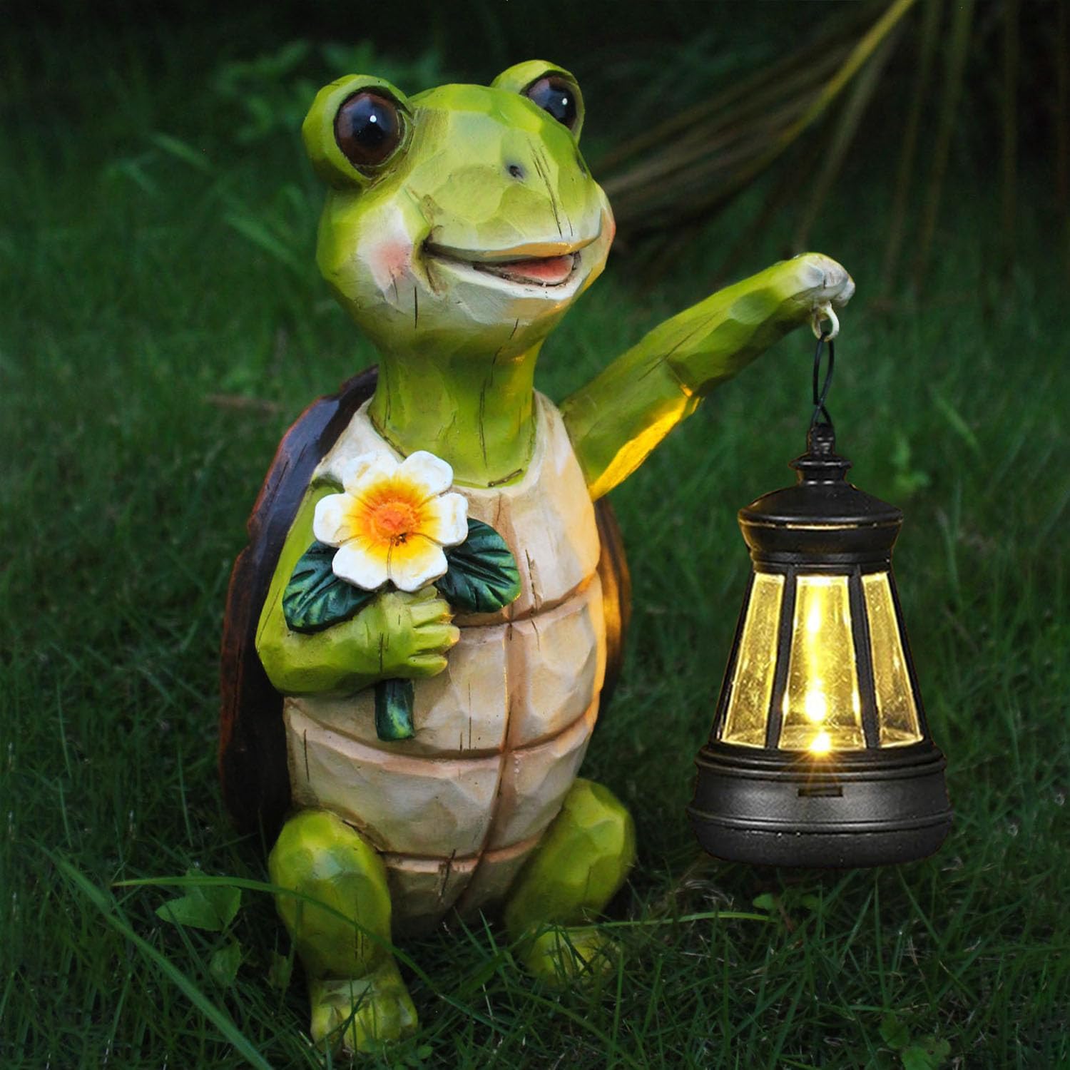 - [An interesting turtle] Turtles have cute appearances, holding a flower in their arms and carrying a small lantern, adding fun to your garden