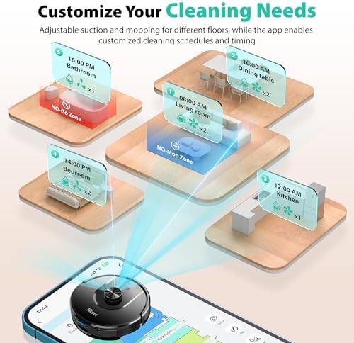 90-Day Hands-Free Cleaning: The 3L self-emptying dustbag holds weeks of debris, eliminating the need for frequent emptying. Enjoy effortless maintenance with this robot vacuum self-emptying 6000Pa Ultra-Strong Suction: The L8000 Plus Robot Vacuum effortlessly lifts debris, pet hair, and deep-seated dirt from floors & carpets. It will automatically increase suction to 6000 Pa(Max) on the carpet 360° LiDAR Navigation & Smart Mapping: Equipped with advanced LiDAR technology, the robot vacuum and mop scans your home in 360° and creates maps. It intelligently avoids obstacles like walls, stairs, ensuring no missed spots or repeated passes. Multi-floor maps(5 Max) can also be saved for seamless cleaning 2-In-1 Sweeping & Mopping: Sweepping, Mopping and Self-emptying in one device. Customize cleaning with 3 suction levels & 3 water flow settings for all floor types(In mop mode, please remove the mop holder or establish a no-go zone to prevent the vacuum from dirtying your carpet) Convenient App & Voice Control: You can customize no-go zones and no-mop zones, set up virtual walls, schedule cleaning, select specific rooms or areas to clean, and adjust the water level and suction power according to your individual cleaning requirements. This makes smart home cleaning a breeze. It can also work with Alexa, supports 2.4Ghz & 5Ghz WI-FI 150-Min Run Time & Auto-Recharge/Resume: In Gentle suction mode, enjoy up to 150 minutes of continuous cleaning. When the battery runs low, the robotic vacuum auto-recharges and continues mopping and vacuuming exactly where it left off—Free up your hands and enjoy convenience