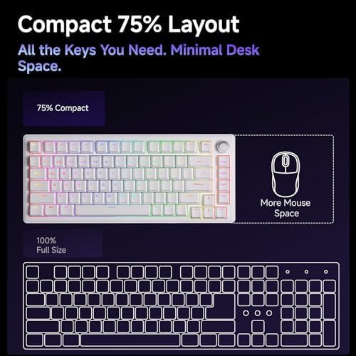 Enhanced Typing Experience & Hot-Swappable Freedom: Personalize your feel and sound with universal hot-swappable sockets for 3-pin/5-pin switches. The advanced gasket-mount structure is complemented by a superior 6 layers of sound-absorbing foam, working in harmony with pre-lubed switches to deliver an even deeper, more satisfying creamy acoustic and a remarkably smooth, flexible feel. Pre-Lubed for Perfection & Unmatched Longevity: Enjoy a flawlessly smooth and consistent keystroke straight out of the box, thanks to our factory pre-lubricated switches. Rigorously tested and rated for 50 million keystrokes, they are built to deliver unwavering reliability for years to come. Dedicated Multimedia Knob & Vibrant RGB Ecosystem: Effortlessly command your audio and media with a tactile volume knob for adjustment, play, and pause. Elevate your desktop ambiance with 16.8 million colors and 15 pre-set RGB lighting effects, all fully customizable to match your style or mood. Built to Endure - Durable Keycaps & Pro-Grade Response: Engineered for a long-lasting, pristine look with double-shot injection molded keycaps that resist fading from wear or cleaning. Achieve instant command execution with a competition-grade 1000Hz polling rate, backed by the convenience of a detachable USB-C cable. Zero-Memory Web Driver for Advanced Customization: Take full control without any software installation. Our powerful browser-based driver allows for effortless key remapping, complex macro recording, quick shortcuts, and in-depth RGB personalization. It runs directly in your browser, requires zero memory footprint, and ensures seamless compatibility with Windows, Mac, and Linux.