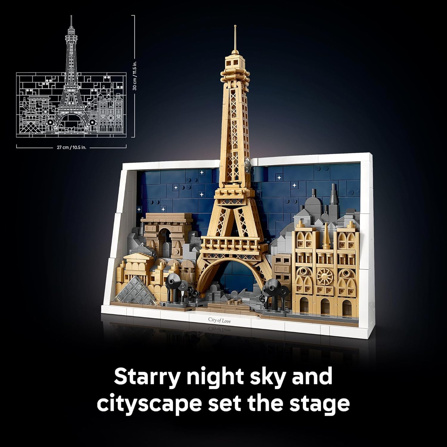 - DETAILED PARIS DECOR – This detailed model features 4 iconic Paris landmarks—the Eiffel Tower, Notre-Dame de Paris, the Arc de Triomphe, and the Louvre—set against a city background and starry sky, all framed in white bricks