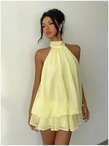 Verdusa Women's Chiffon Halter Drop Waist Wedding Guest Dresses Ruffle Summer Mini Dress Brunch Outfits