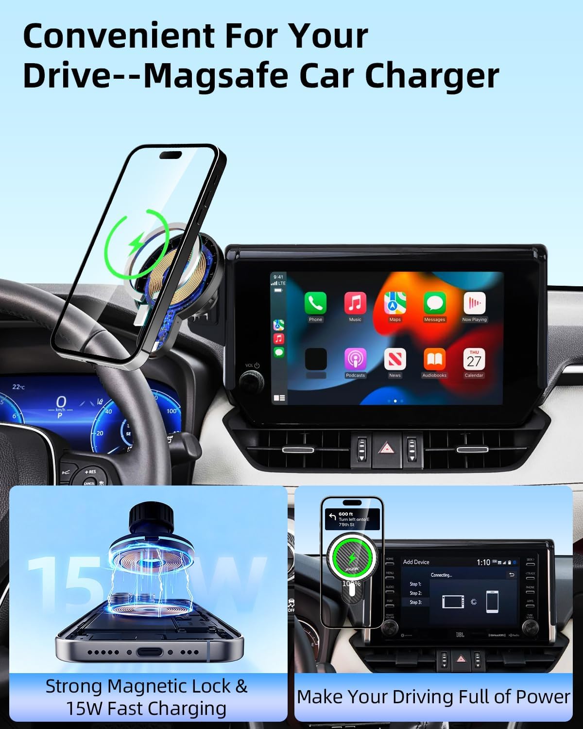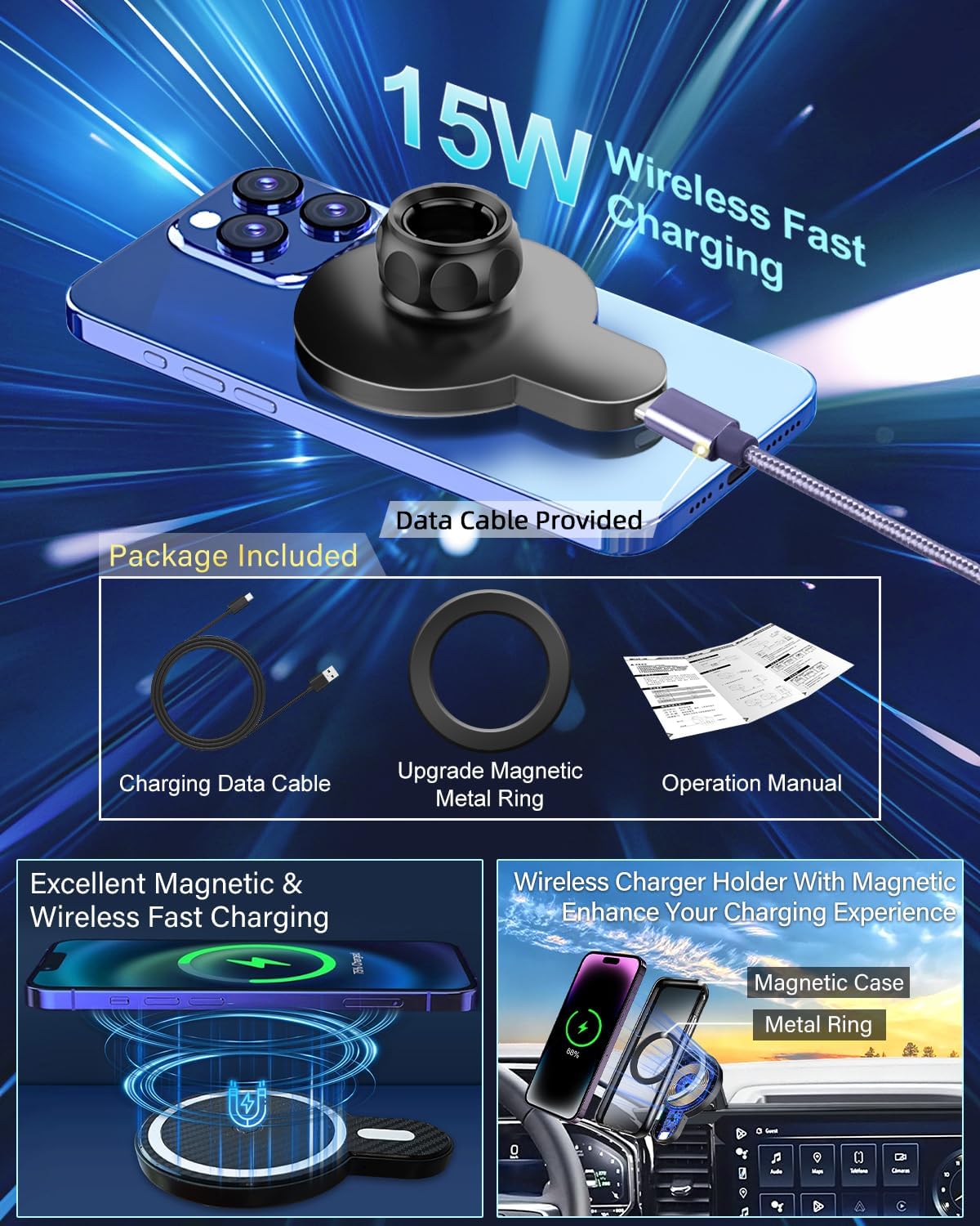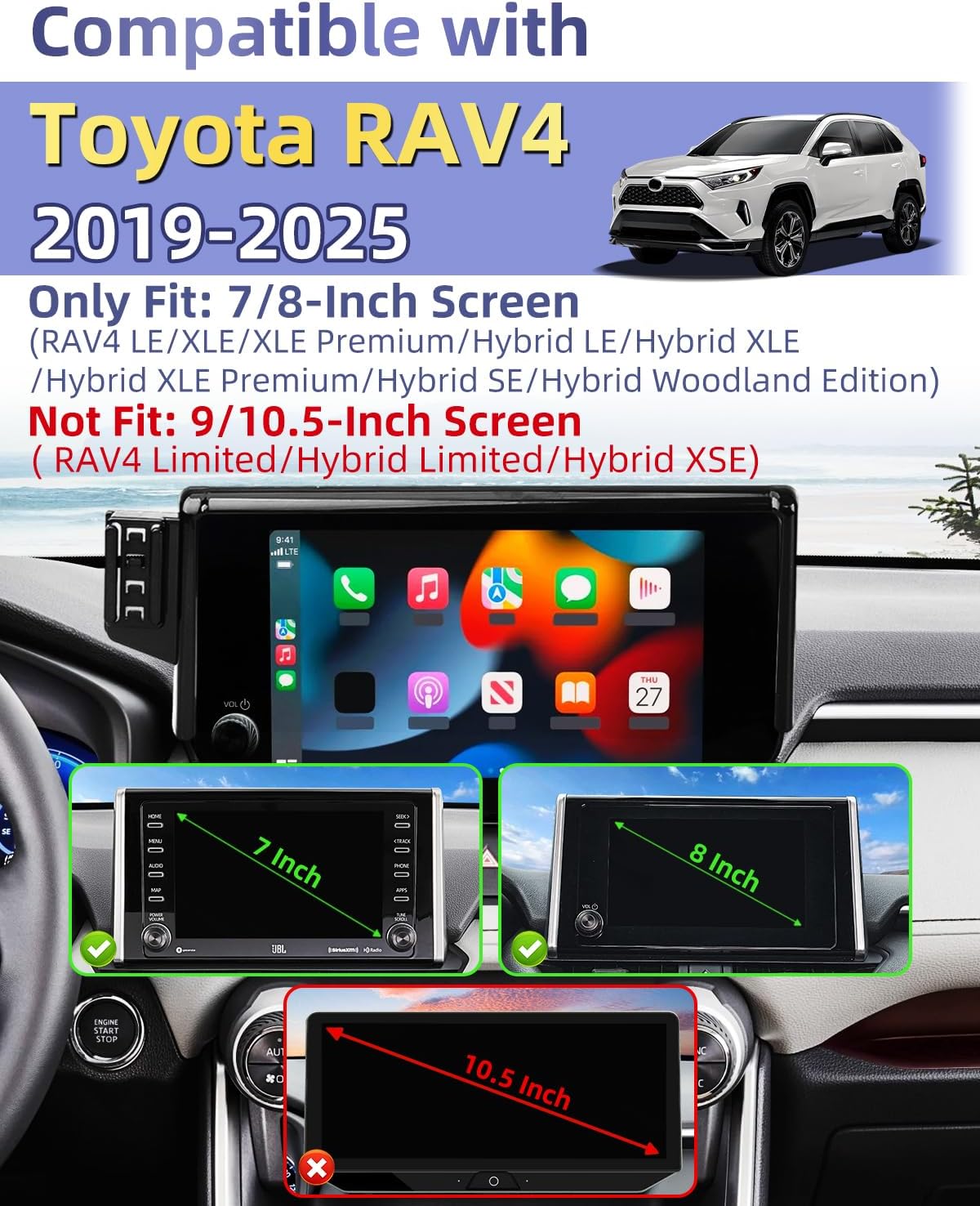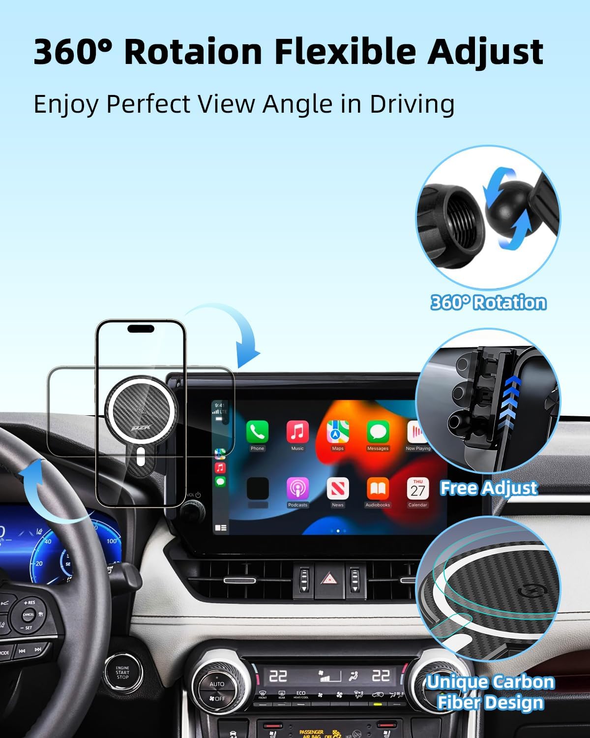 PZK Car Phone Holder for Toyota RAV4 2019-2025 Hybrid LE\/XLE\/Premium Accessories 7\/8-Inch Screen Magnetic 15W Fast Wireless Charger Car Phone Mount 360° Rotation Not Affect Vent (Not Fit 9\/10.5 in