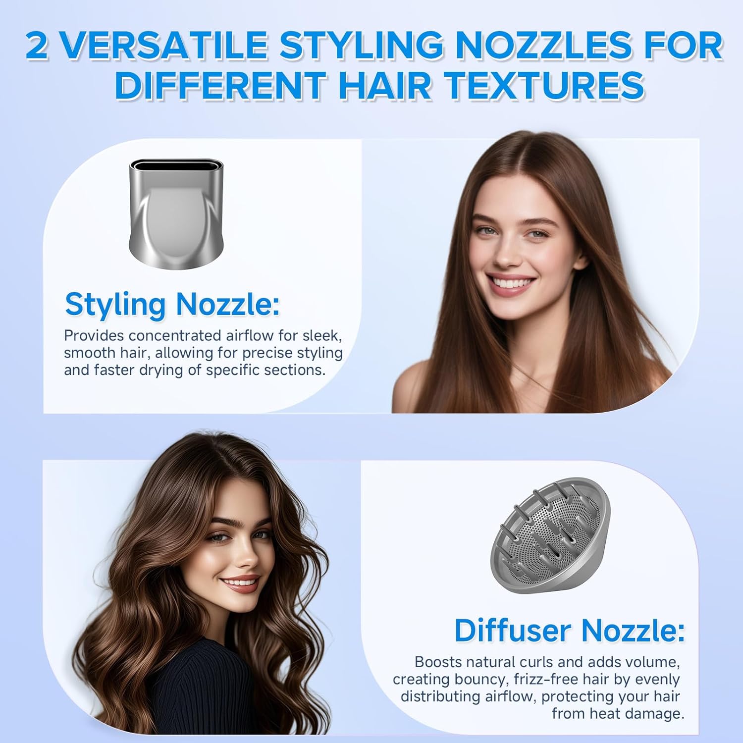 Hair Dryer, 150,000 RPM Brushless Motor, Ultra-Fast Drying with 3 Heat Settings & LED Lights, High-Speed Ionic Blow Dryer, Low Noise Lightweight with Diffuser & Nozzle for Home, Salon, Travel