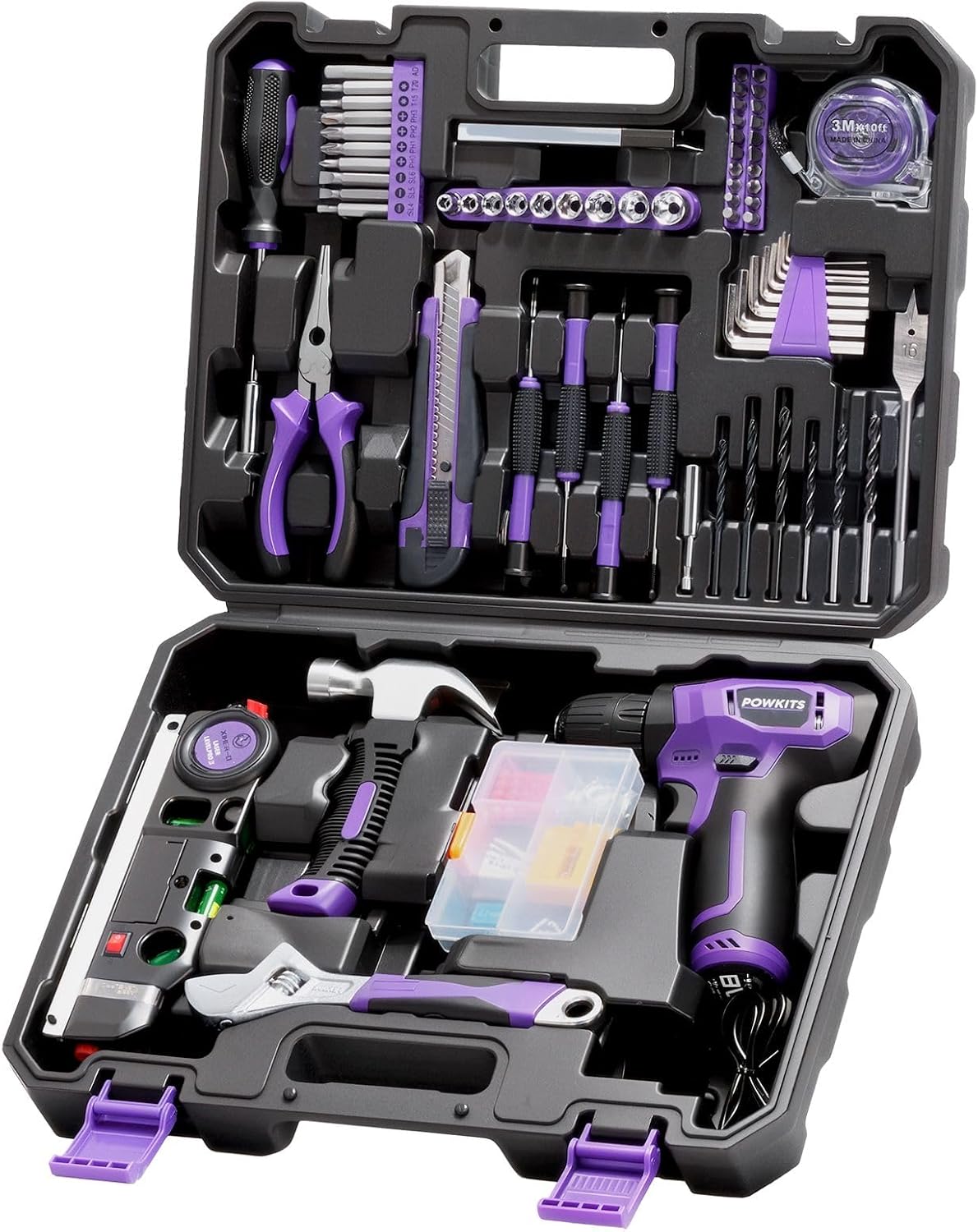 Tool Kit: 139 PCS Cordless Drill Set with Li-Ion Battery, 8V Power Drill with Type-C Charging, Portable Basic Home Tool Set for DIY Projects (Purple-A)