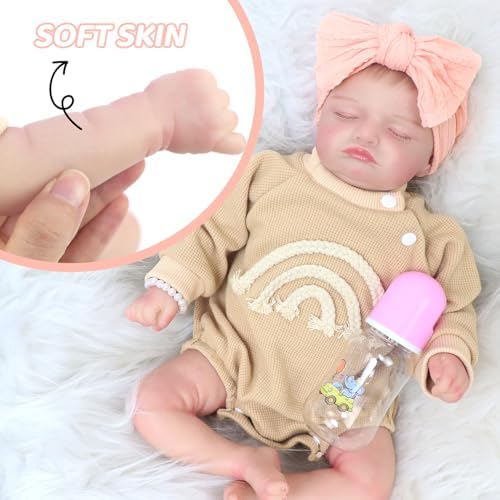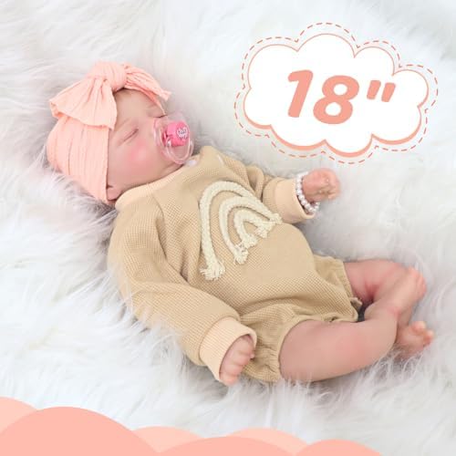 Ecore Fun Lifelike 18 Inch Reborn Doll- Realistic 18" Sleeping Baby Dolls Soft Body Real Life Doll Playset Includes Dolls, Outfits, Pacifier, Bottle, Diaper & Toy Bear
