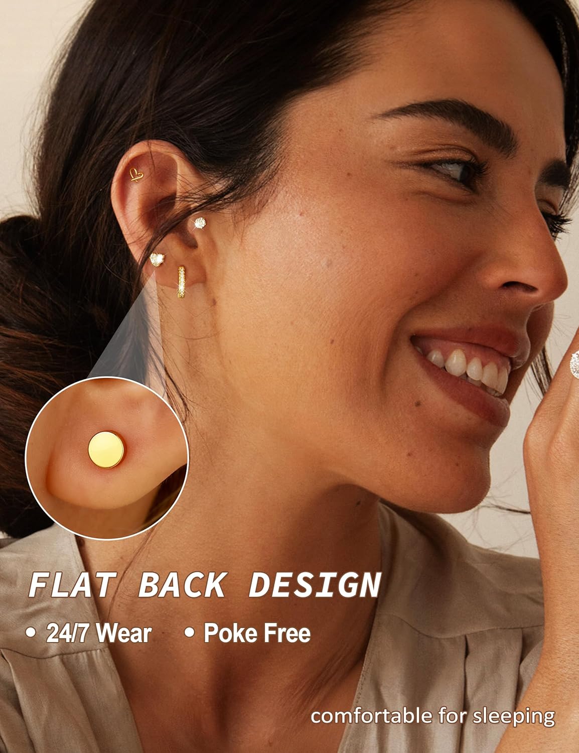 Secure & Comfortable Flat Back Earrings Design:Experience ultimate comfort with our Flat back Earrings. The innovative internally threaded screw-back design ensures these Stud Earrings stay securely in place, preventing loss. These Flat back Earrings will not poke your neck or snag on hair, making them ideal for sleeping, sports, and continuous wear.