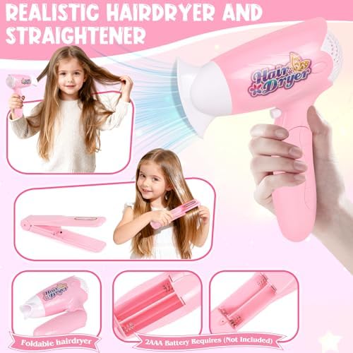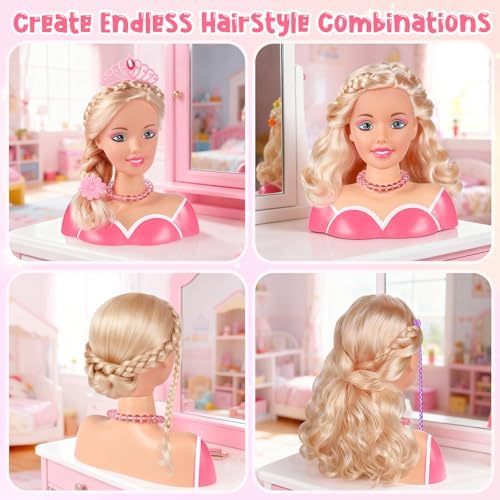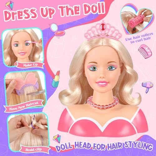 KUBUSFLY 44Pcs Hair Styling Doll Head Toys for Girls, Kids Makeup Hair Salon Pretend Play Styling Kit with Hairdryer, Straightener, Beauty Hair Toy Christmas Birthday Gift for Toddler Girls 3 4 5 6+