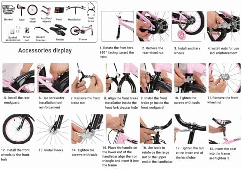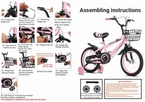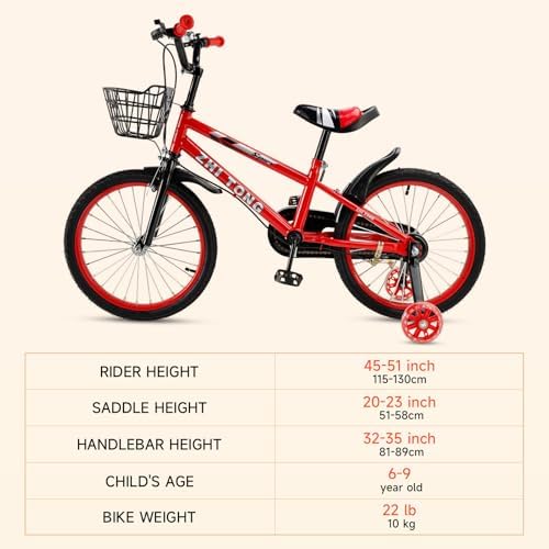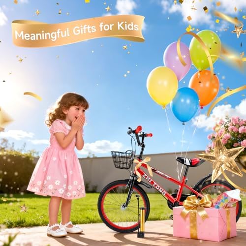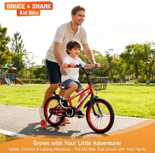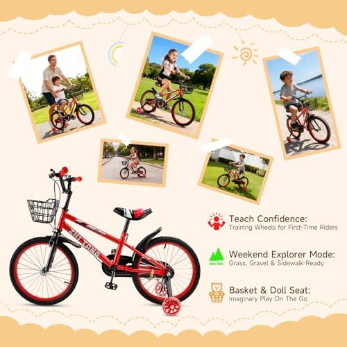 【Safe Riding for Beginners】Bicycle for kids features removable safety training wheels to prevent tipping and build confidence, with magnetic flash wheels that glow brighter as they spin for nighttime visibility. Fully enclosed chain guard protects little legs from pinching hazards. 【Adjustable Design for Growing】Bikes for Upgraded height-adjustable seat and handlebars grow with them. Durable high-carbon steel frame ensures stability. 【Double Protection Braking System】Kids bike for combines responsive front caliper brakes and rear coaster brakes for reliable stopping power. Thickened rubber tires with anti-slip tread + shock-absorbing spokes handle sidewalks, grass, and gravel safely. 【Comfort Meets Parent Approval】Kids Bike Extra-padded saddle reduces fatigue during playtime, while ergonomic non-slip grips fit small hands securely. Quick-release seat adjustment makes fine-tuning effortless. 【The Gift That Grows with Them】Surprise with a birthday or holiday gift they’ll cherish for years! This Kids bike with adjustable components, while durable steel construction ensures lasting adventures. For immediate riding joy.