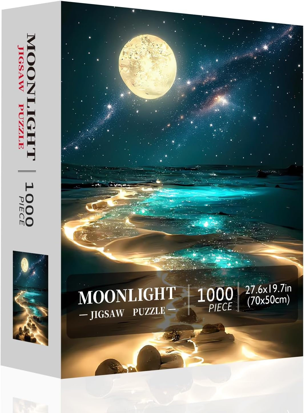 Adult Puzzles 1000 Pieces: Our Moonlight Jigsaw Puzzles for Adults feature 1000 white puzzle pieces, packaged in an exquisite color box with reference poster. The completed 1000 piece puzzle for adults measures 27.6×19.7 in/70×50 cm, making it a perfect size for framing and display as wall decor.