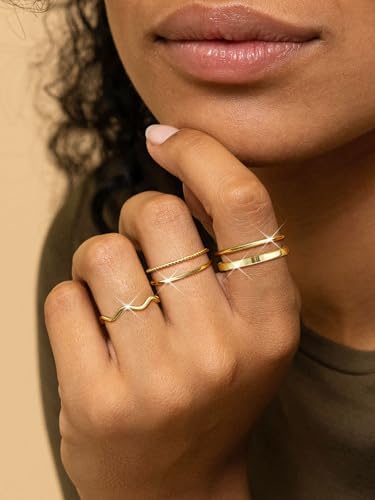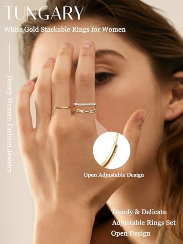 Trendy Stackable Rings for Women: Dainty adjustable open ring set comes with 9pcs gold band rings in different designs, such as CZ knuckle gold thin rings, thumb ring, rope rings, simple circle thin rings, etc. These band rings are not only good looking when worn alone, but also unique and beautiful when stacked as desired Waterproof 14K Gold Plated Rings: These gold adjustable ring set are made of high quality copper and taking of 14k plated process ensures stacking-friendly durability. Hypoallergenic, waterproof, nickel and lead free. These stackable thumb rings feature a highly polished surface that is exceptionally smooth and shiny, ensuring comfortable wear over extended periods Gold Open Adjustable Ring Set: Our gold thumb ring features an adjustable design, rings size approximately US sizes 5 to 10. Simply stretch the opening of the thin ring gently and adjust the appropriate size, without worrying about whether the circumference of your finger is suitable Classic Gold Stackable Rings: These gold band rings can be worn as knuckle ring, pinky thin ring, thumb ring, gold statement ring, wedding rings, engagement ring, finger stackable rings, promise rings, etc. Simple gold thin rings can wear it alone for a fashion look or stack it together with other stacking rings Stylish Women's Jewelry Set Gift: The gold stackable ring for women come in an delicate box perfect gift for your mother, sister and wife on Christmas Day, Valentine's Day, Birthday, Anniversary, Wedding. They're also an excellent gift to reward oneself