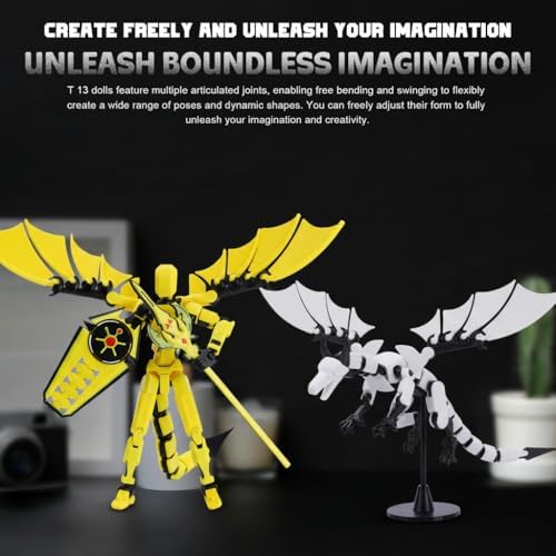 T13 Figure Set & Titan 13 Toys 2 Pack(3d Printed Action Figures Assembly Completed)(Multi-Jointed Movable)(Dragon Man Designs Includes Various Accessories)Dummy T 13 Figures Desk Decoration