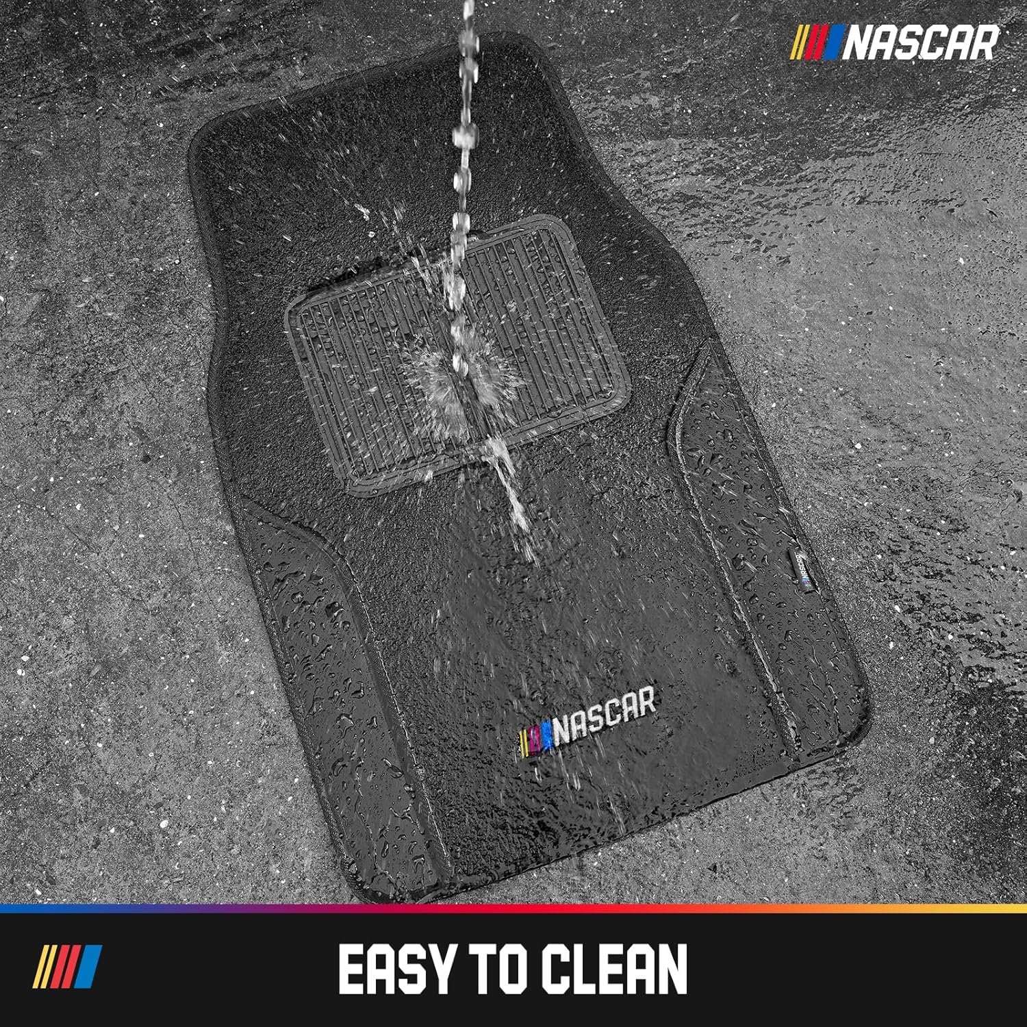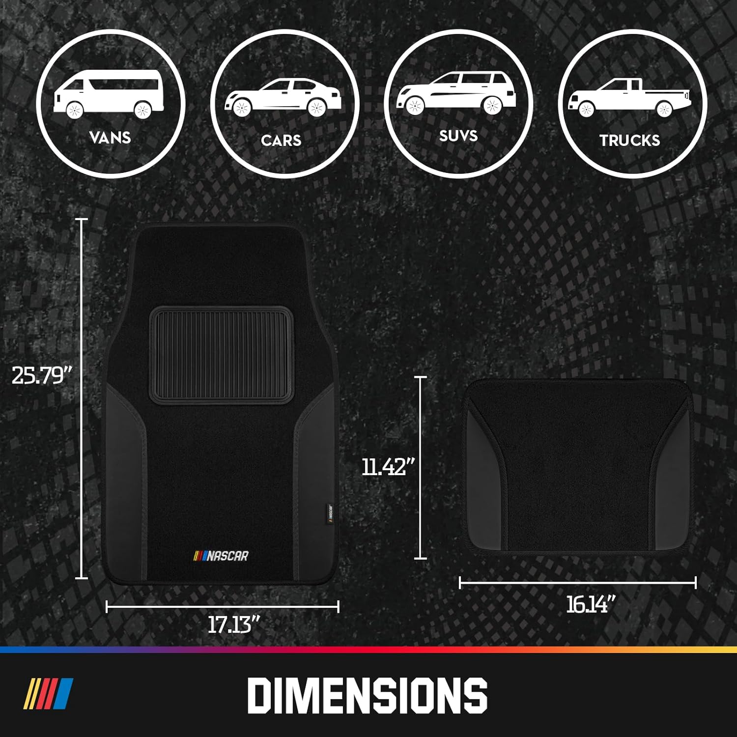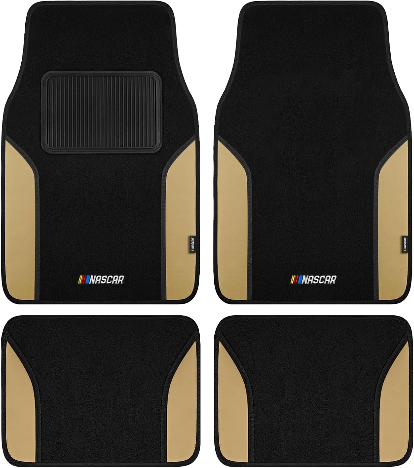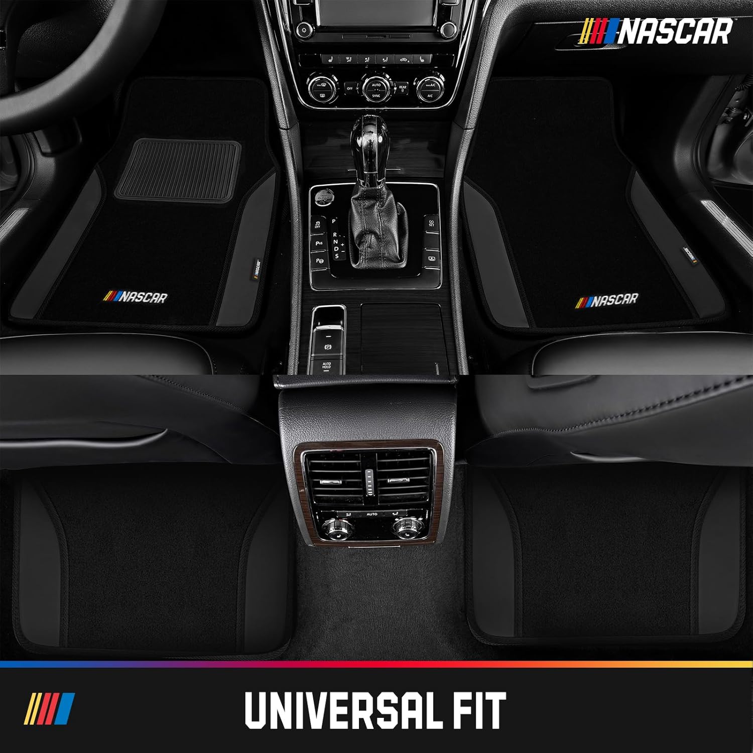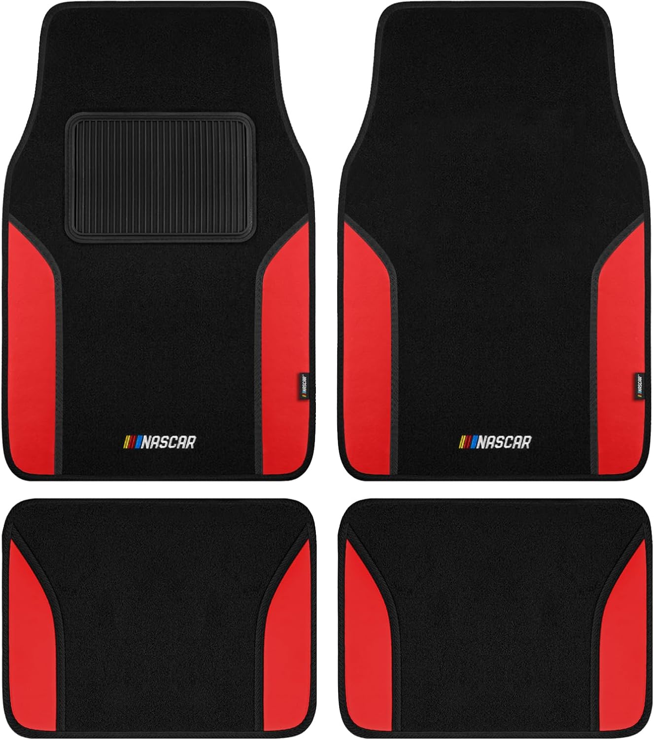 NASCAR Car Floor Mats, Carpet & Black Leather Design Car Mats, Universal-Fit All-Weather Car Floor Mats with Built-in Heel Pad & Anti-Slip Backing, Durable Odorless Automotive Interior Accesso