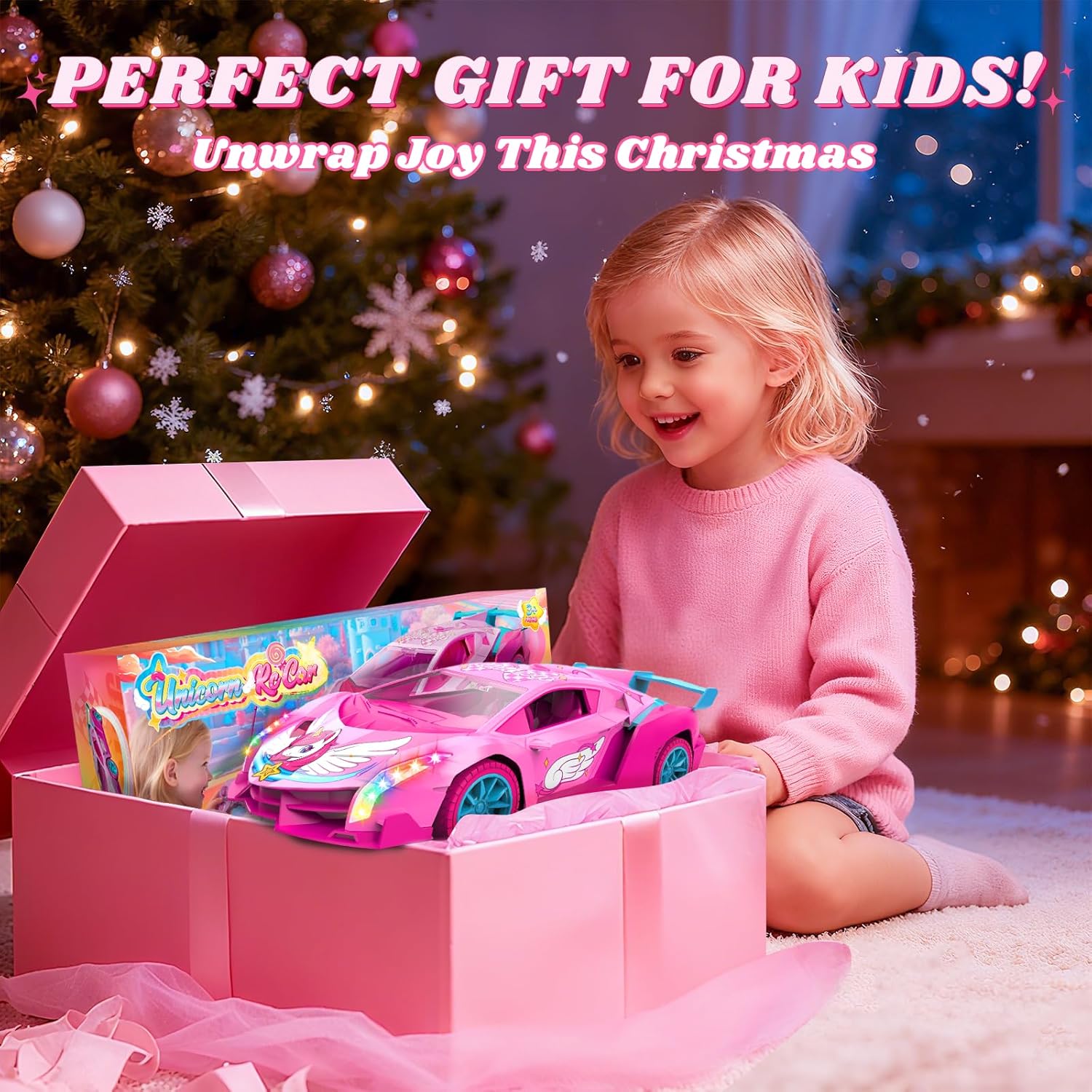 Unicorn RC Car for Girls, Rainbow Glow & Drift Wing Remote Control Car,2.4GHz RC Cars 1:18 Scale,Kids Toys Age 3 4 5 6 7 8 9 10 11 12,Girls Birthday Gifts,Valentines Day Gifts for Kids 3-12 Year O