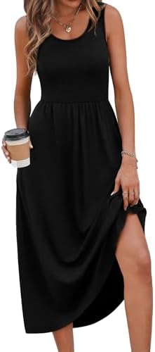 Make Your Summer Statement: Embrace the sunny vibes with our trendy summer dresses for women. Featuring a classic scoop neck and sleeveless tank cut, this casual midi dress keeps you cool and effortlessly chic. The flowy A-line skirt creates a beautiful silhouette that sways with every step—the ultimate vacation outfit for your next getaway Soft Fabric Blends: We use specific fabrics for the best experience. Solid Colors feature a breathable, skin-friendly blend (60% Polyester, 35% Rayon, 5% Spandex) for a luxurious feel. Prints are crafted from a smooth, vibrant mix (95% Polyester, 5% Spandex) that resists fading. Both are buttery soft, stretchy, and non-see-through Versatile Day-to-Night Style: Simplify your wardrobe with one dress that does it all. Pair this boho floral dress with sandals for a relaxed beach look, or dress it up with heels and a jacket for a work office look or romantic date night. Perfect for cruises, picnics, garden parties, or simply lounging at home Flattering Tummy Control Fit: Expertly designed with a high empire waist, this dress accentuates your narrowest point while the pleated flowy hem gently hides the tummy and hips. Whether you are petite, tall, or looking for maternity friendly options, the stretchy bodice ensures a forgiving fit for every body shape Size Guide & Care: True to US Size. S=US 4-6, M=US 8-10, L=US 12-14, XL=US 16-18, 2XL=US 20. Machine washable in cold water with a laundry bag; hang to dry. This flowy dress hits at a flattering mid-calf length and retains its shape and vibrant print after washing, resisting pilling and fading