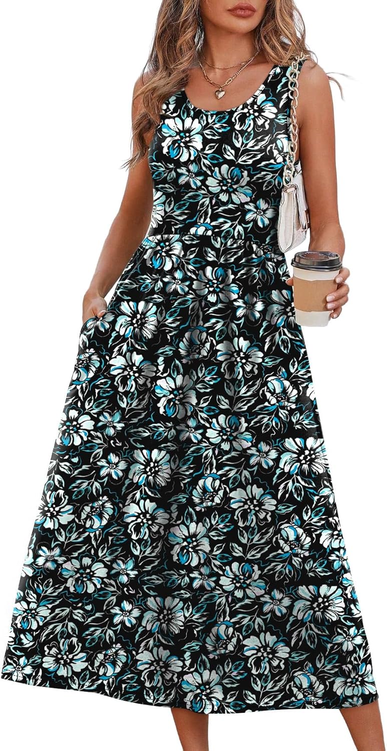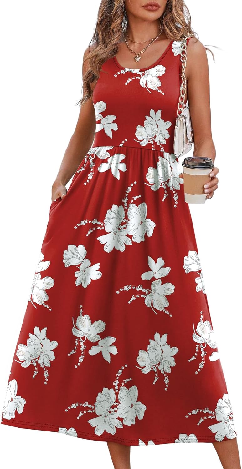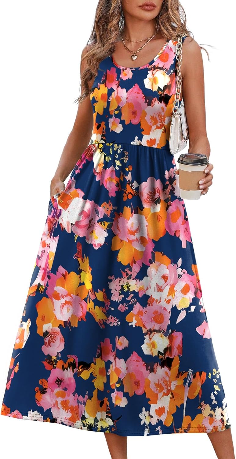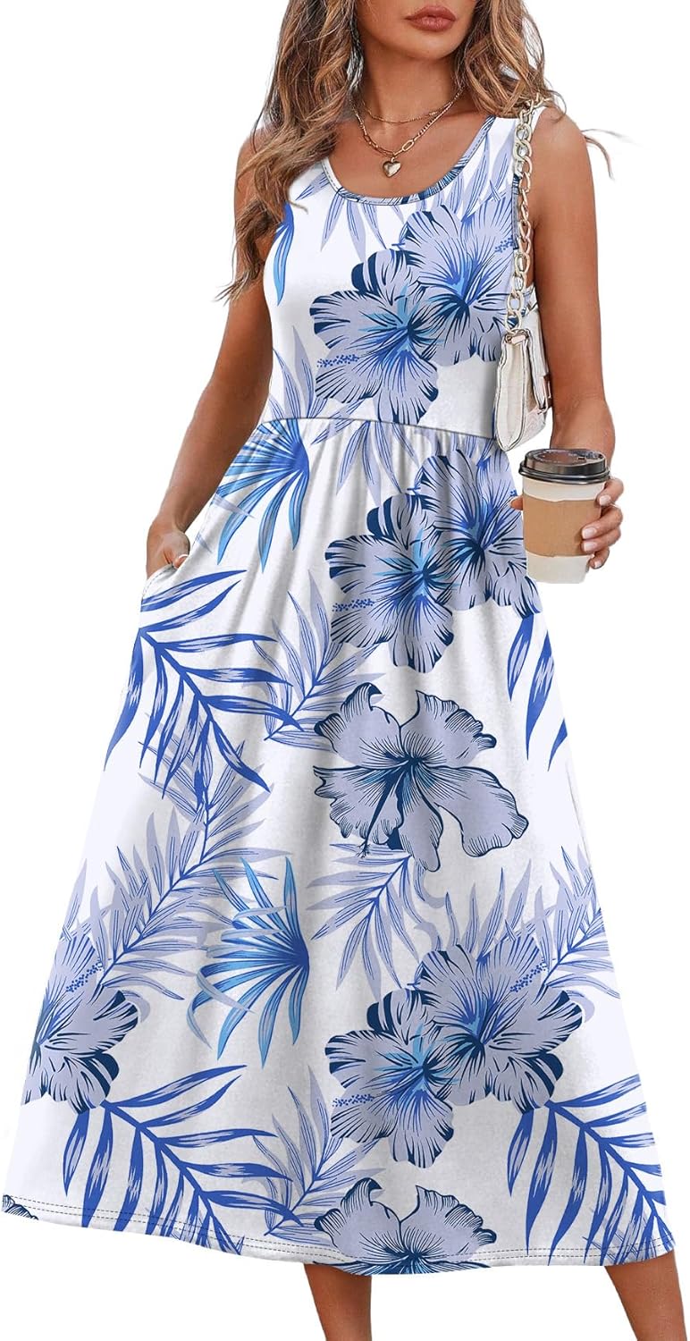 WIHOLL Summer Dresses for Women Flowy Casual Midi Dress Beach Vacation Sundresses with Pockets