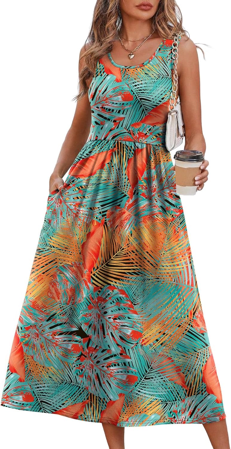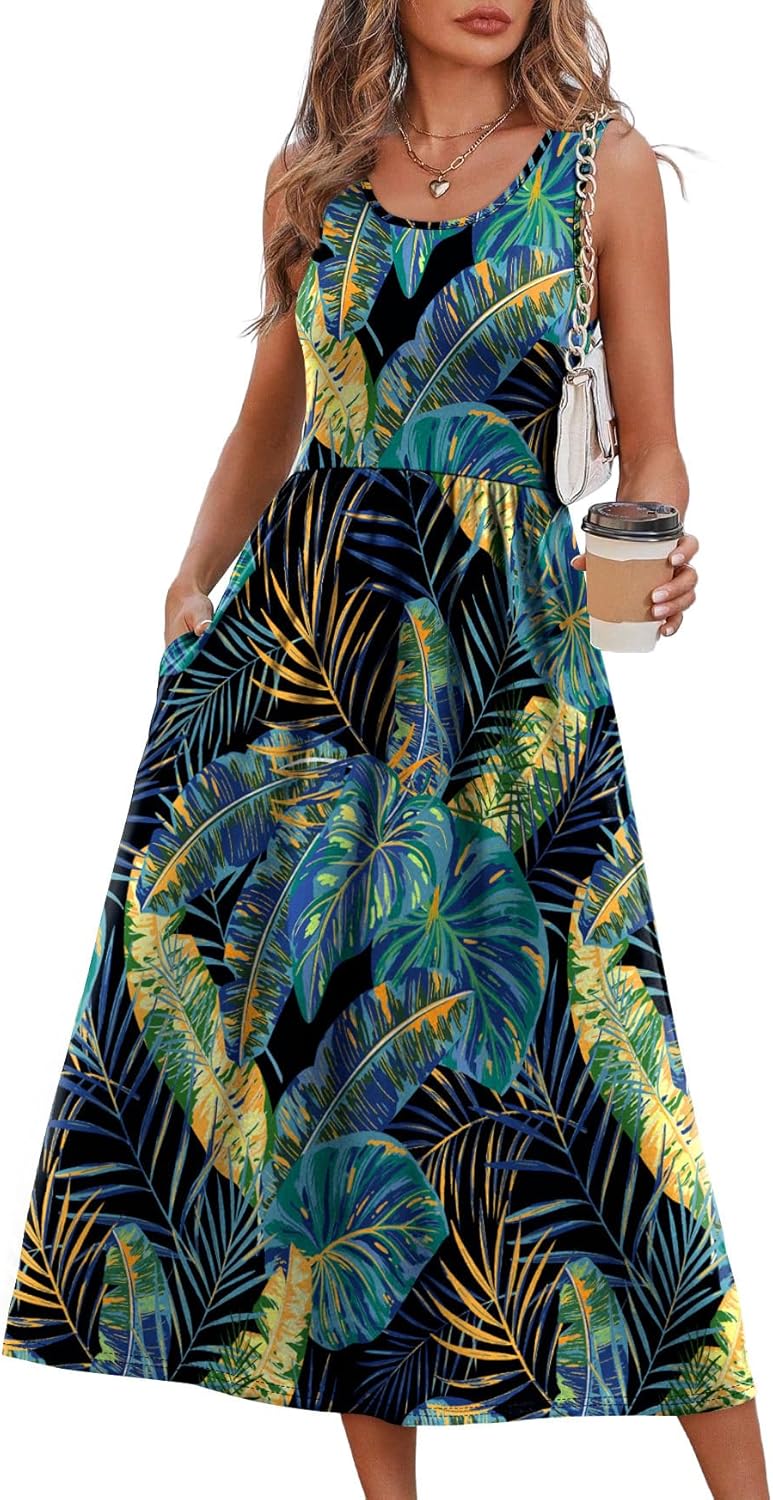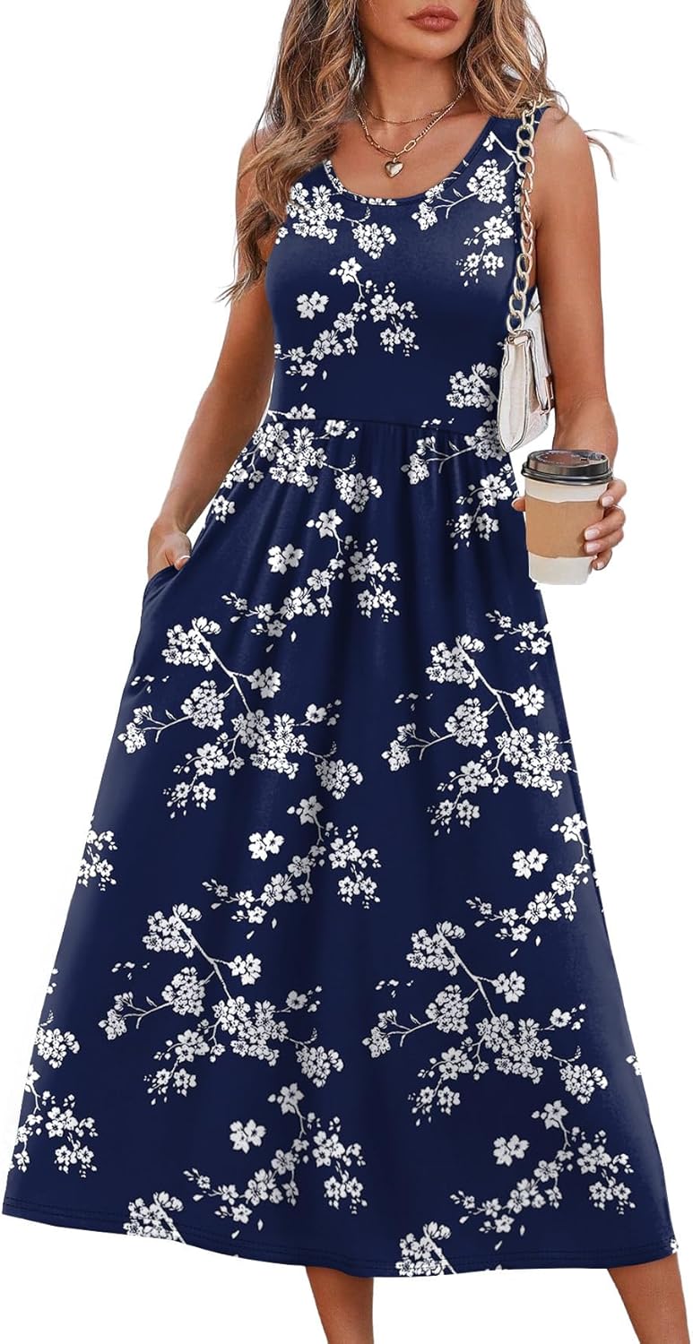 WIHOLL Summer Dresses for Women Flowy Casual Midi Dress Beach Vacation Sundresses with Pockets
