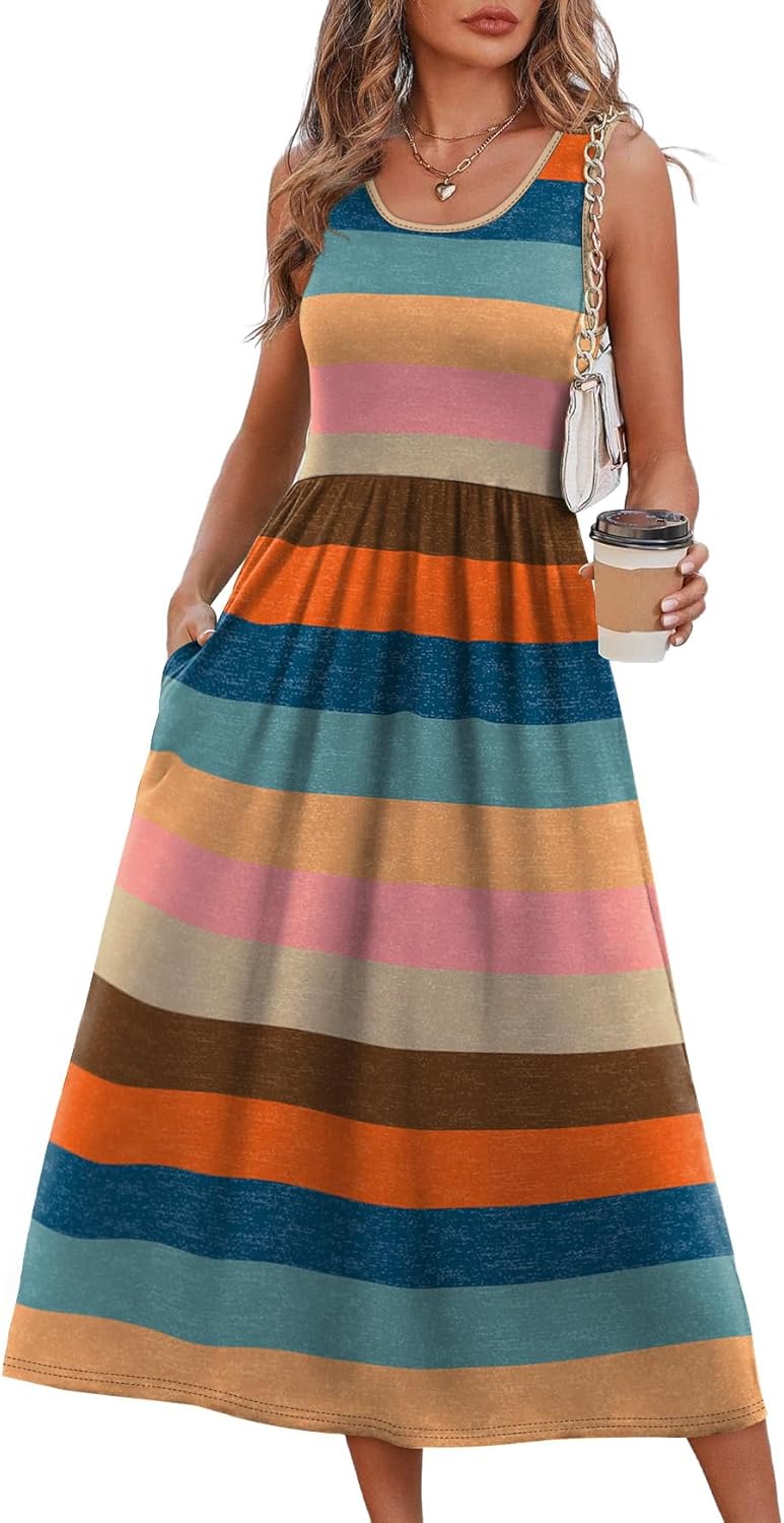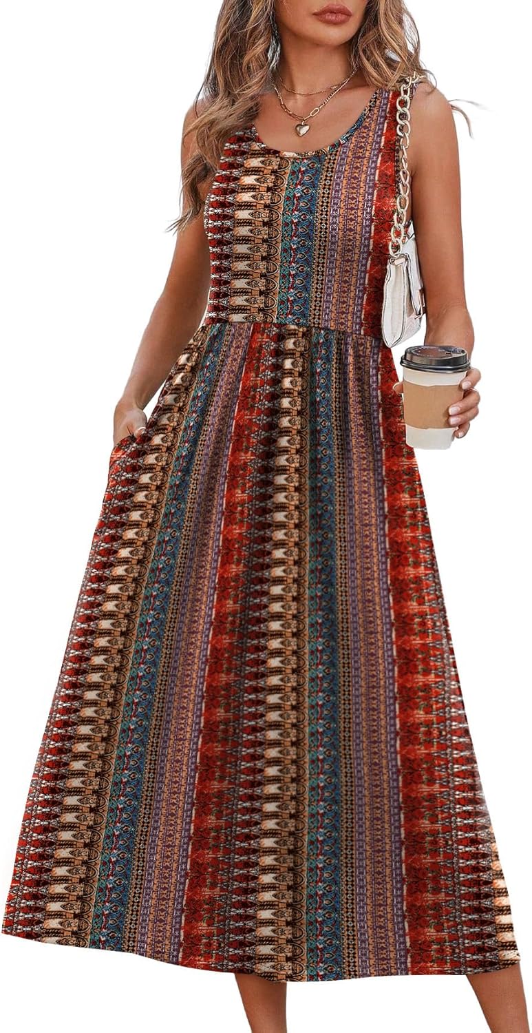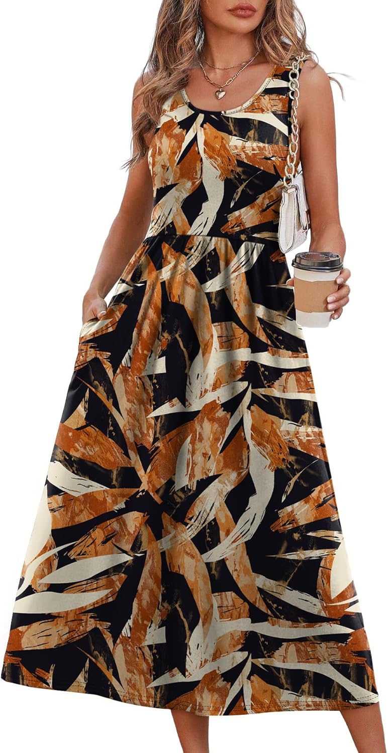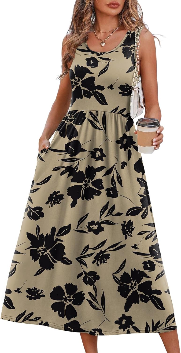 WIHOLL Summer Dresses for Women Flowy Casual Midi Dress Beach Vacation Sundresses with Pockets