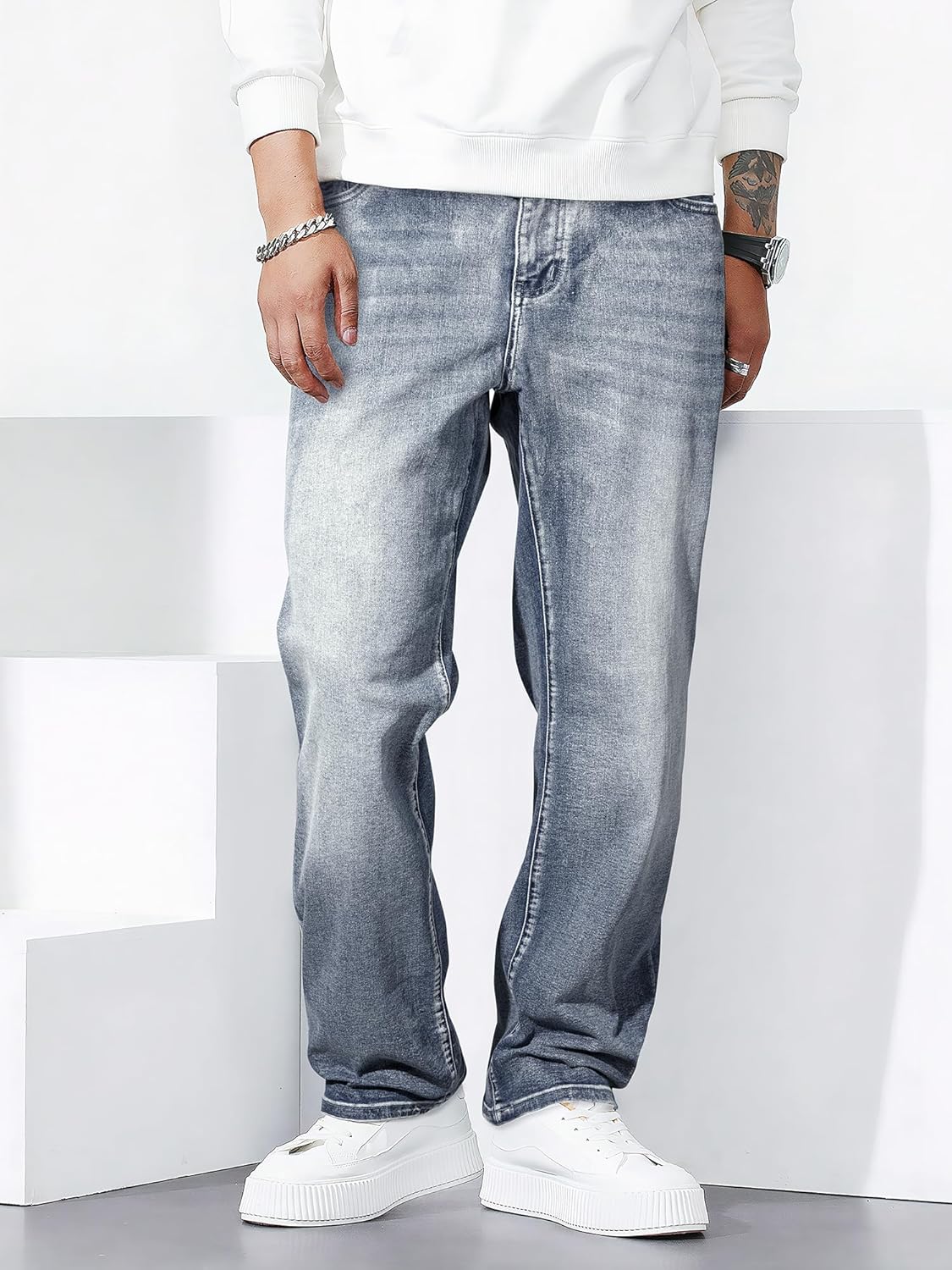 JMIERR Mens Classic Relaxed Fit Jeans Stretch Casual Baggy Denim Pants